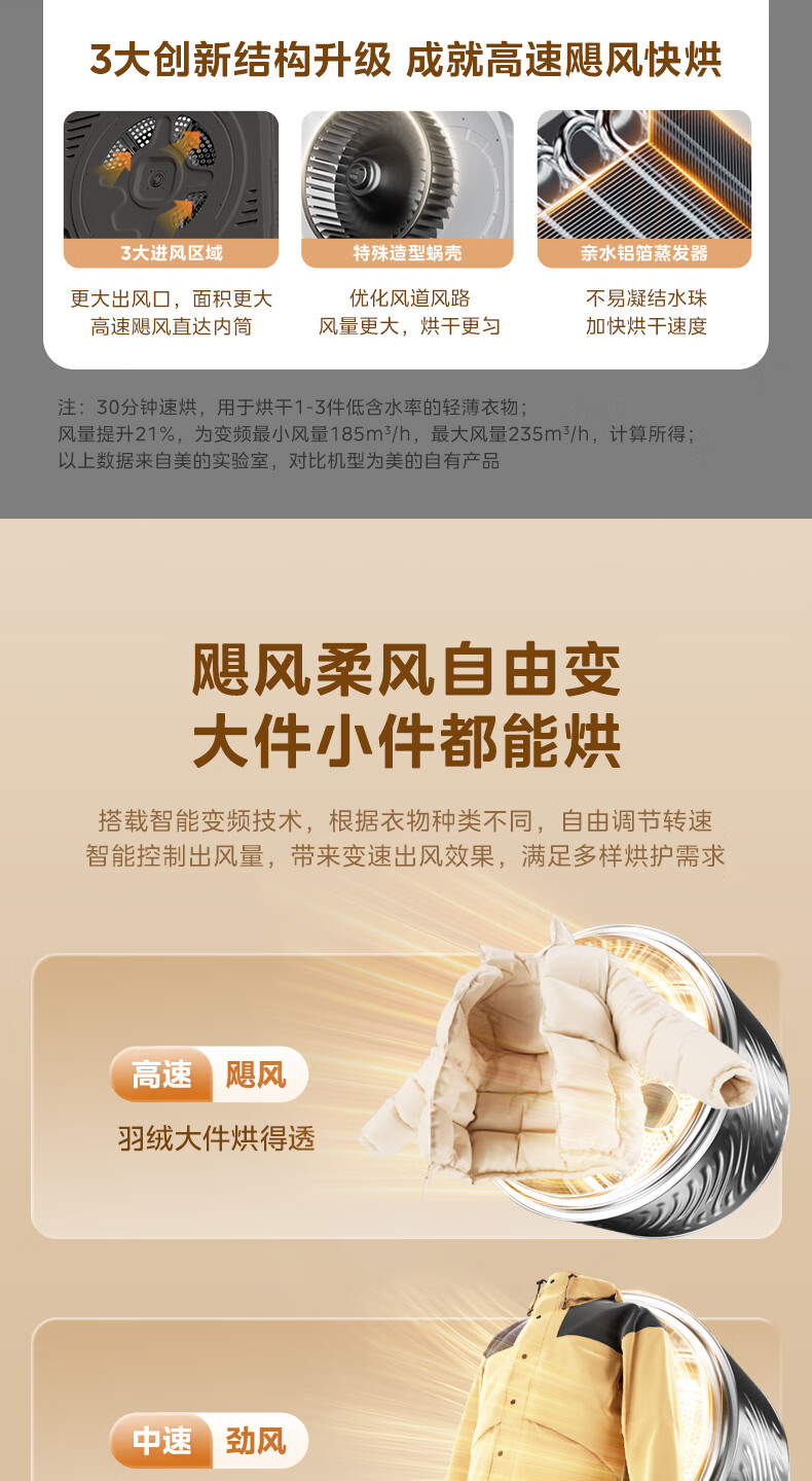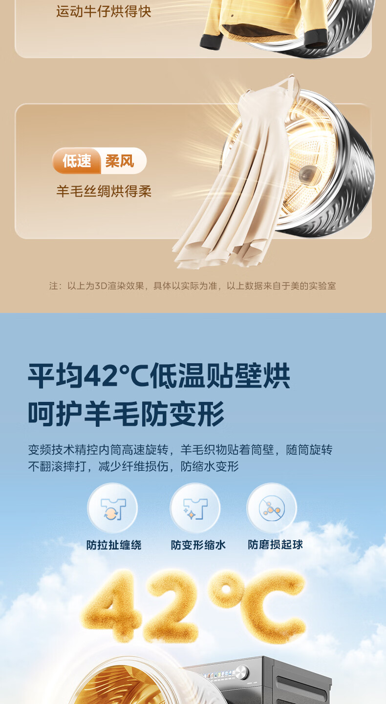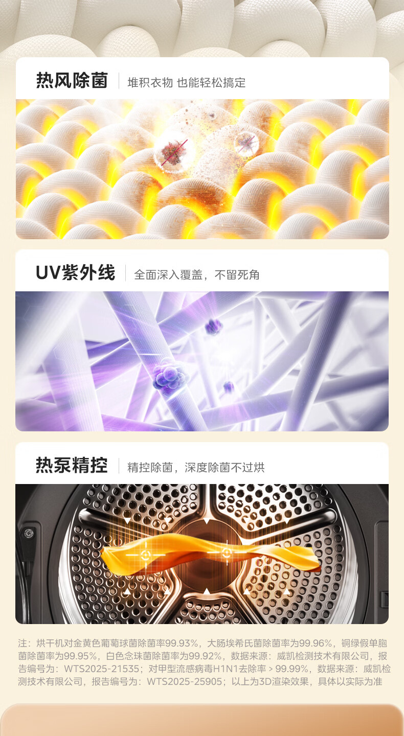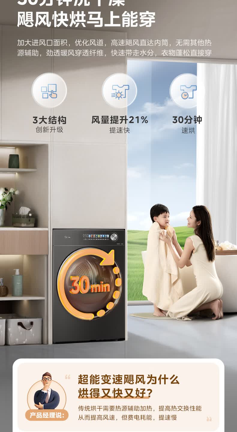 美的(Midea)10公斤热泵烘干机七维降噪智能判干AI正反转UV紫外线除螨变频电机纯平全嵌回南天 MH10HS50PRO