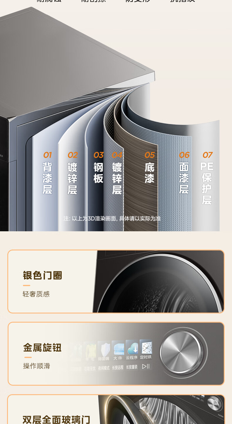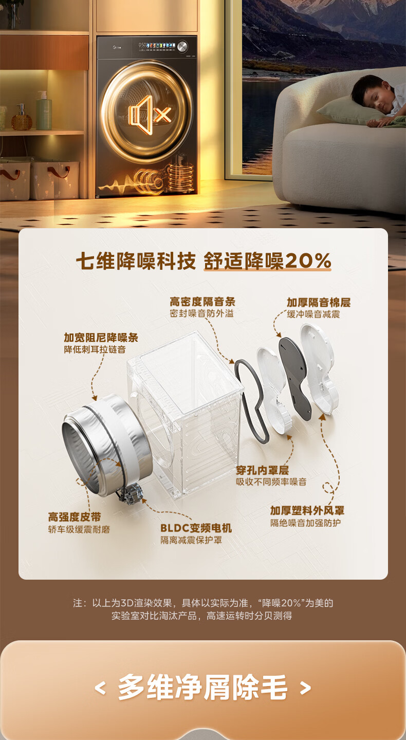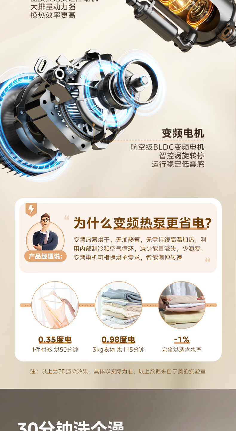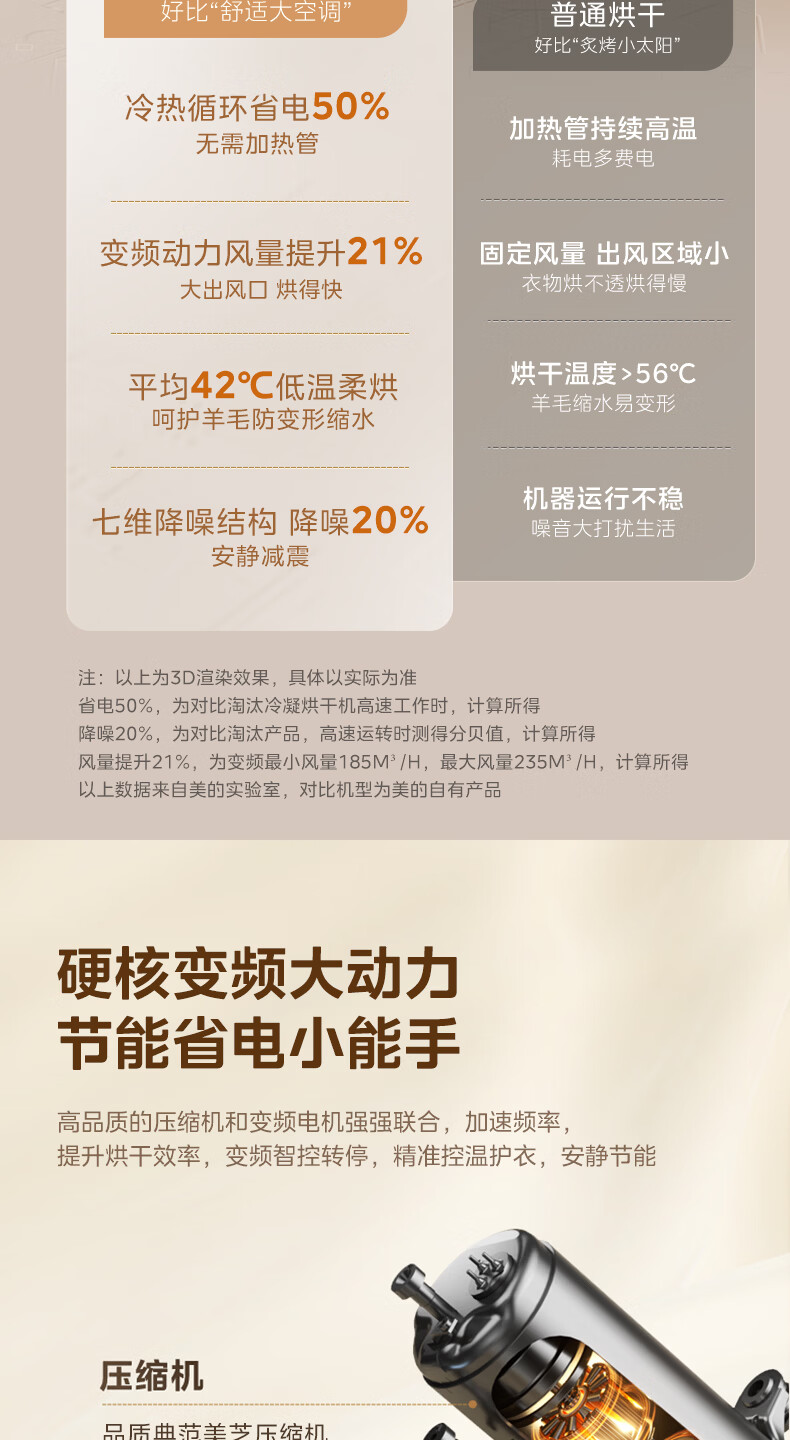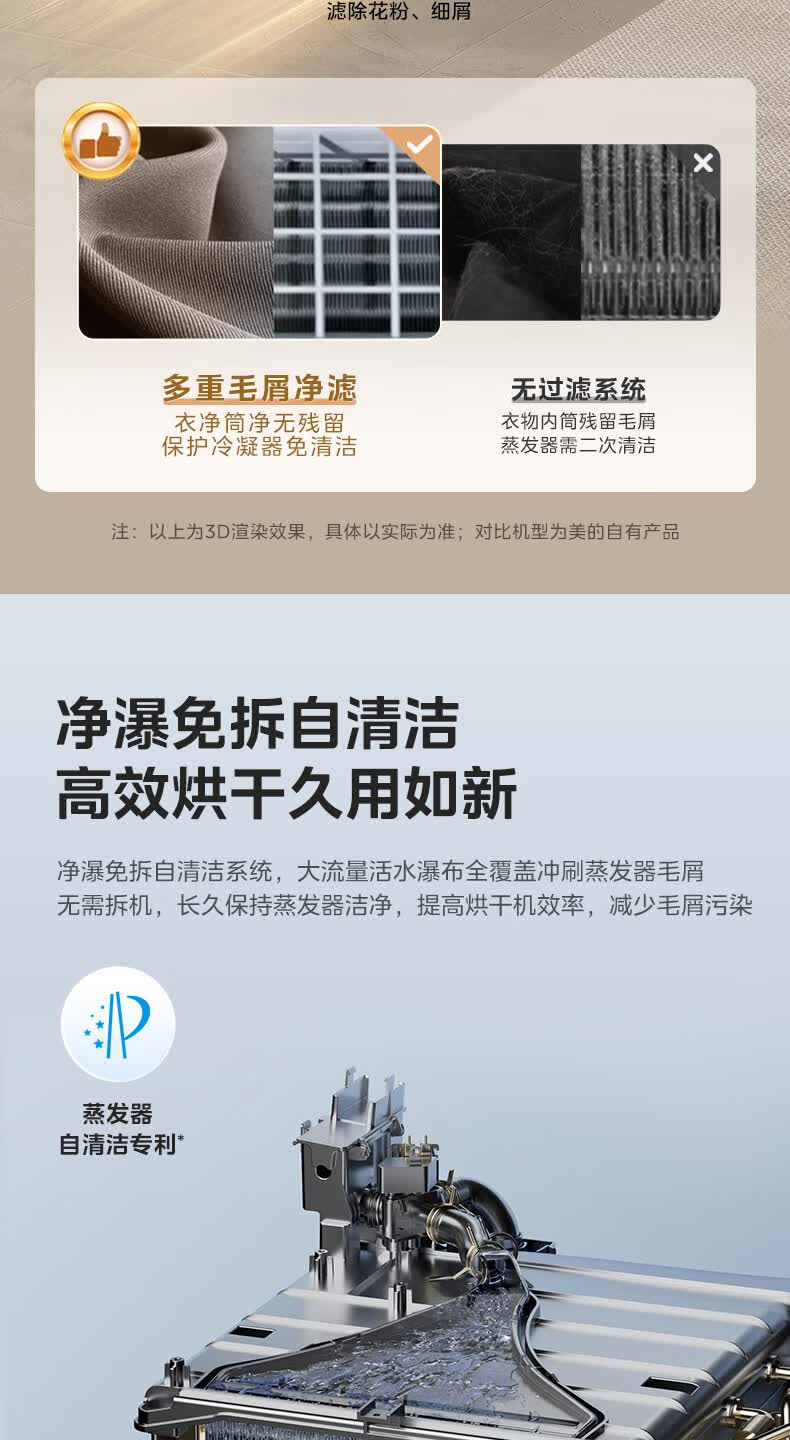 美的(Midea)10公斤热泵烘干机七维降噪智能判干AI正反转UV紫外线除螨变频电机纯平全嵌回南天 MH10HS50PRO