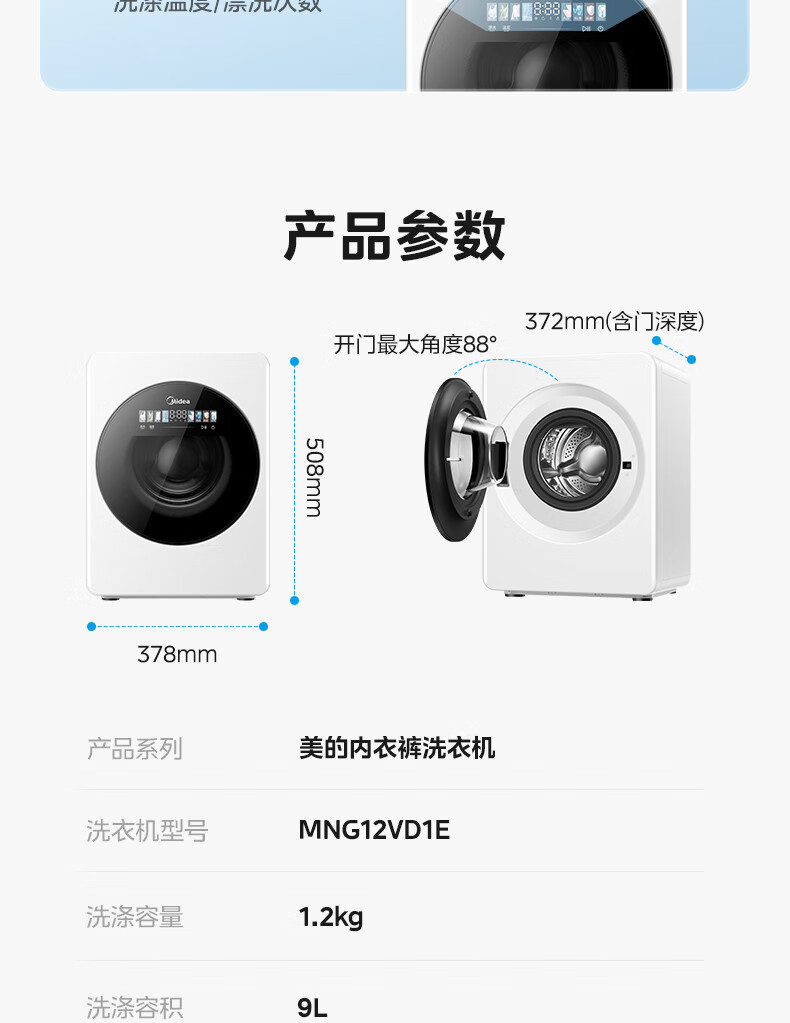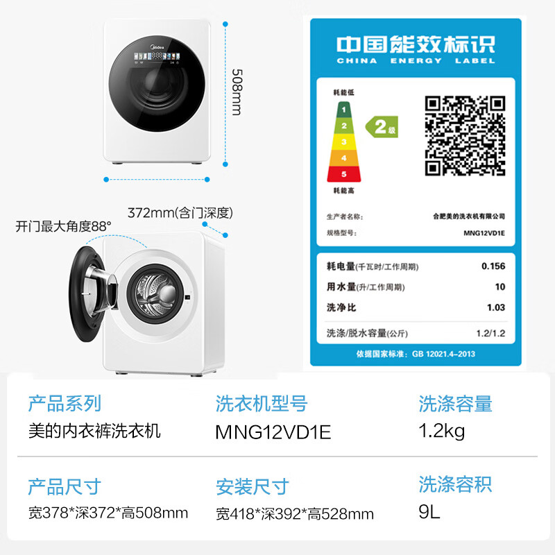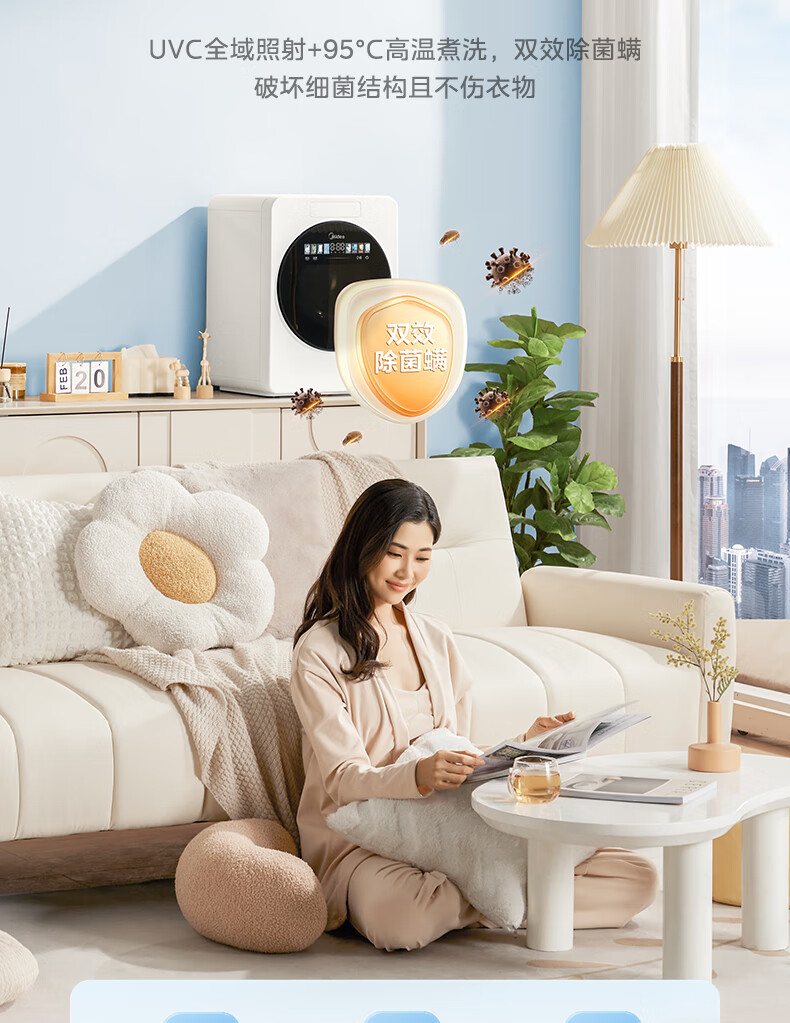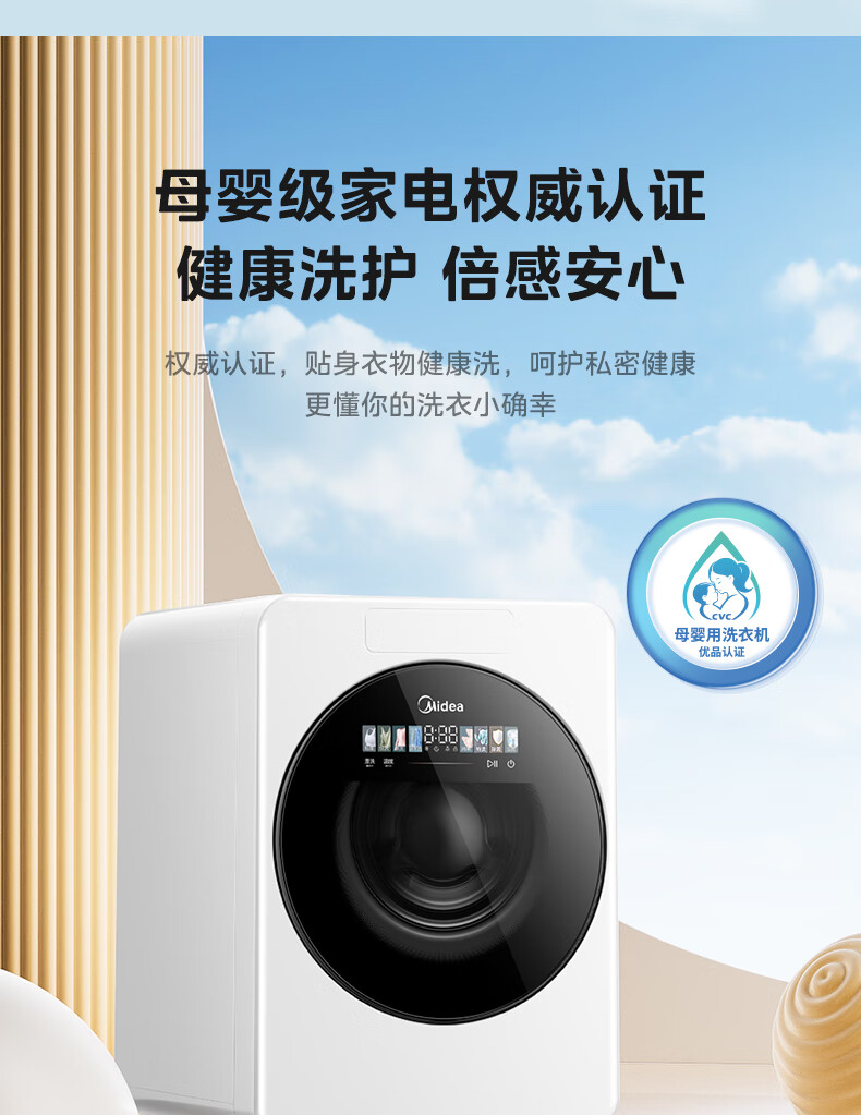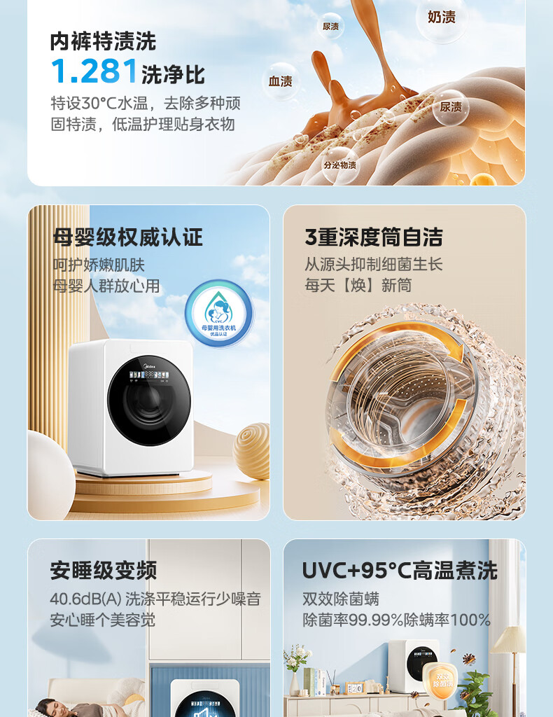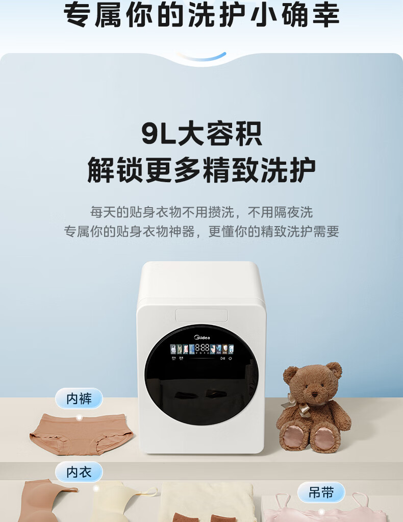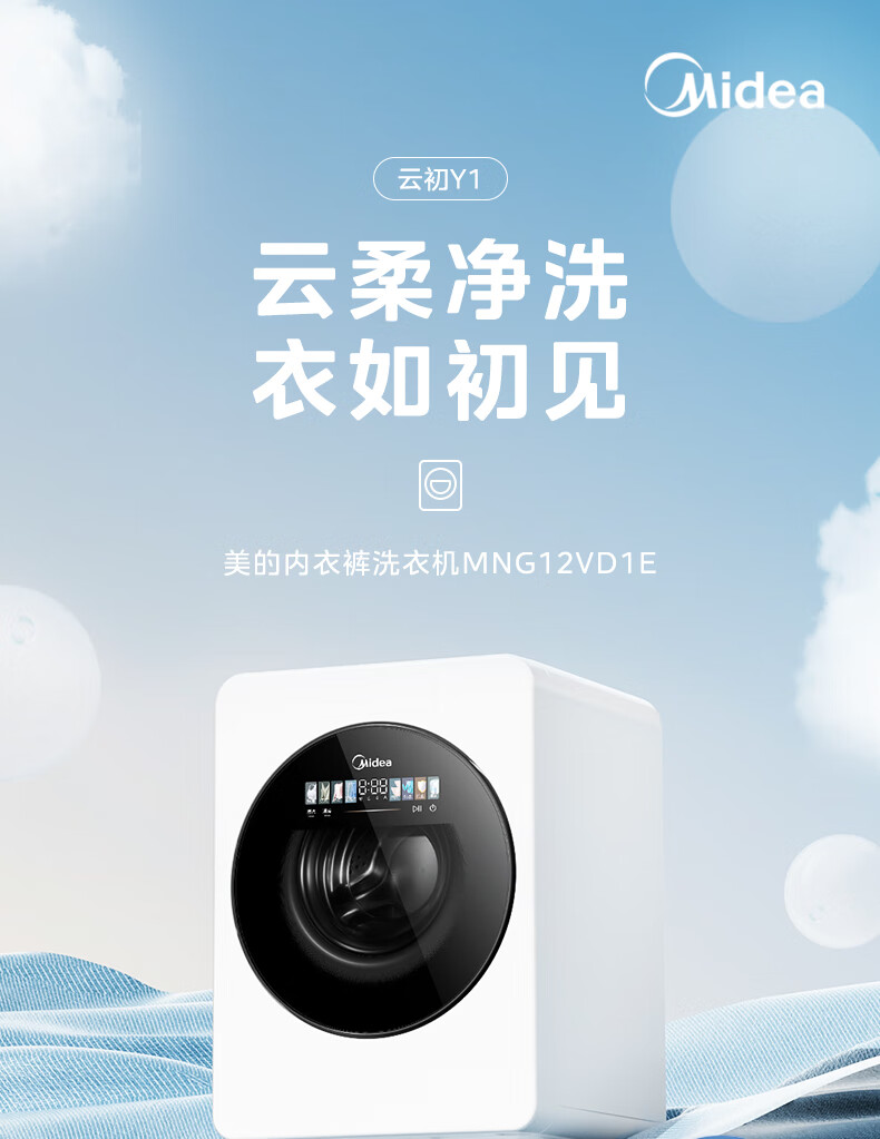 美的(Midea)内衣洗衣机家用小型懒人洗衣机母婴级认证变频至高1.281洗净比双效除菌螨触控彩屏云初Y2单洗 MNG12VD1E
