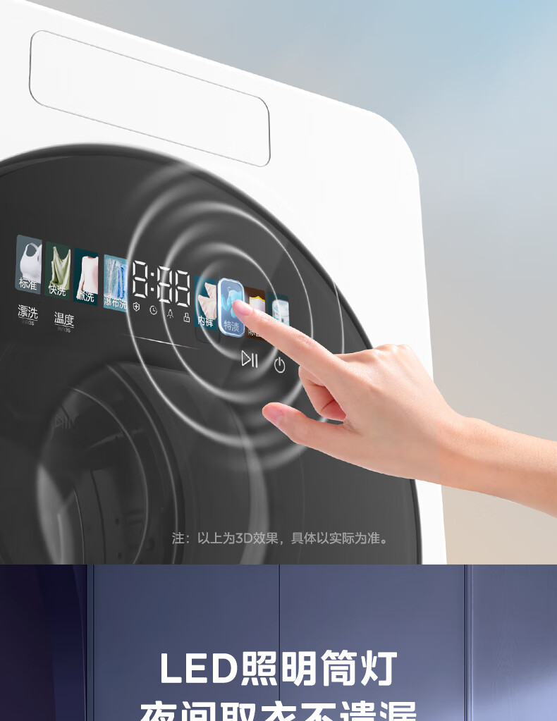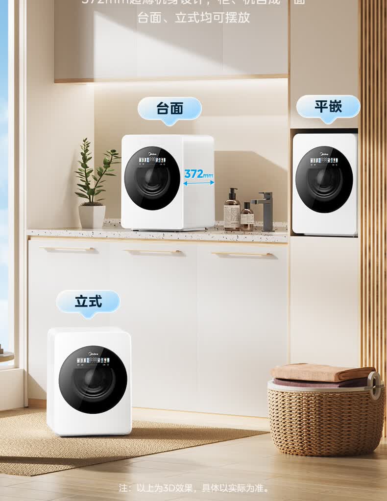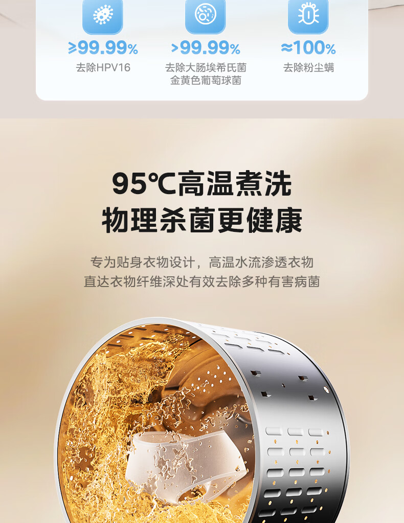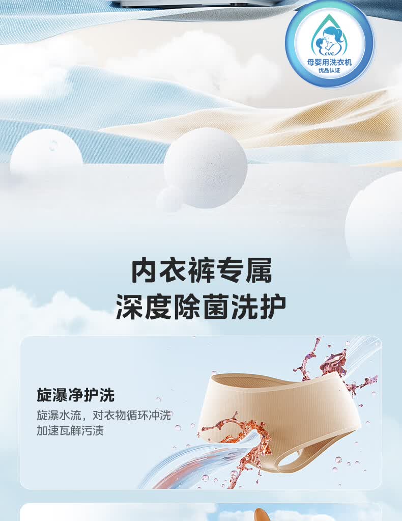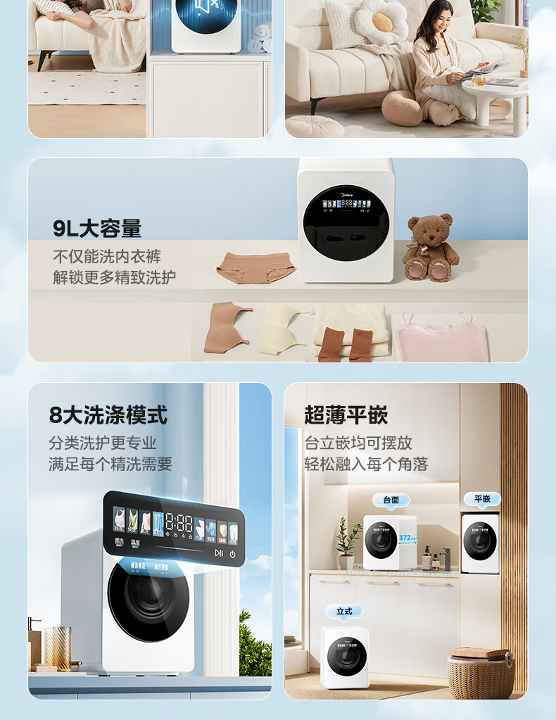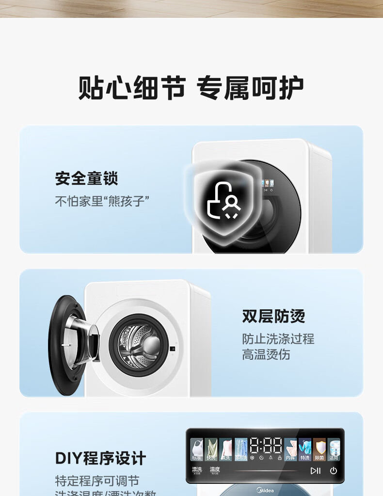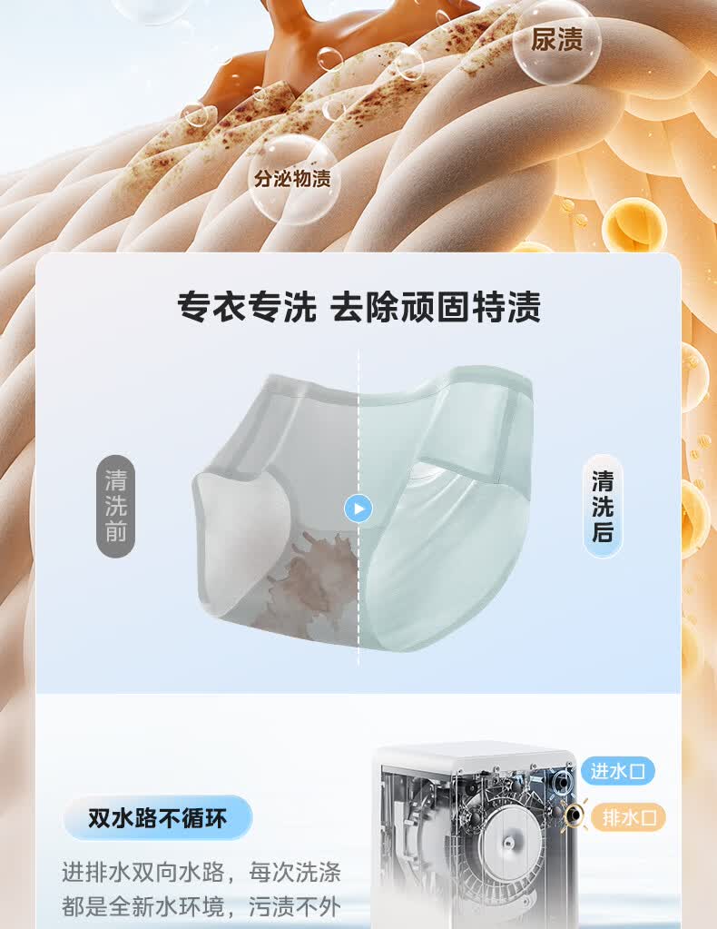 美的(Midea)内衣洗衣机家用小型懒人洗衣机母婴级认证变频至高1.281洗净比双效除菌螨触控彩屏云初Y2单洗 MNG12VD1E