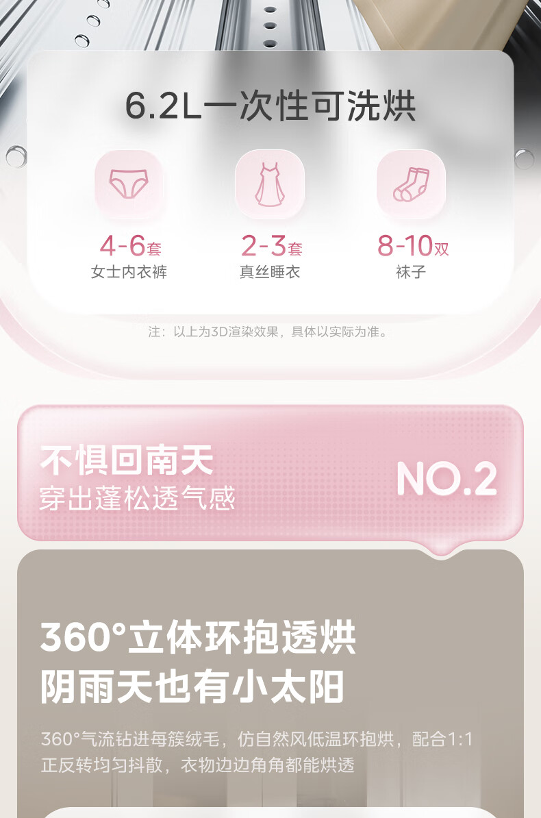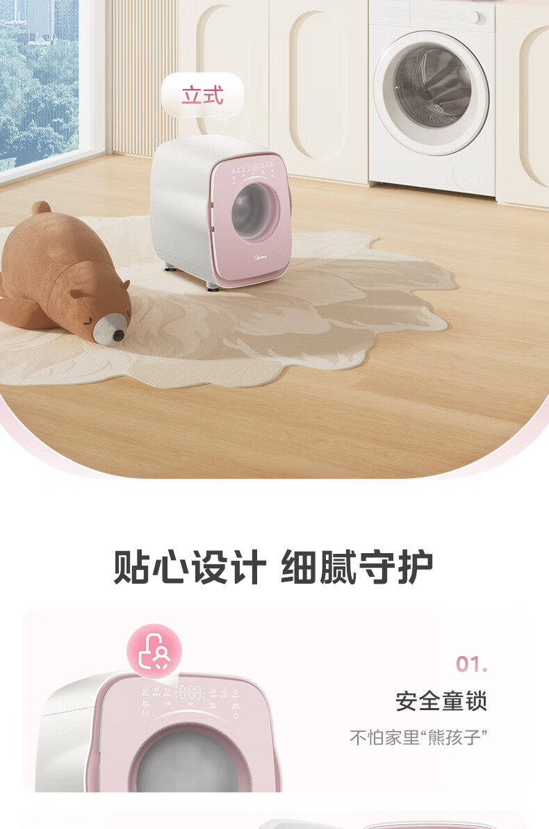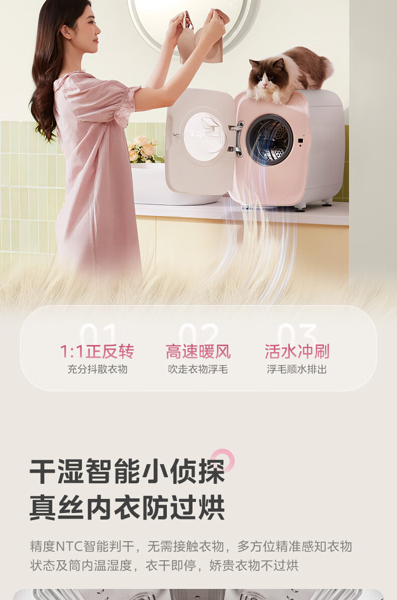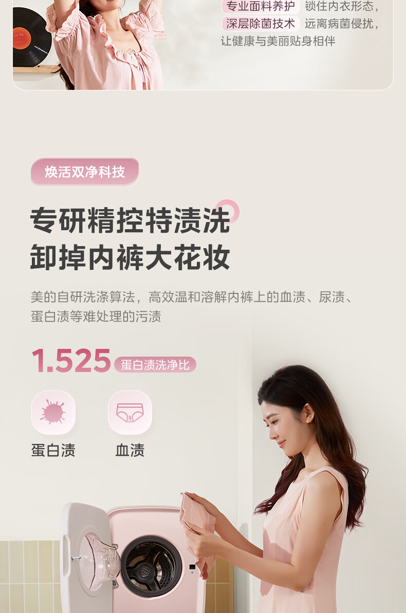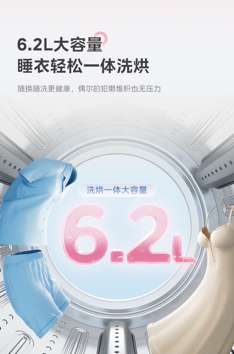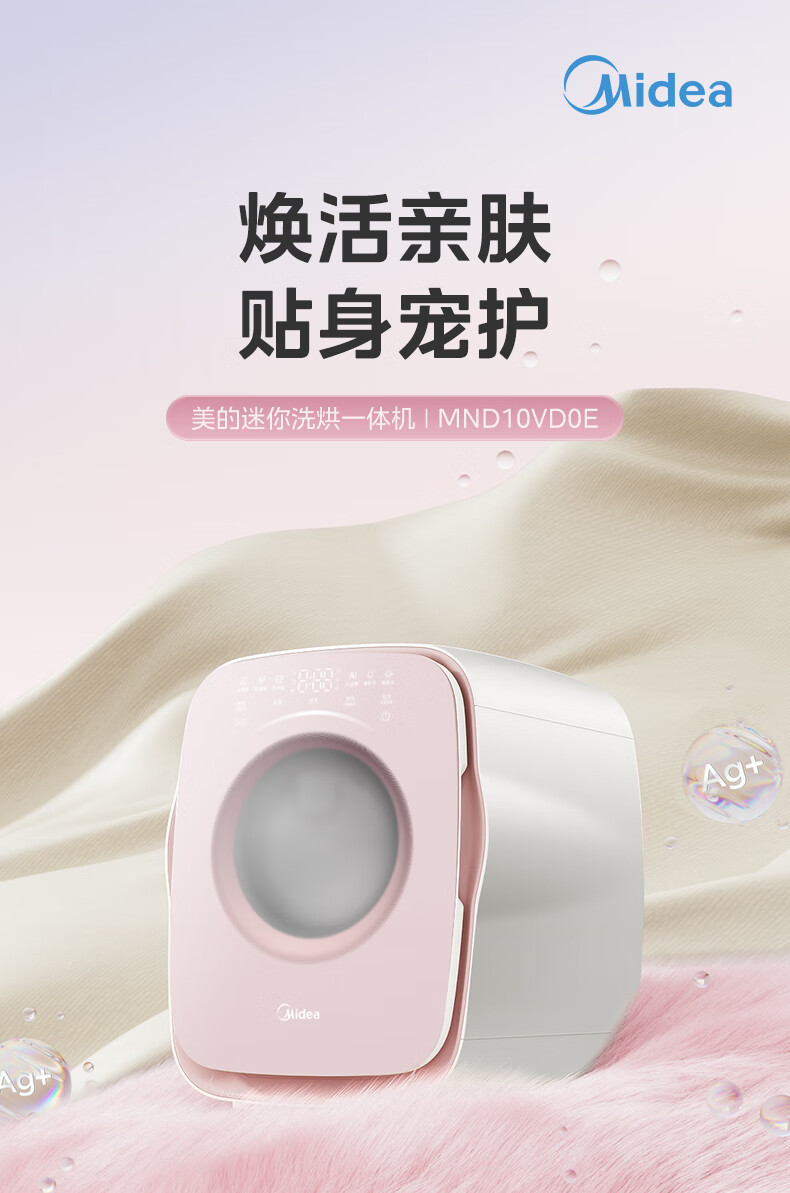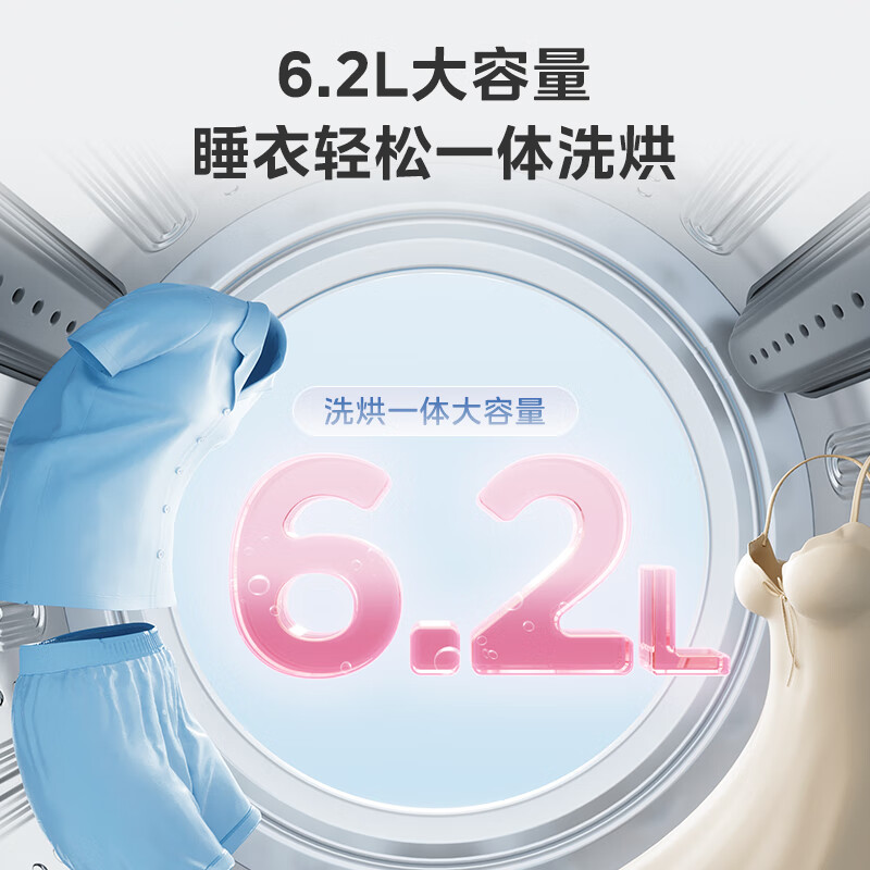 美的(Midea)内衣洗衣机洗烘一体6.2L大容量三重除菌健康AI智能判干直驱变频云初Y1 MND10VD0E