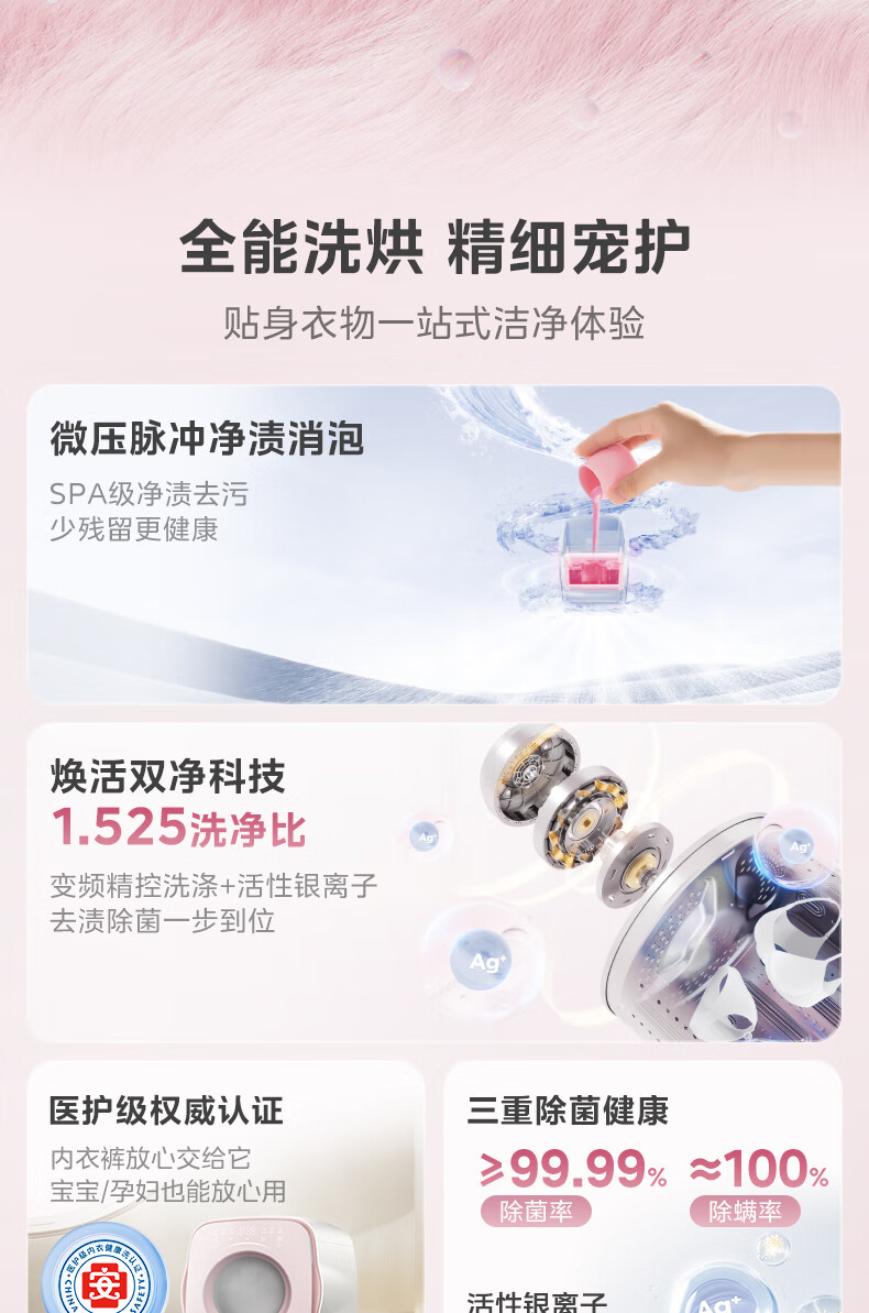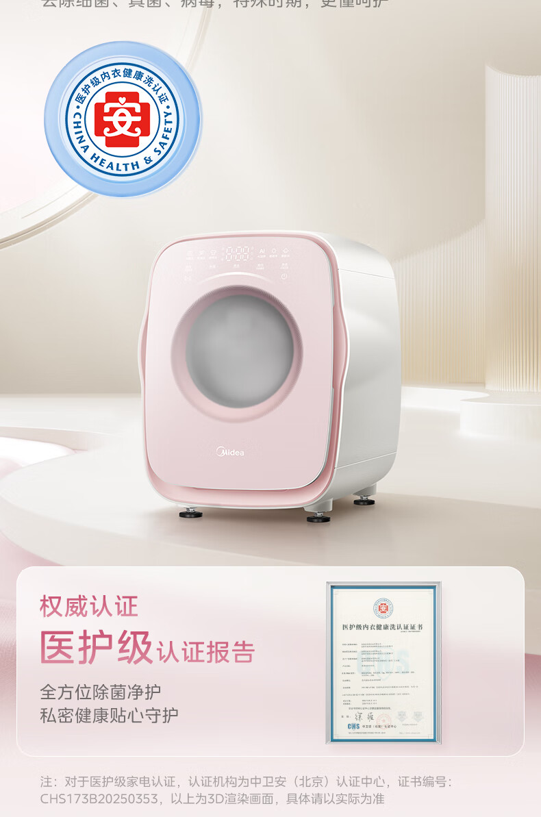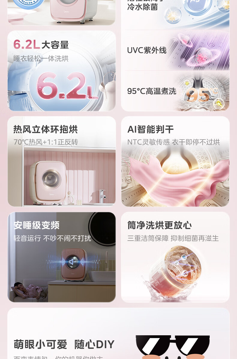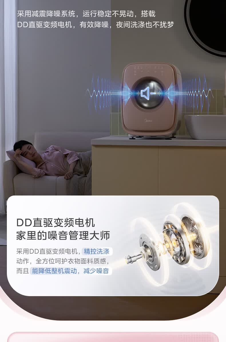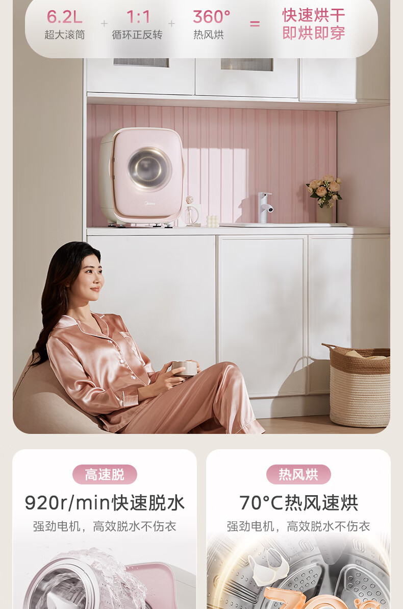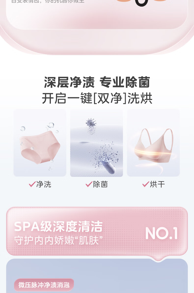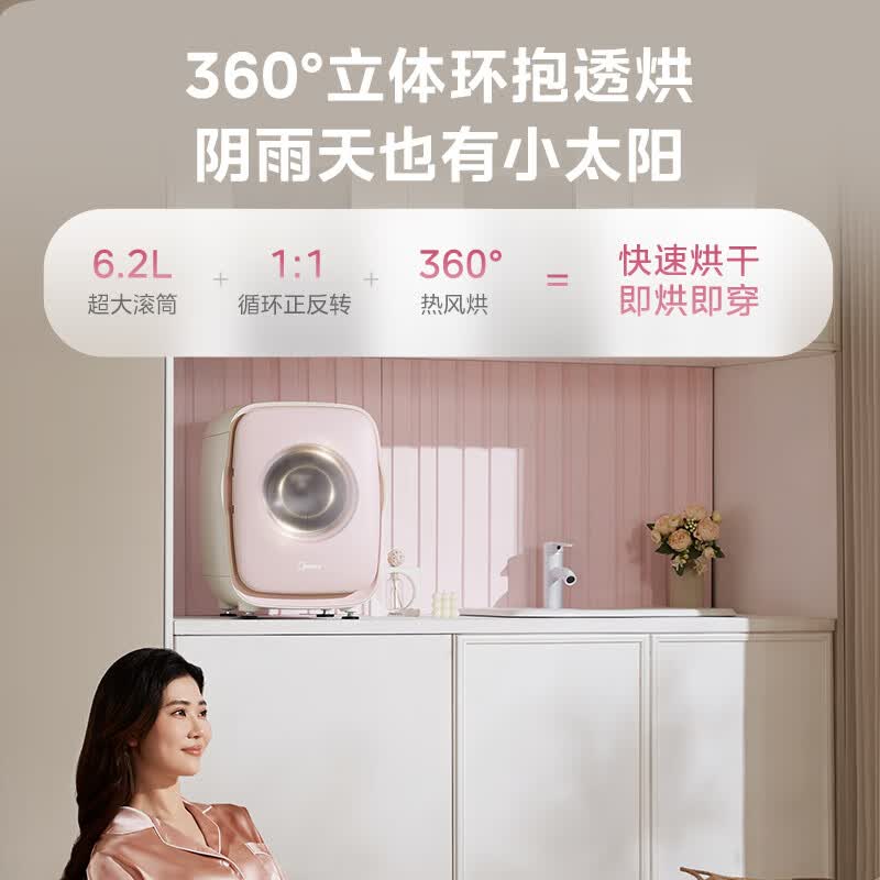 美的(Midea)内衣洗衣机洗烘一体6.2L大容量三重除菌健康AI智能判干直驱变频云初Y1 MND10VD0E