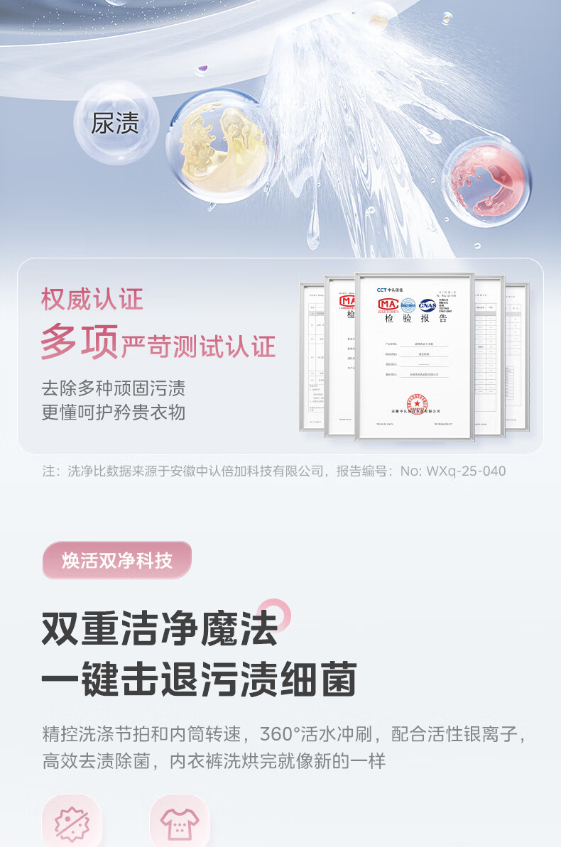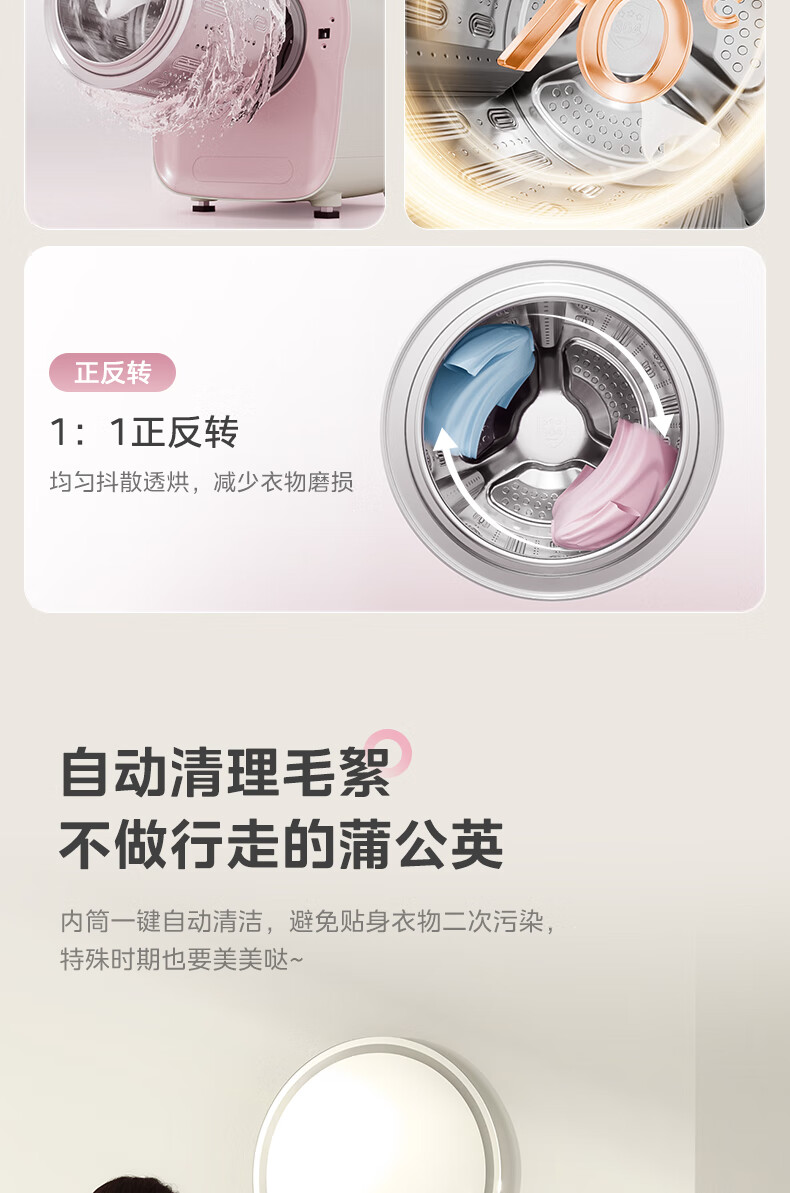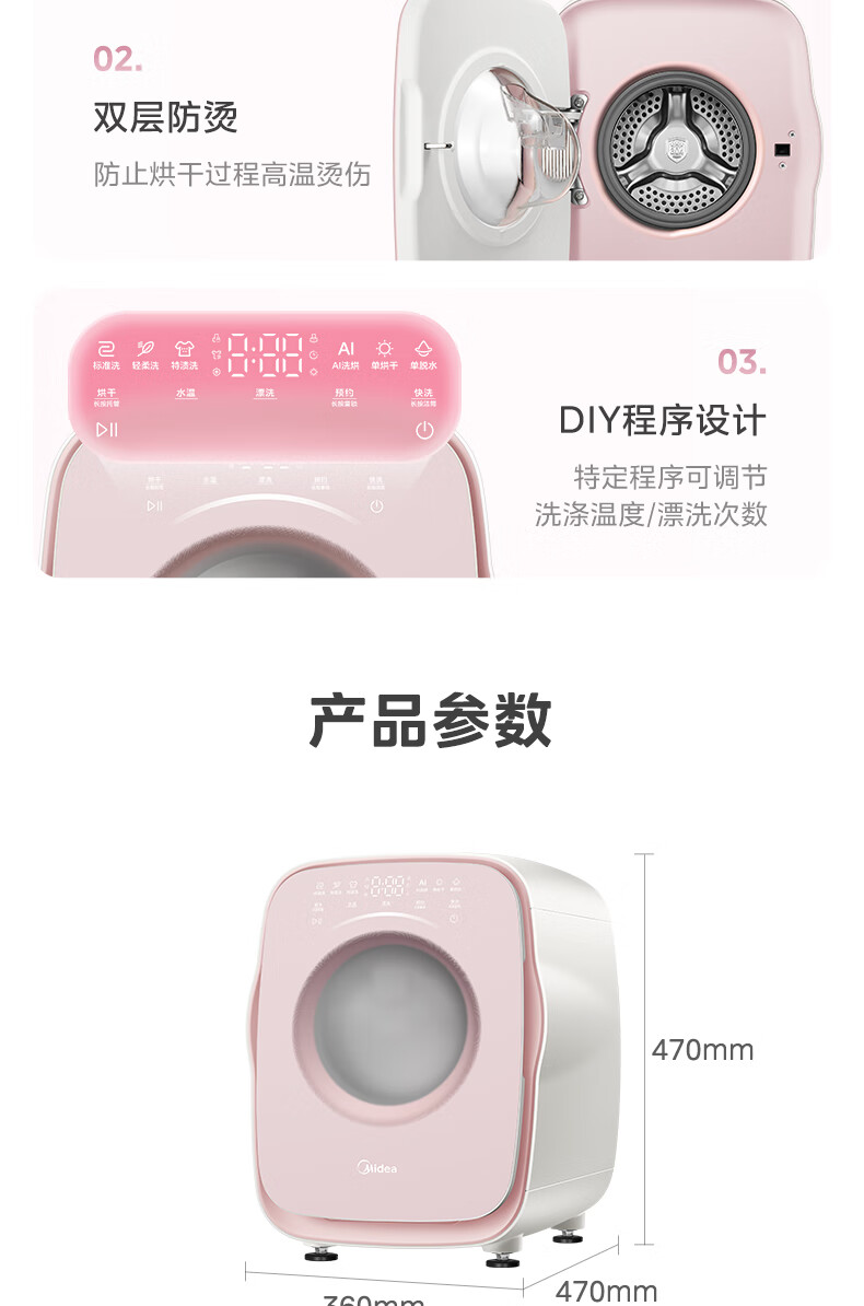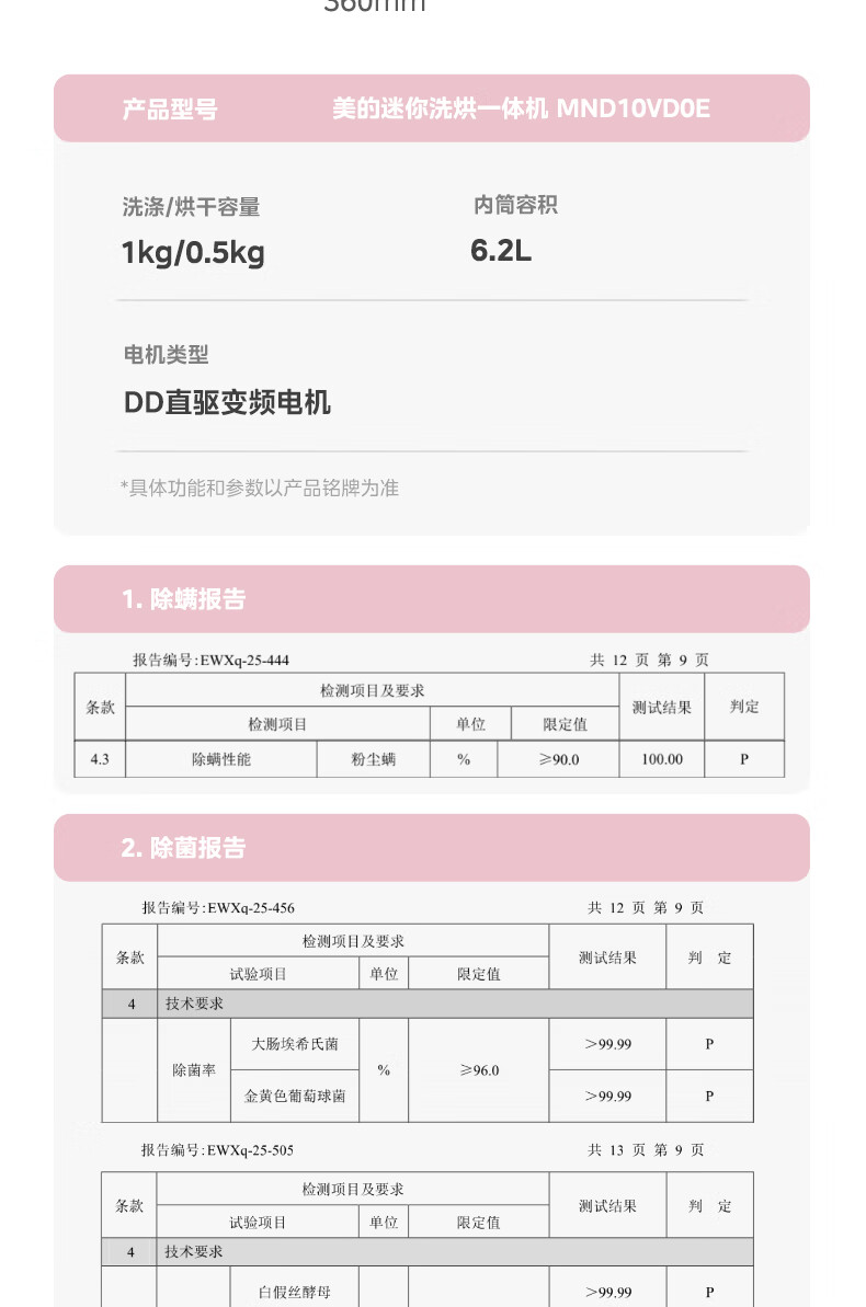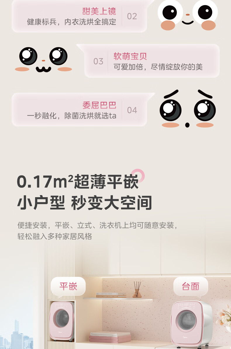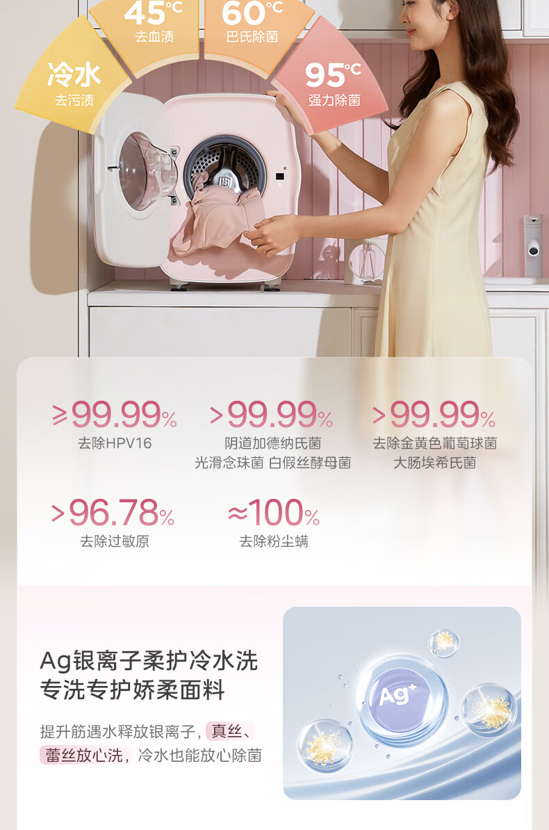 美的(Midea)内衣洗衣机洗烘一体6.2L大容量三重除菌健康AI智能判干直驱变频云初Y1 MND10VD0E
