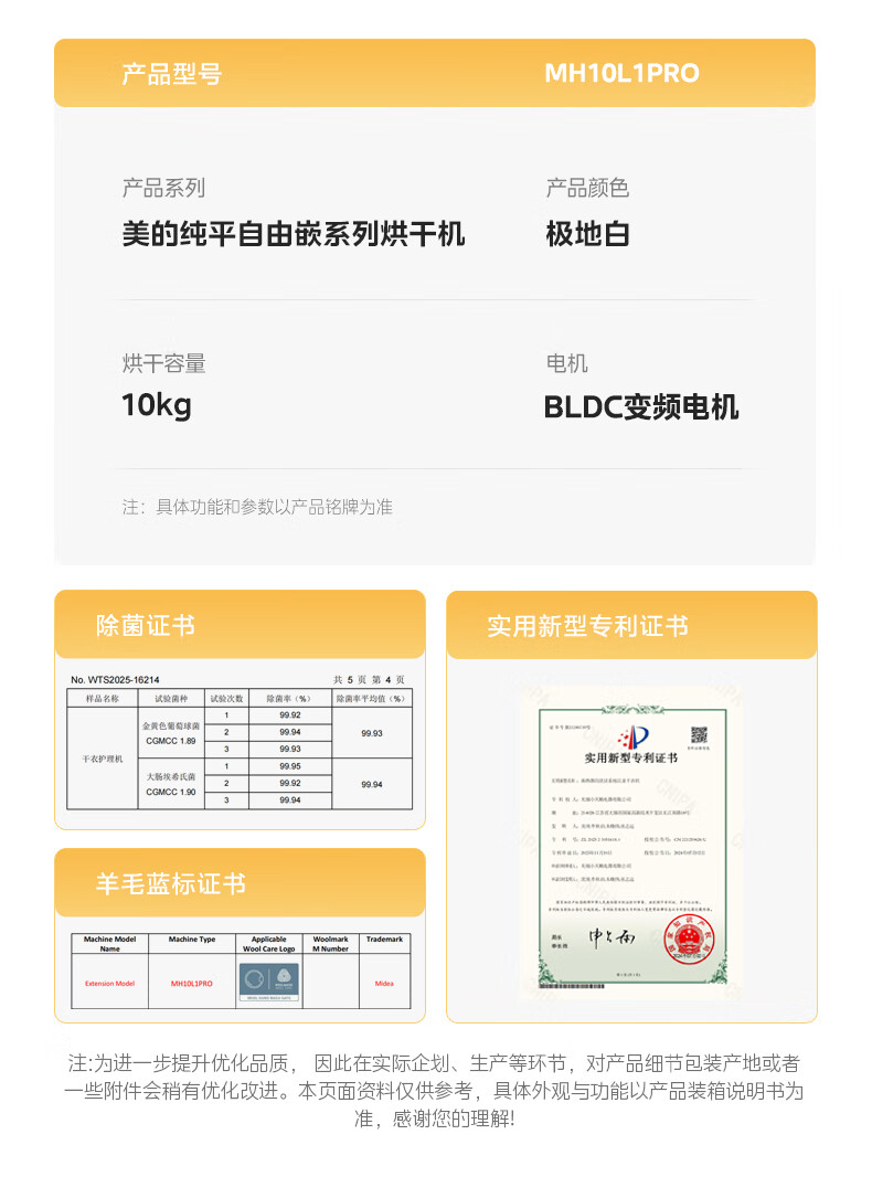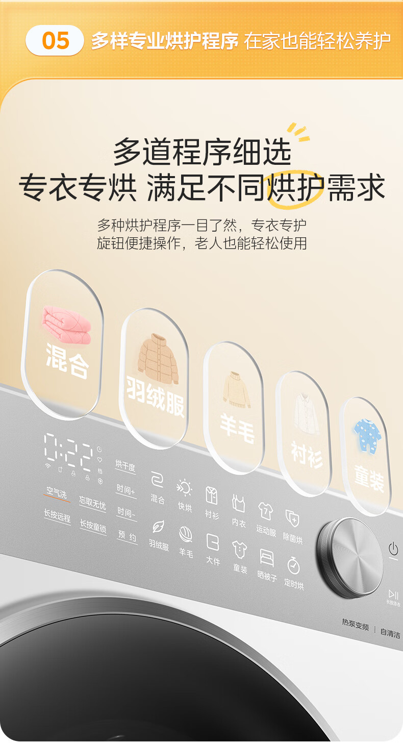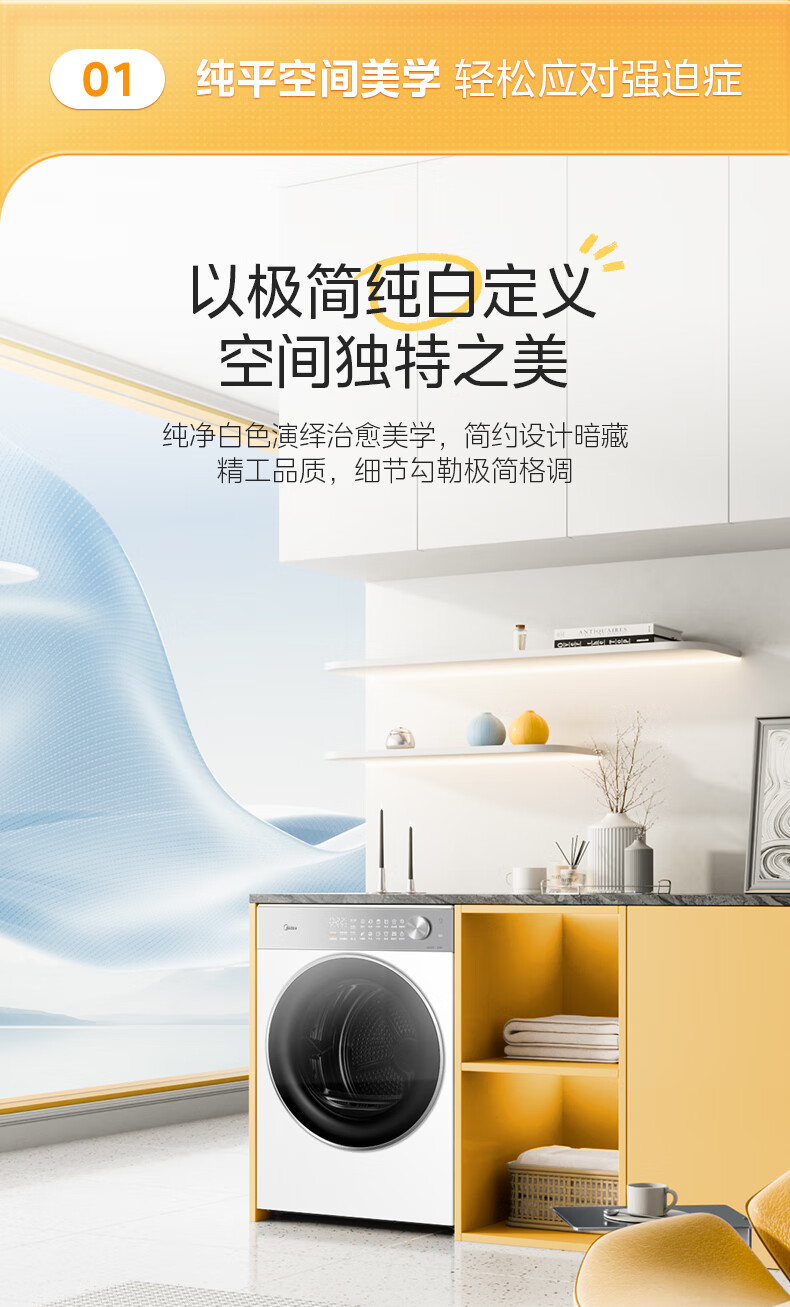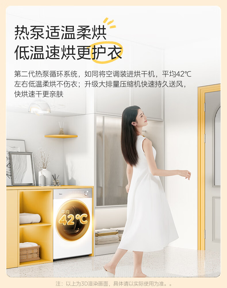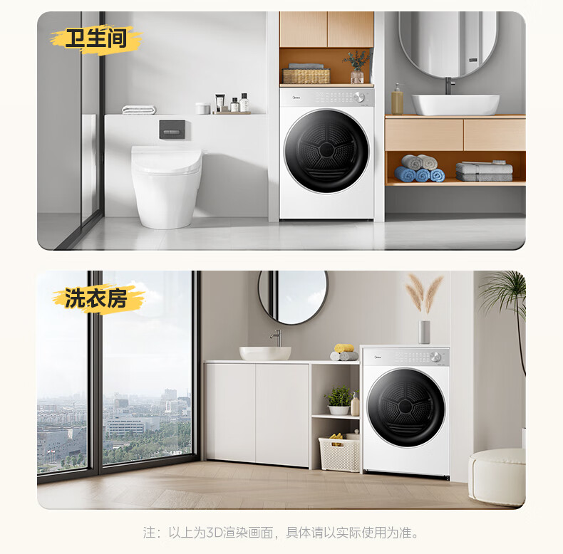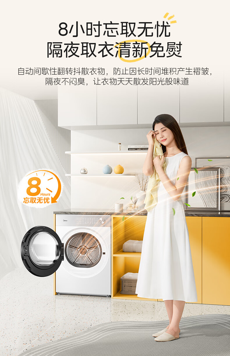 美的(Midea)10公斤热泵烘干机干衣机家用变频大风量纯平自由嵌羊毛蓝标智能判干 MH10L1PRO