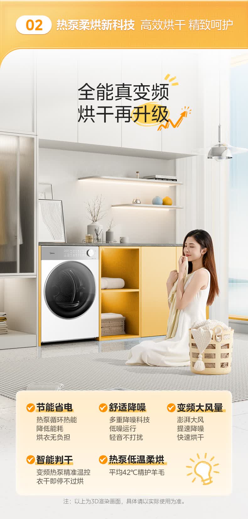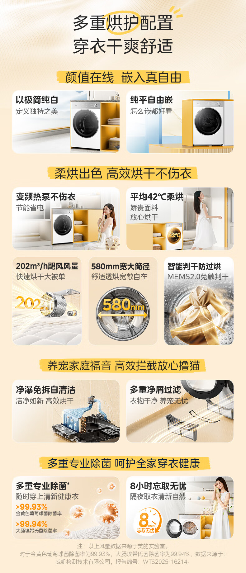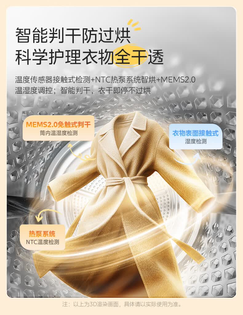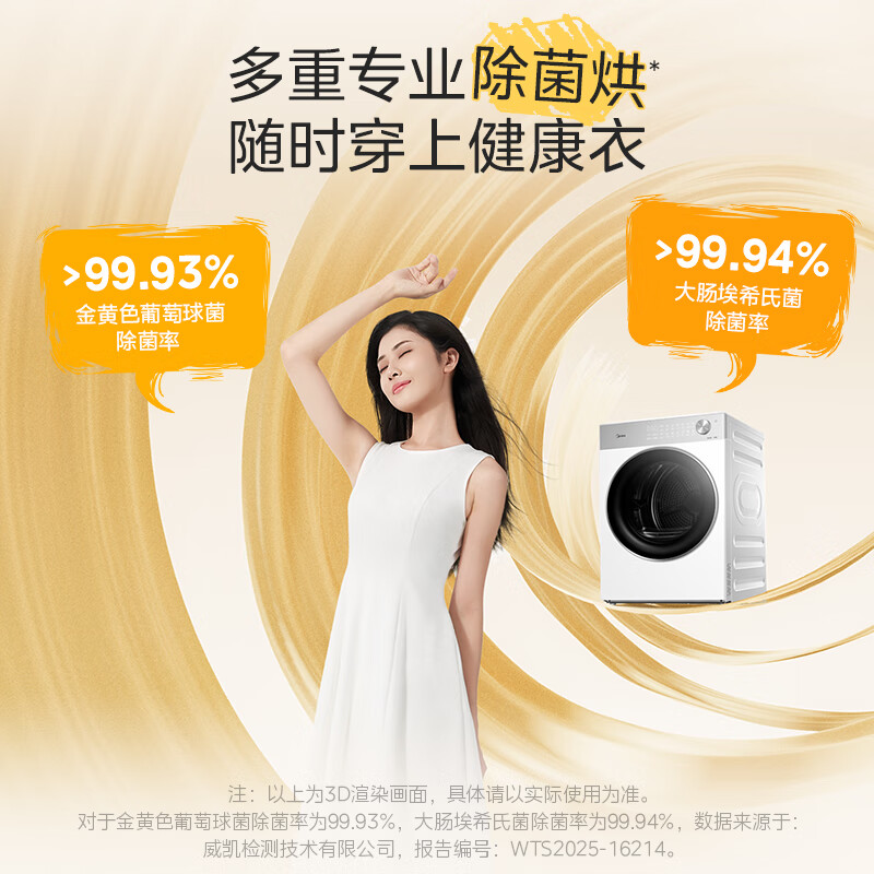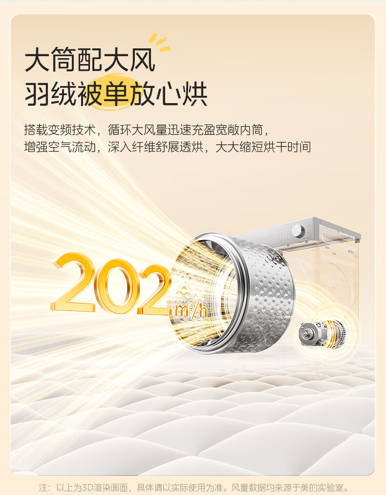 美的(Midea)10公斤热泵烘干机干衣机家用变频大风量纯平自由嵌羊毛蓝标智能判干 MH10L1PRO