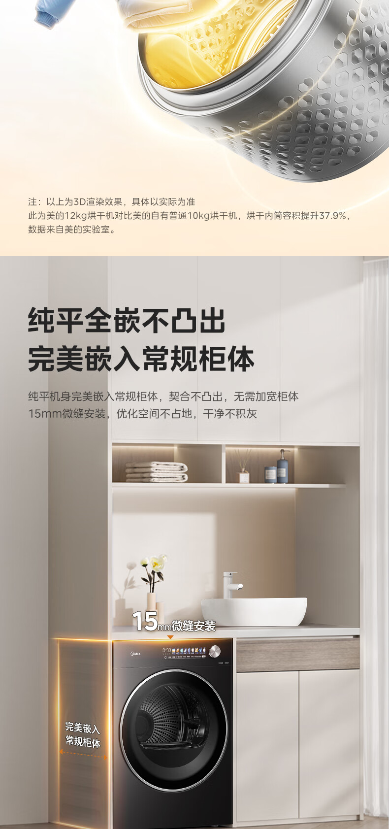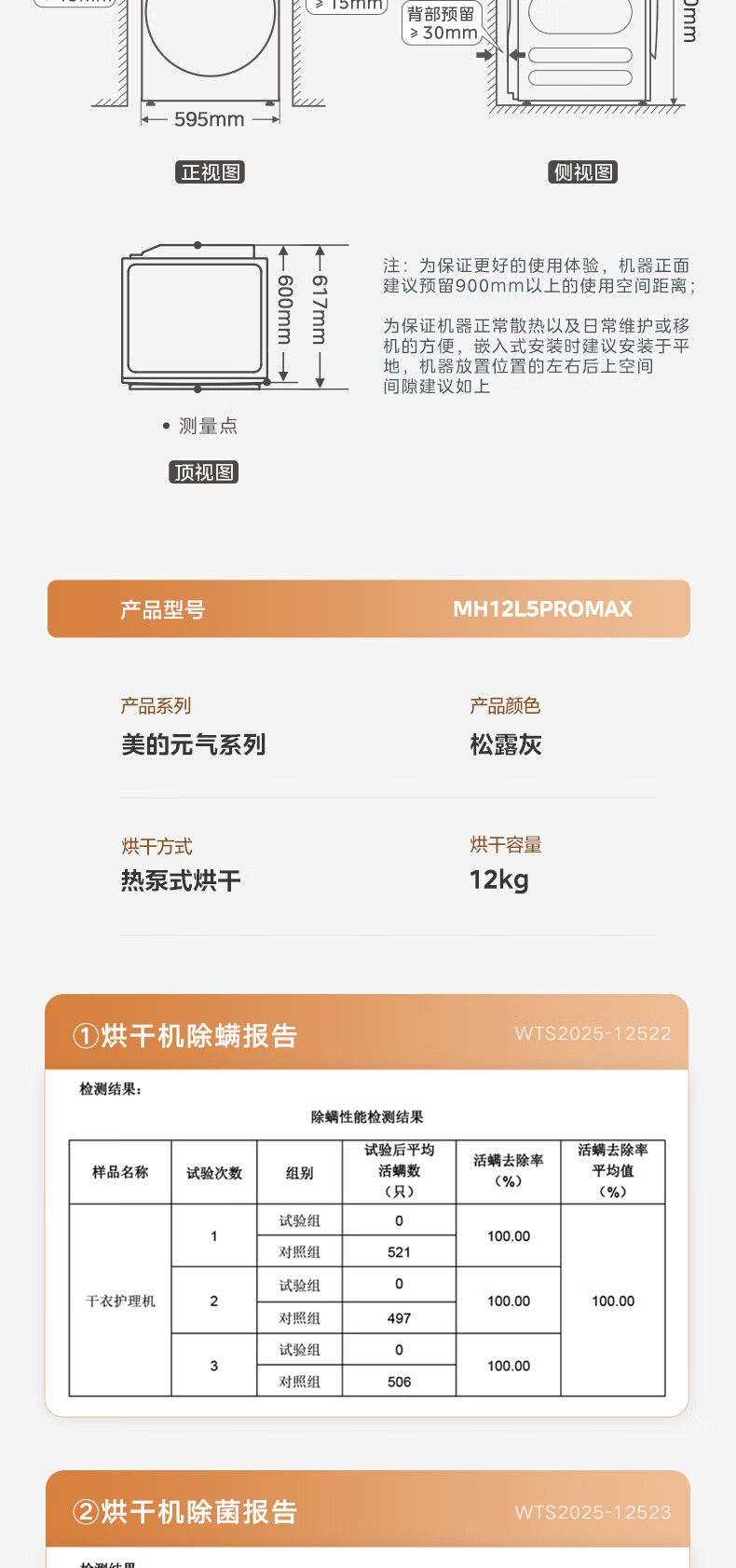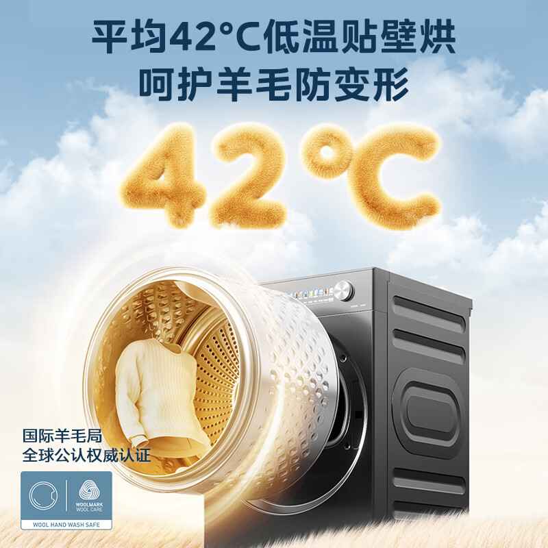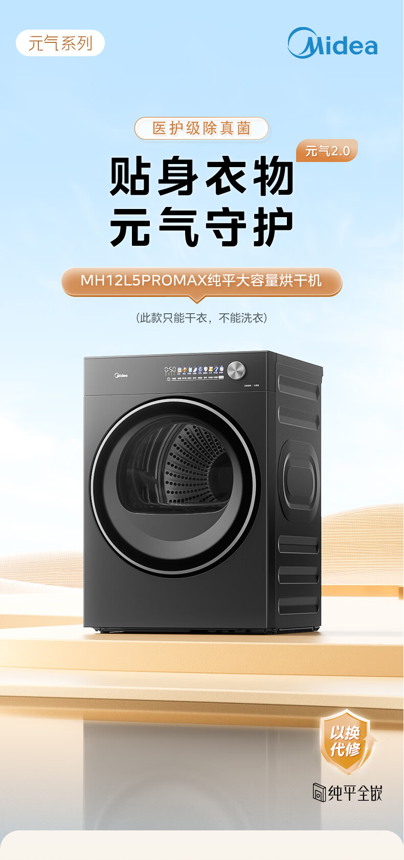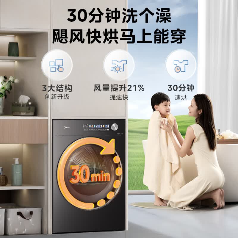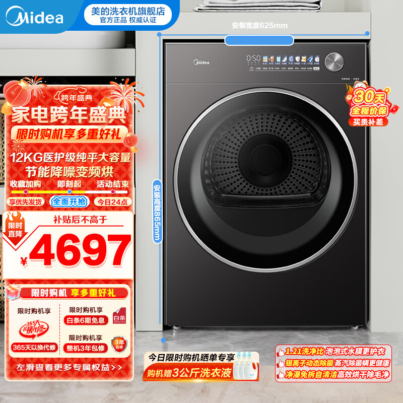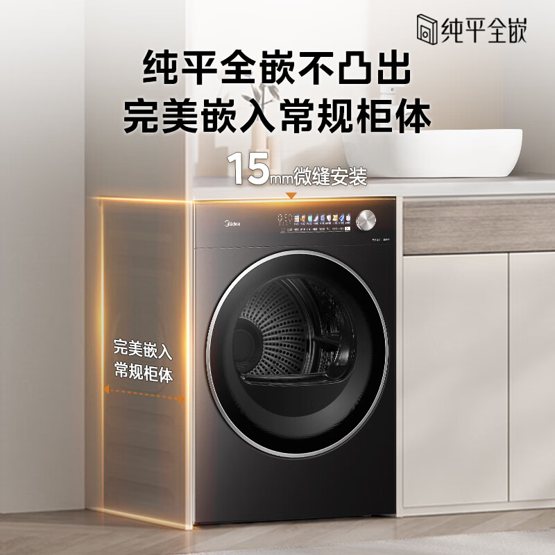 美的(Midea)12kg热泵烘干机家用大容量变频医护级除菌纯平全嵌七维降噪AI正反转 MH12L5PROMAX