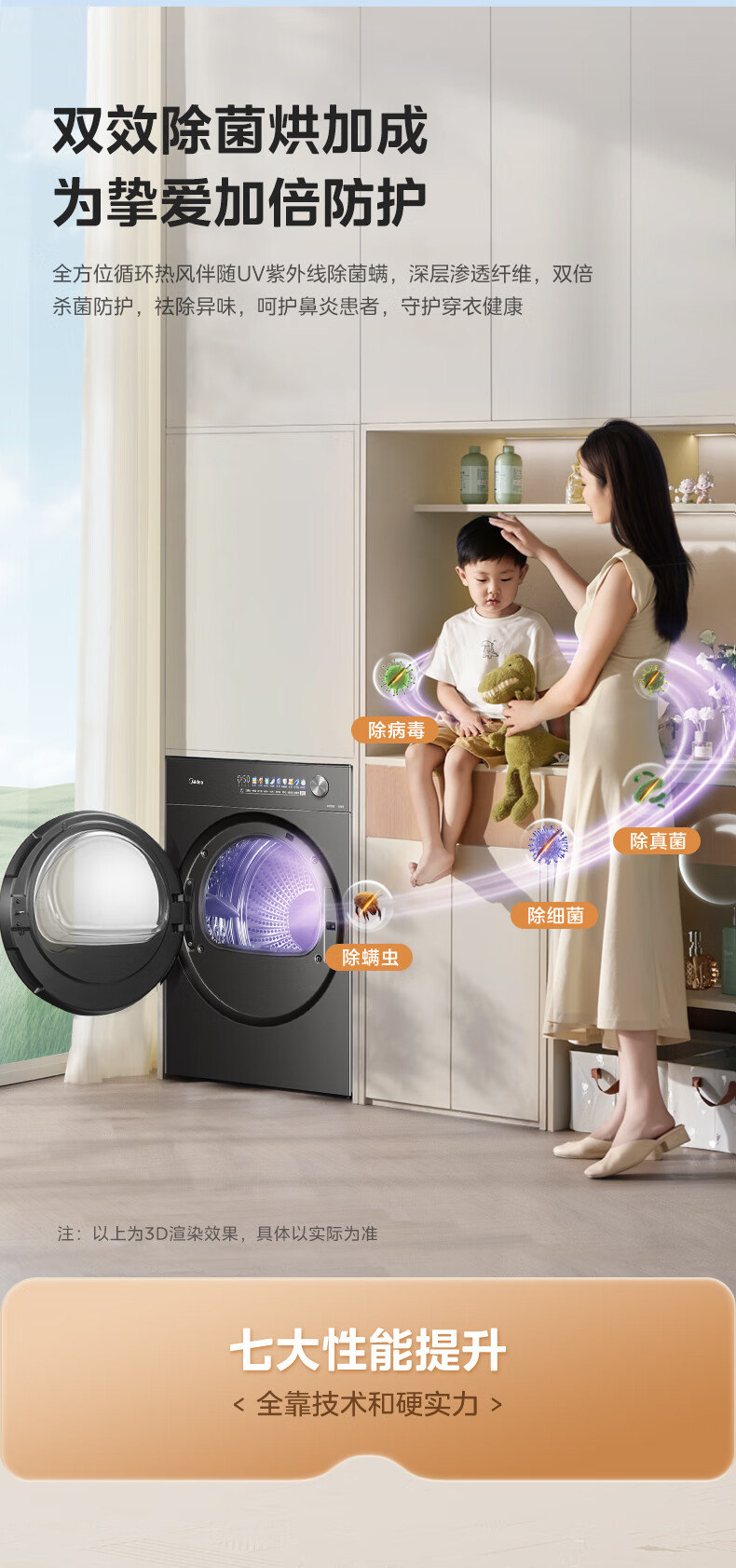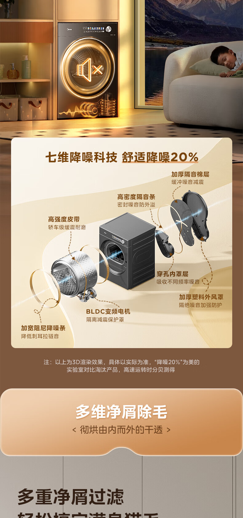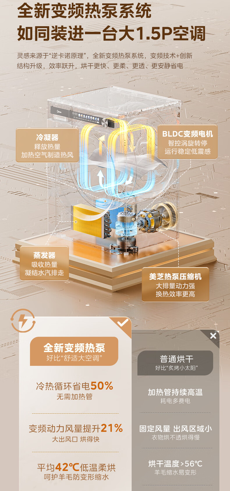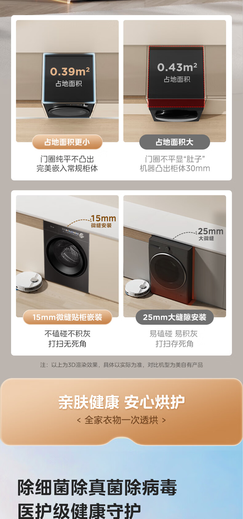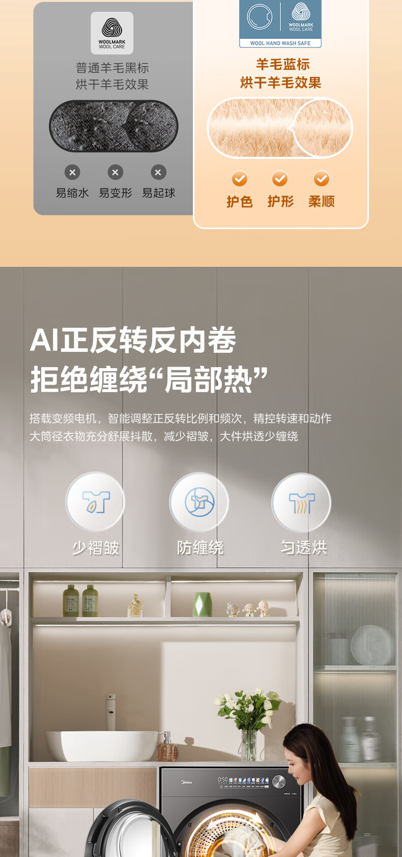 美的(Midea)12kg热泵烘干机家用大容量变频医护级除菌纯平全嵌七维降噪AI正反转 MH12L5PROMAX