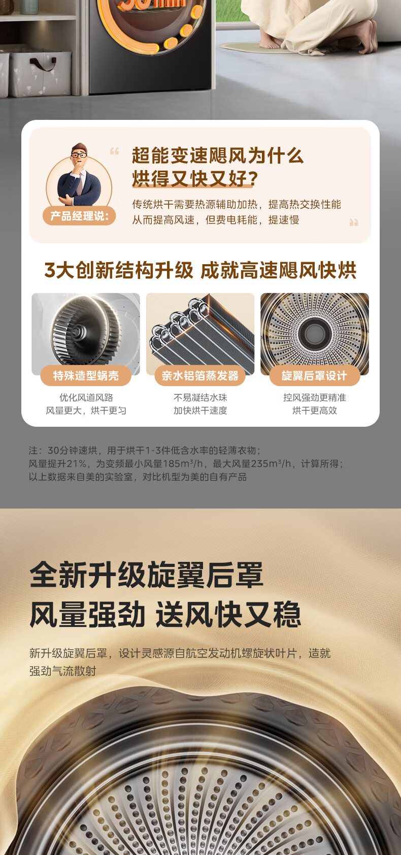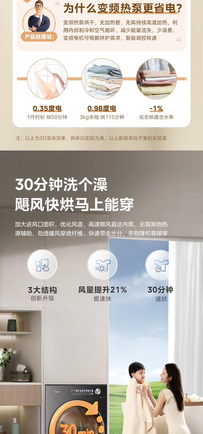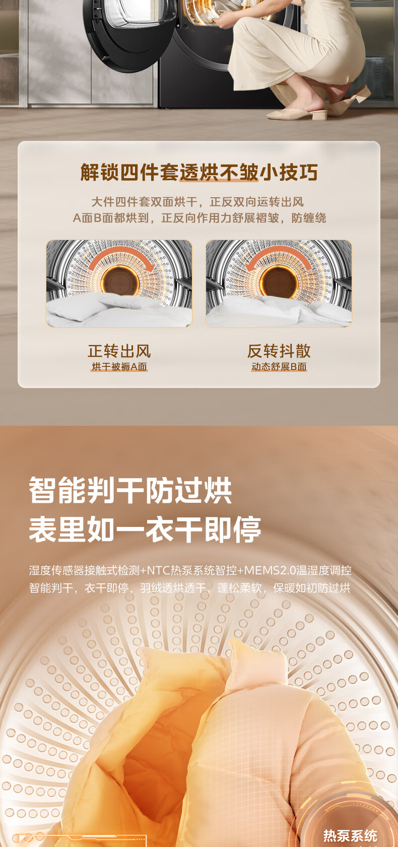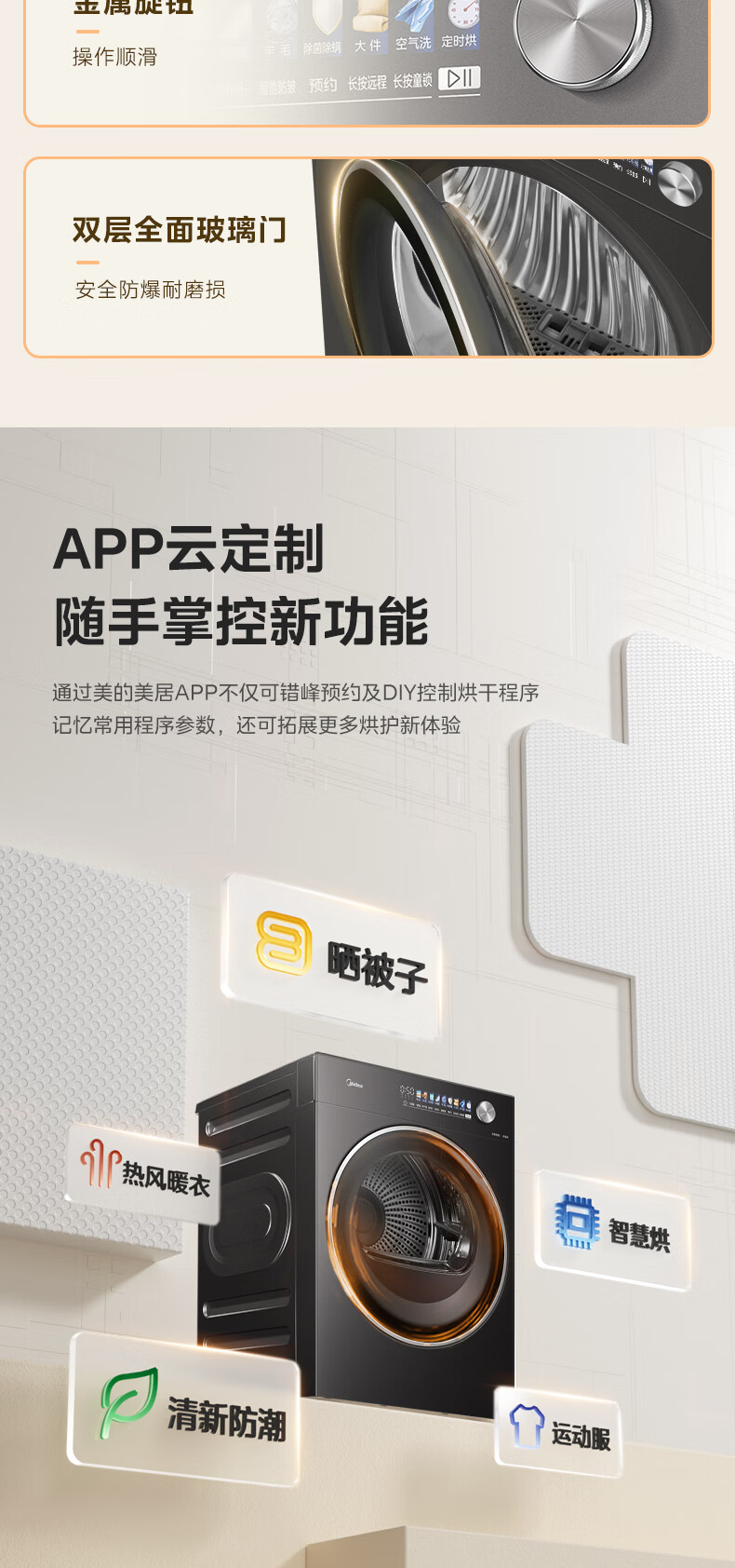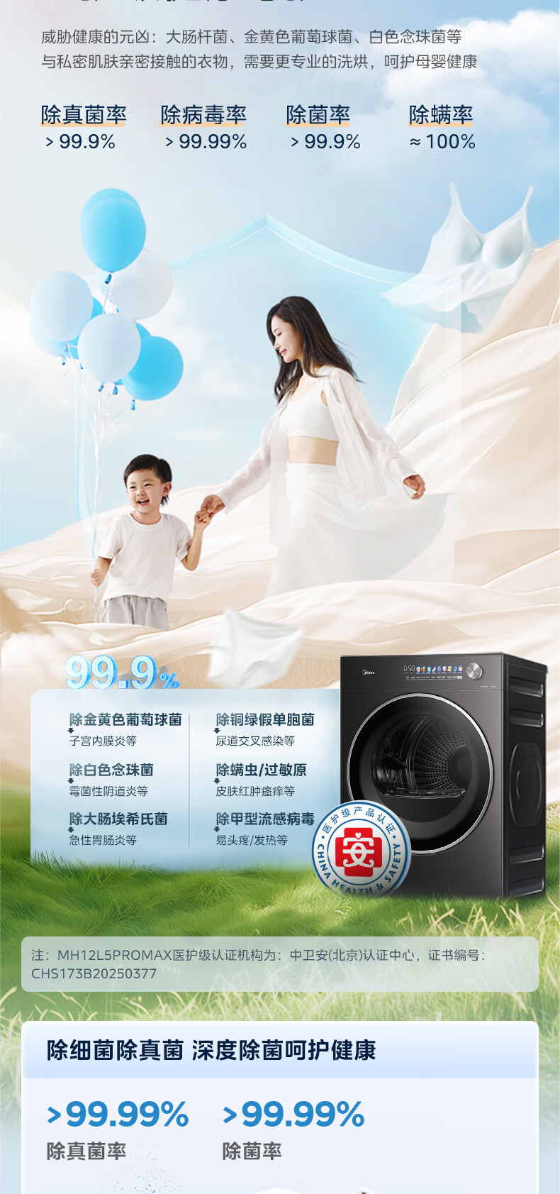 美的(Midea)12kg热泵烘干机家用大容量变频医护级除菌纯平全嵌七维降噪AI正反转 MH12L5PROMAX