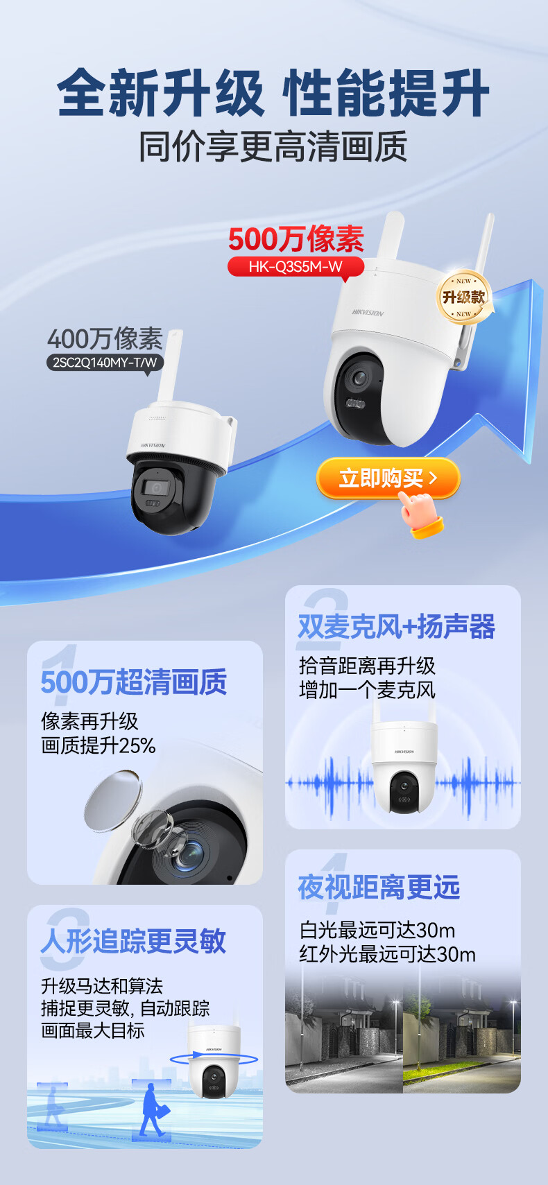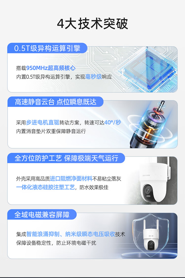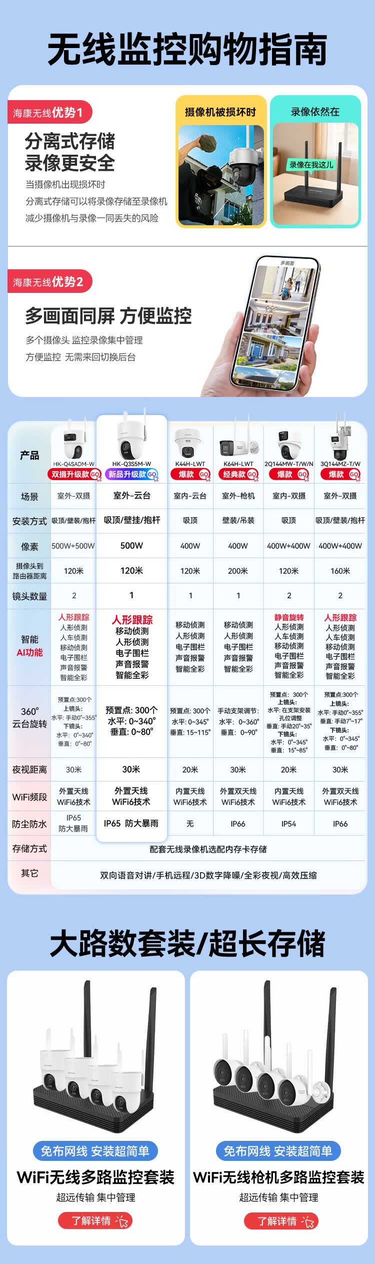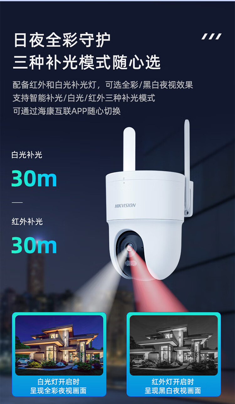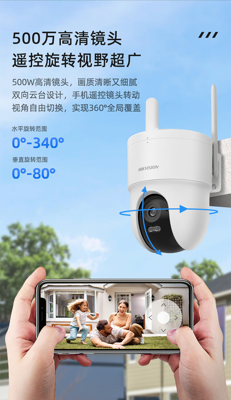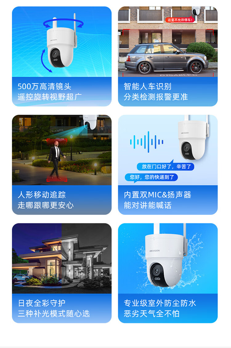 HIKVISION海康威视无线摄像头室外WiFi6监控器AI人形跟踪500W3K高清360度无死角全景云台声音报警HK-Q3S5M-W