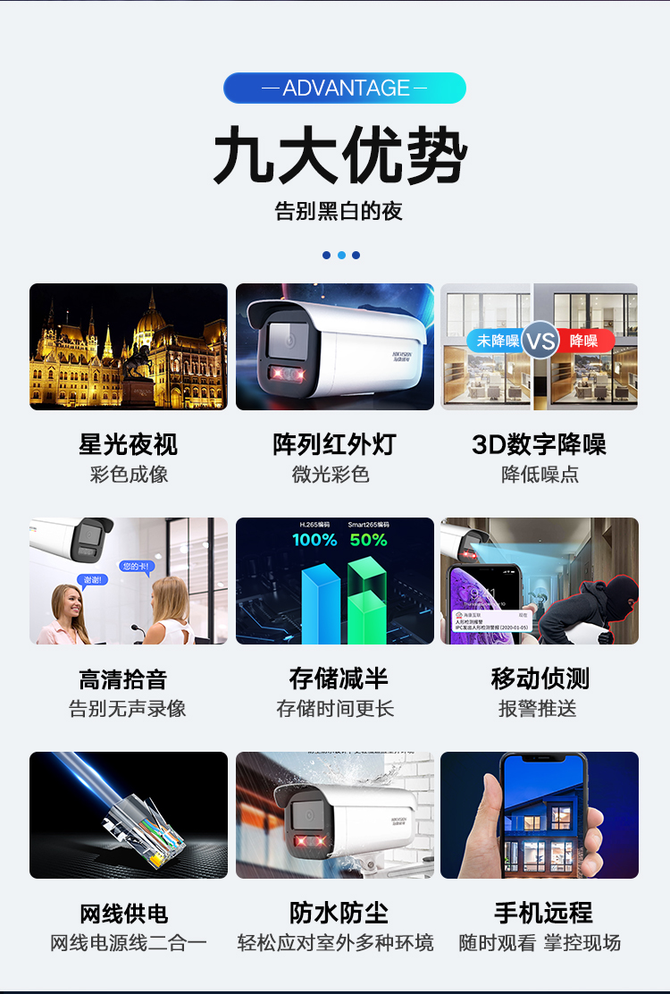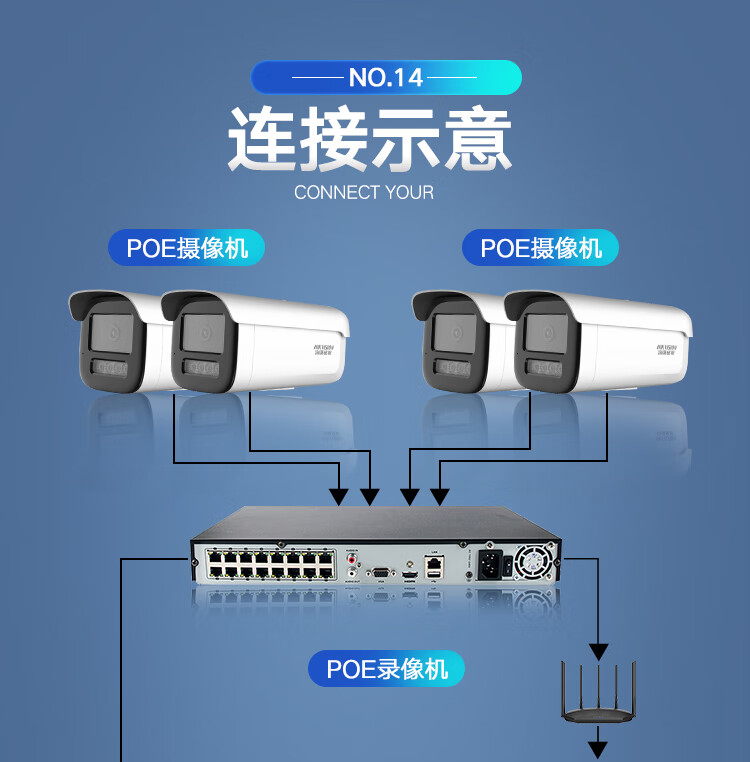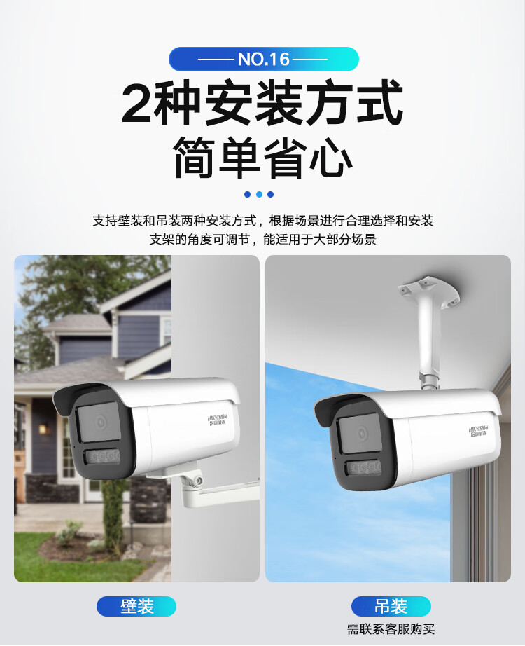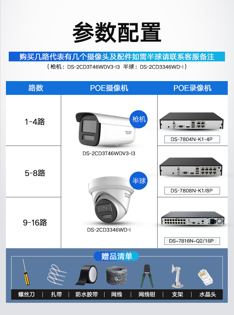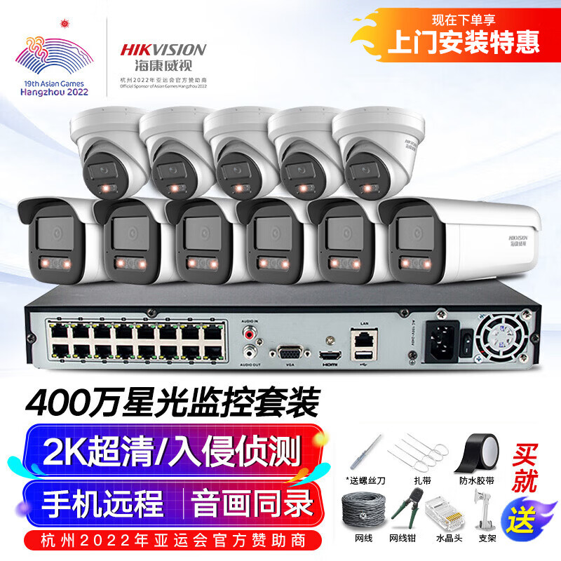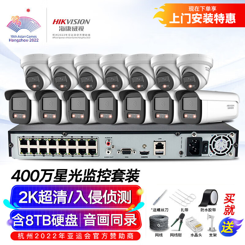 HIKVISION海康威视监控套装摄像头解决方案400万星光夜视2K高清拾音室外防尘防水poe网线供电4路2T硬盘3T46