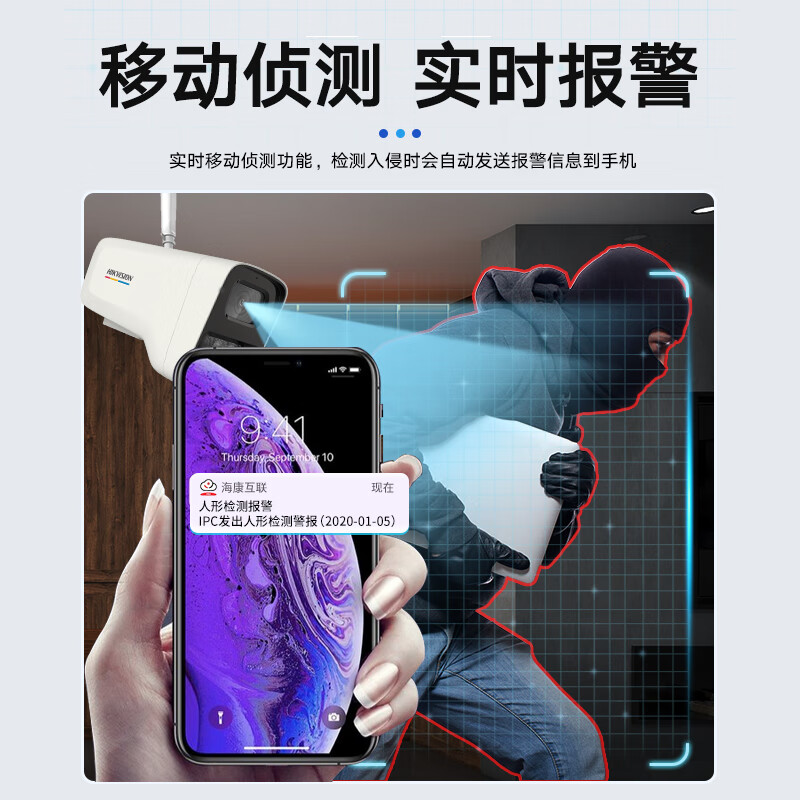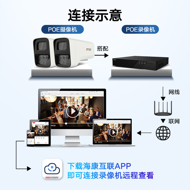 HIKVISION海康威视监控摄像头200万臻全彩高清夜视室内室外防水网络手机远程监控器POE供电3T27WD-LU 4MM