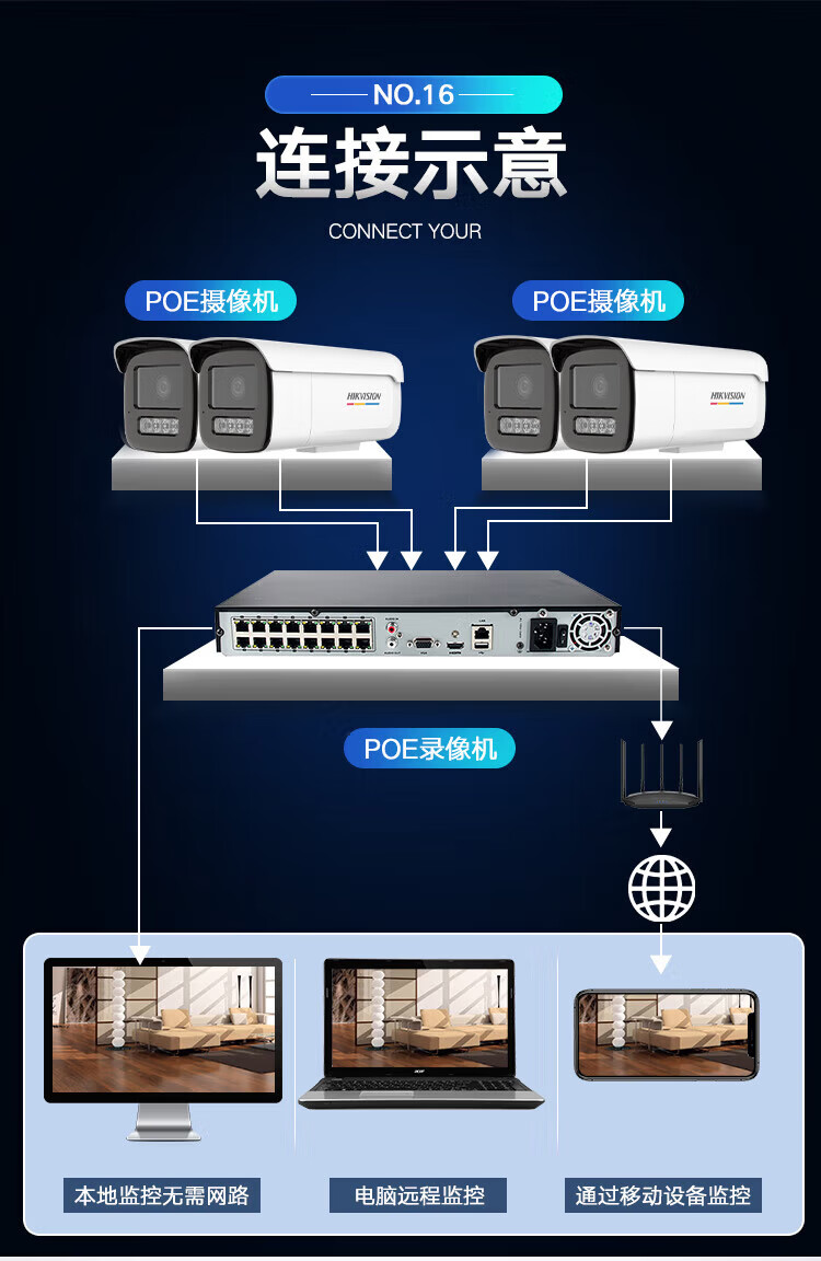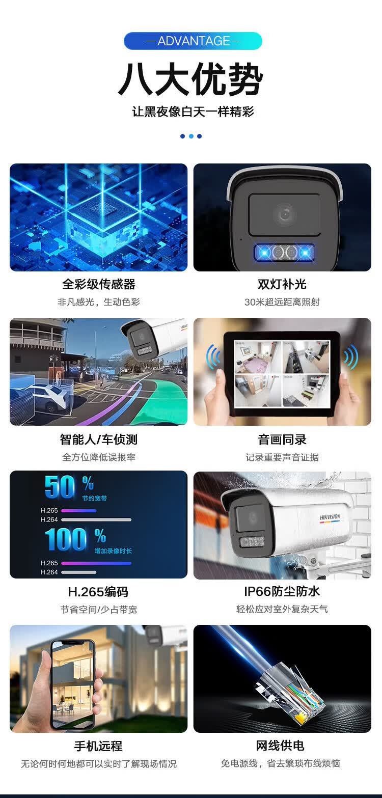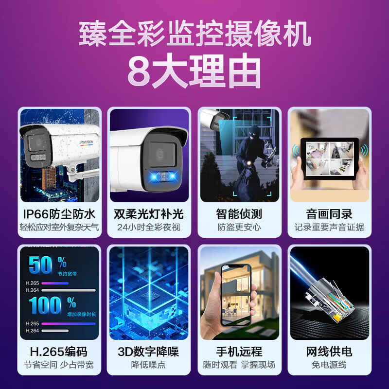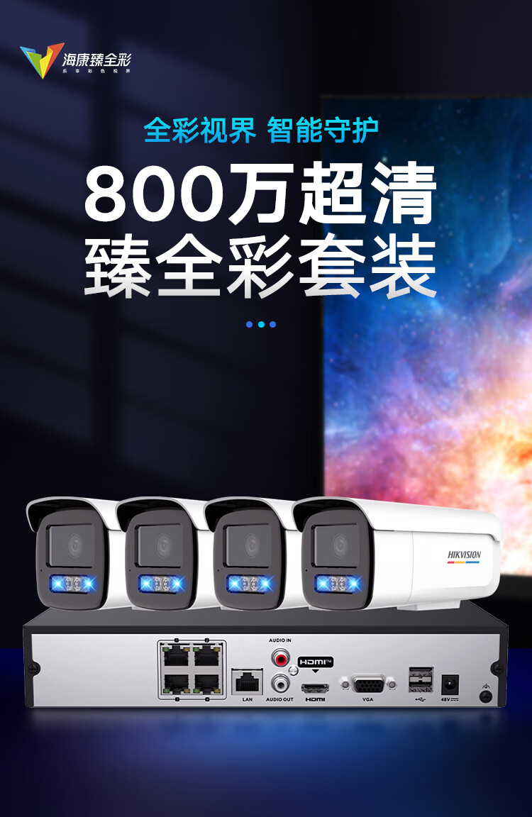 HIKVISION海康威视监控摄像头套装4路2T800万超高清监控器摄像机室内外臻全彩夜视手机远程3T87WDV3-L