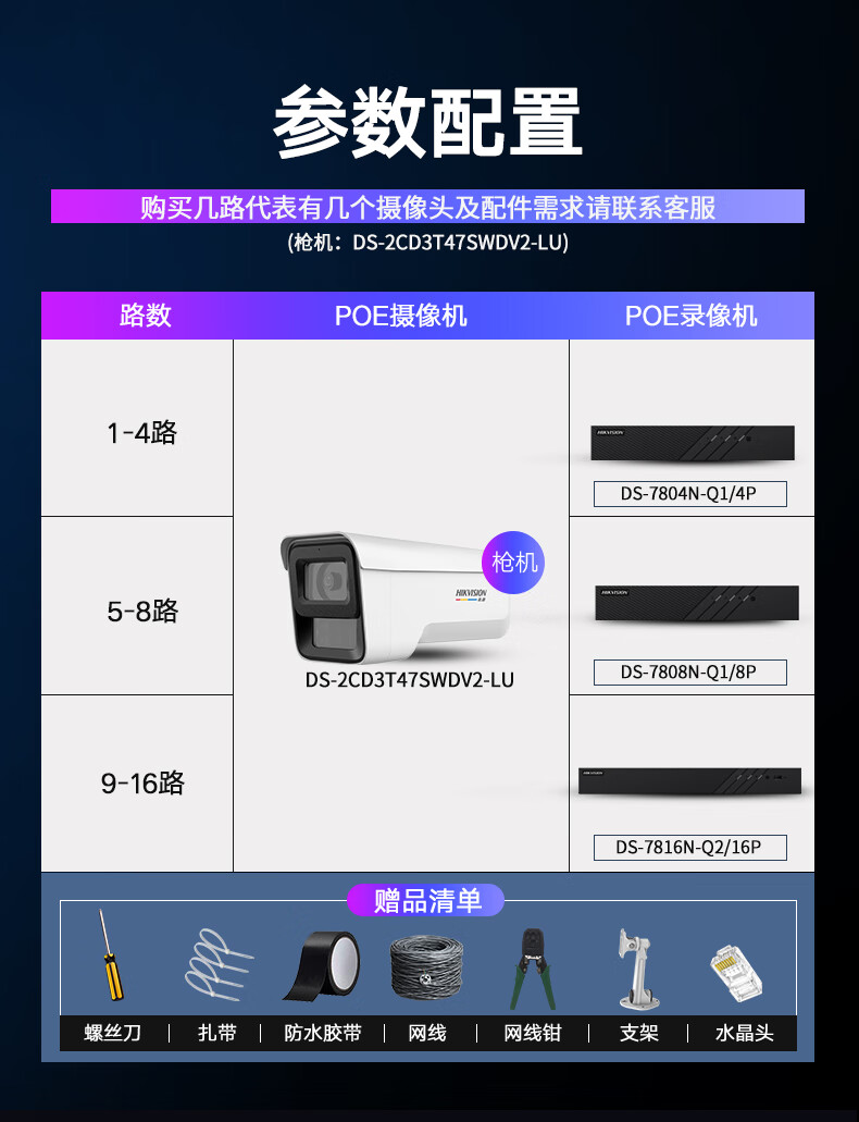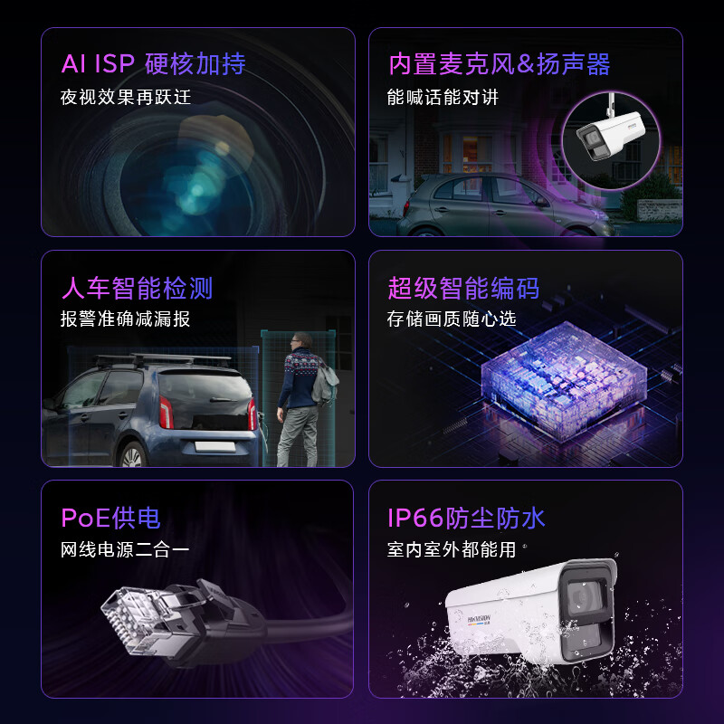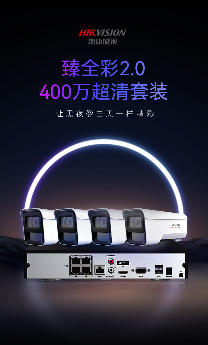 HIKVISION海康威视摄像头监控套装400W超高清监控器全套设备POE手机远程防水臻全彩夜视3T47SWDV2-LU