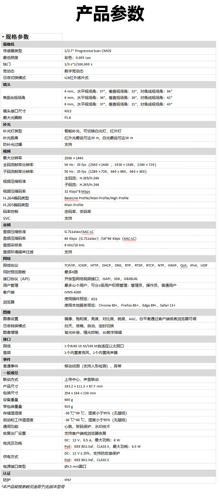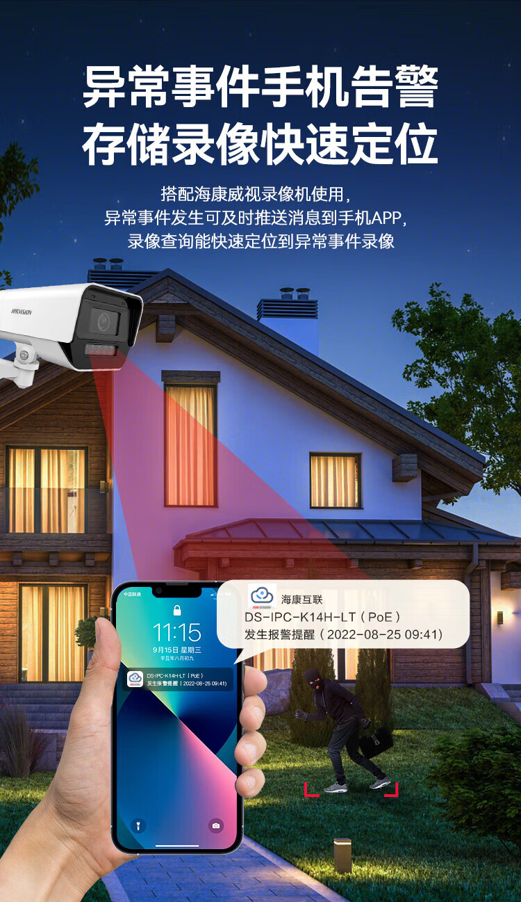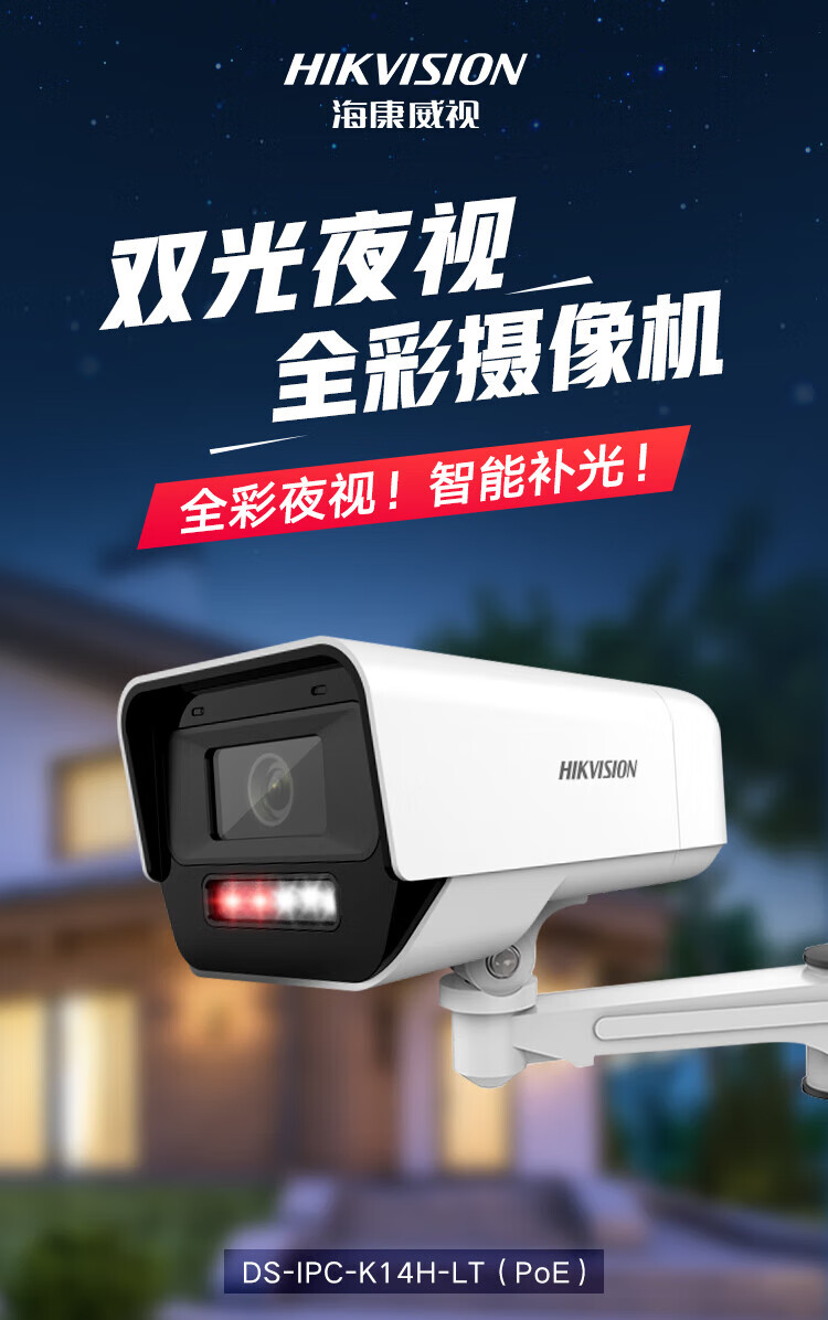 HIKVISION海康威视监控摄像头400万2K高清POE网线供电全彩夜视室内室外IP66可对讲移动检测K14H-LT 4MM
