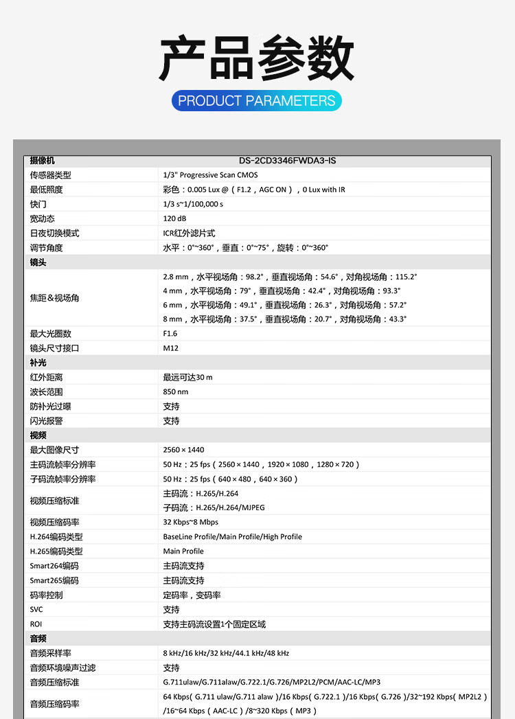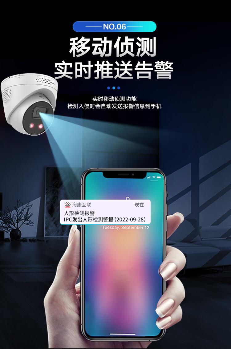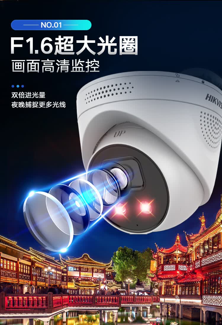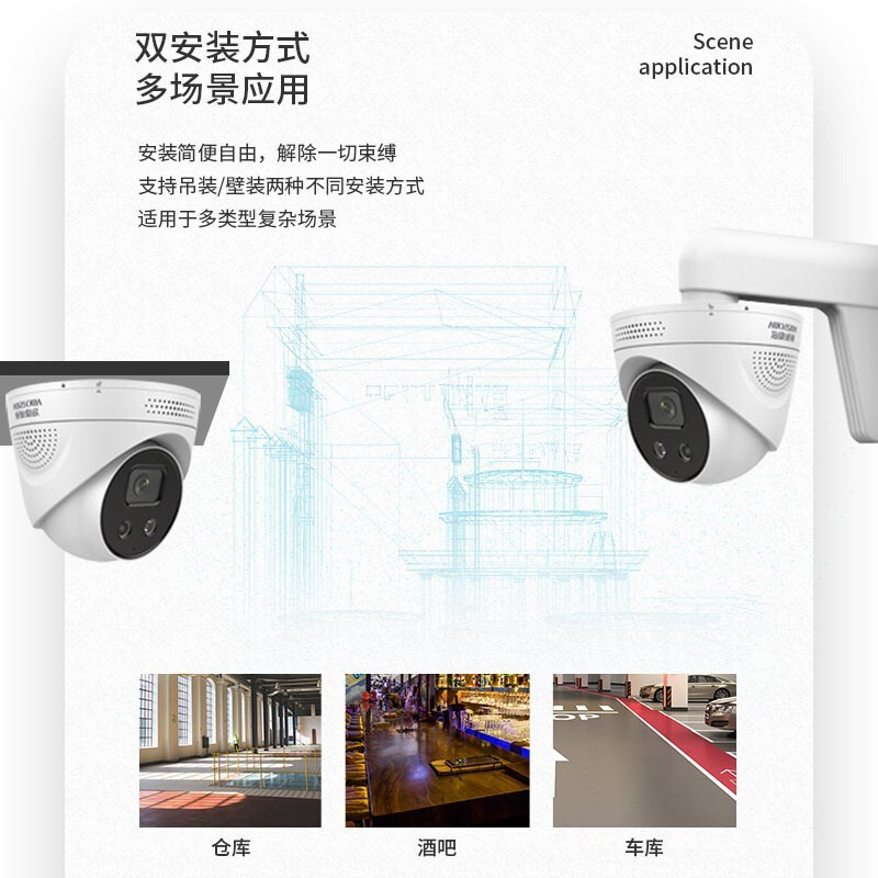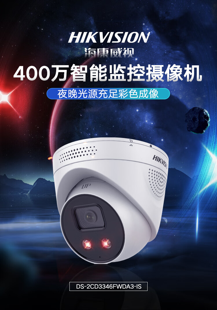 海康威视监控摄像头400万星光夜视智能警戒室内室外红外夜视音频报警网线供电3346FWDA3-IS 2.8mm