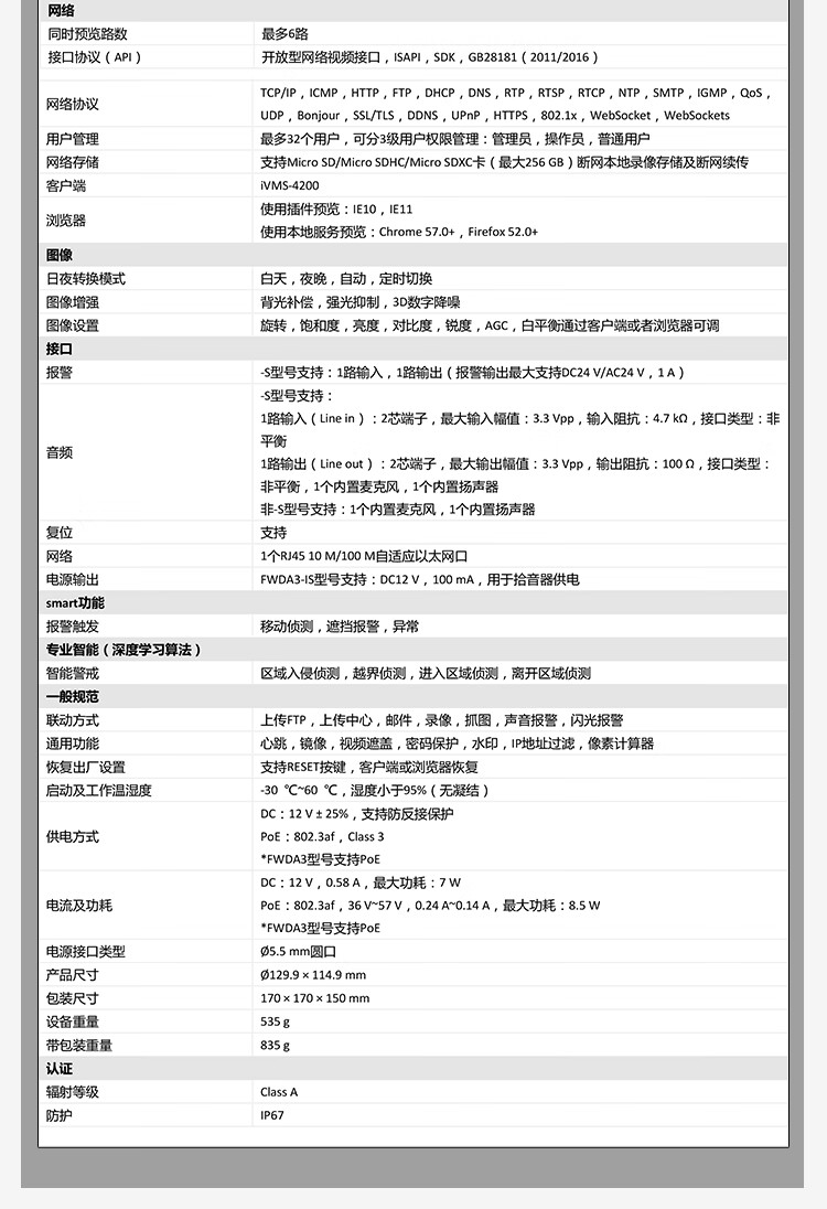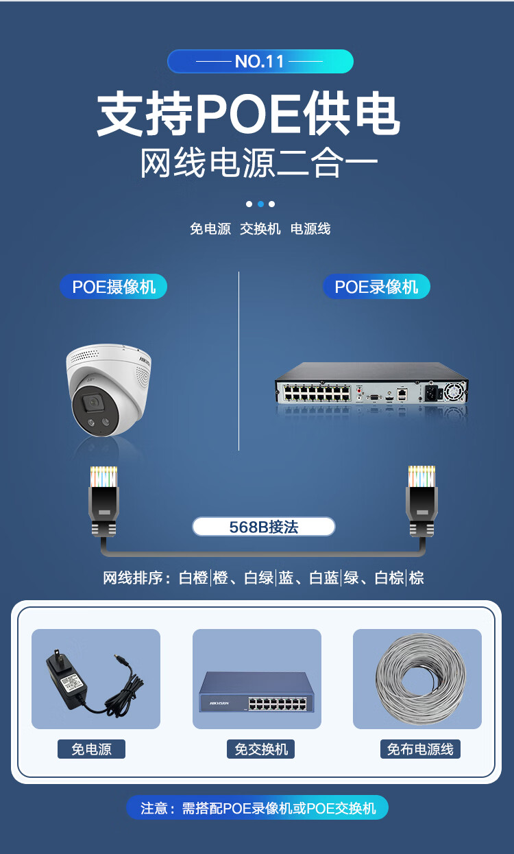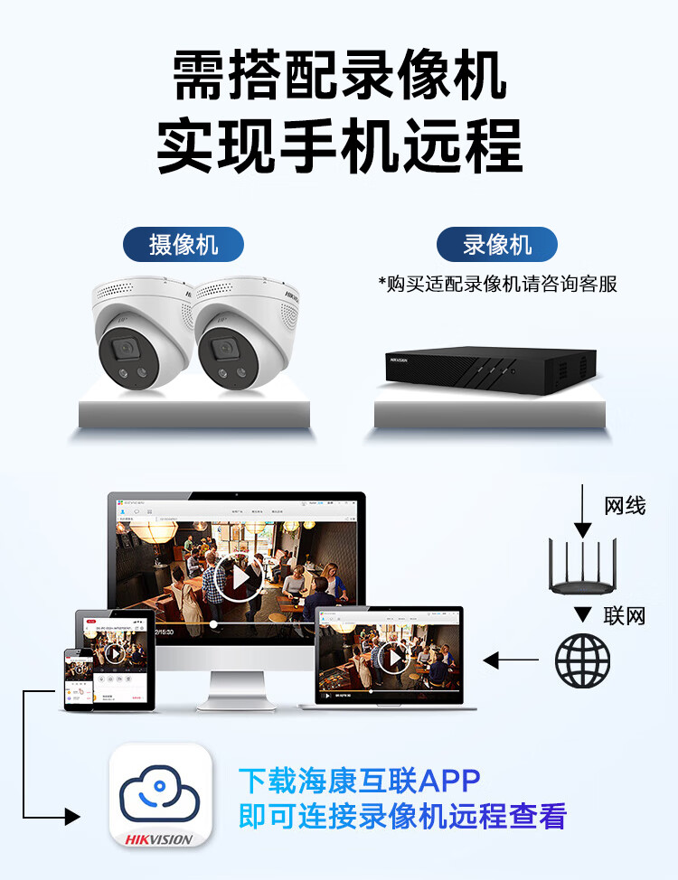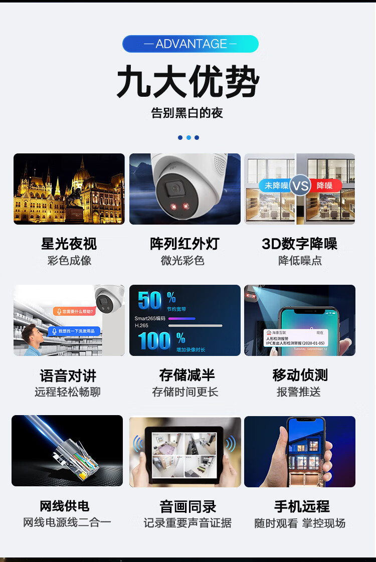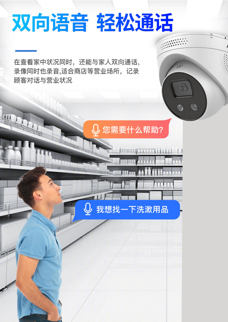 海康威视监控摄像头400万星光夜视智能警戒室内室外红外夜视音频报警网线供电3346FWDA3-IS 2.8mm