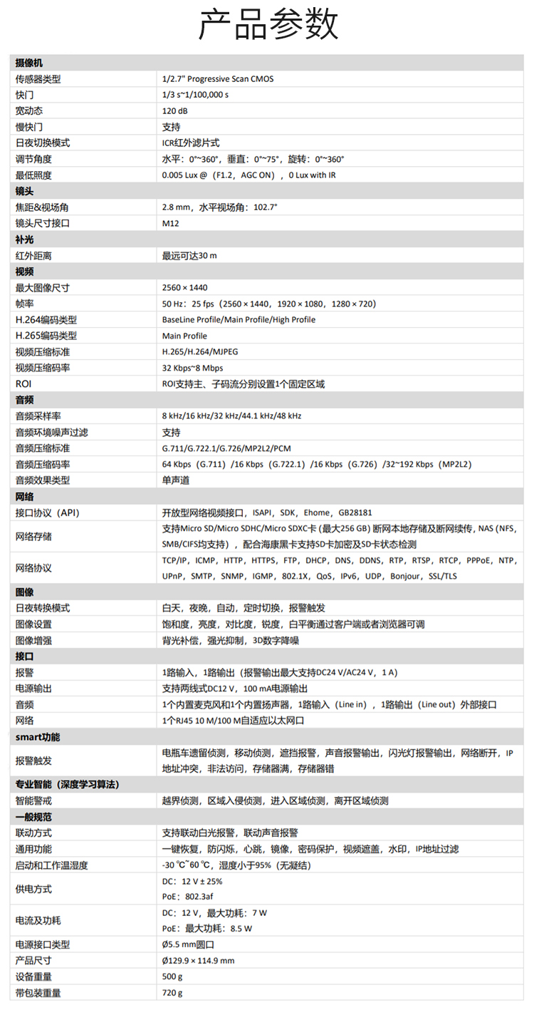 HIKVISION海康威视监控摄像头电梯警戒智能检测电动车检测专用400万语音对讲声光报警3346FWDA3-IS/DT