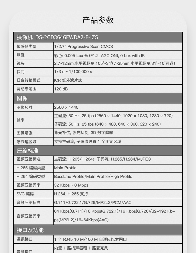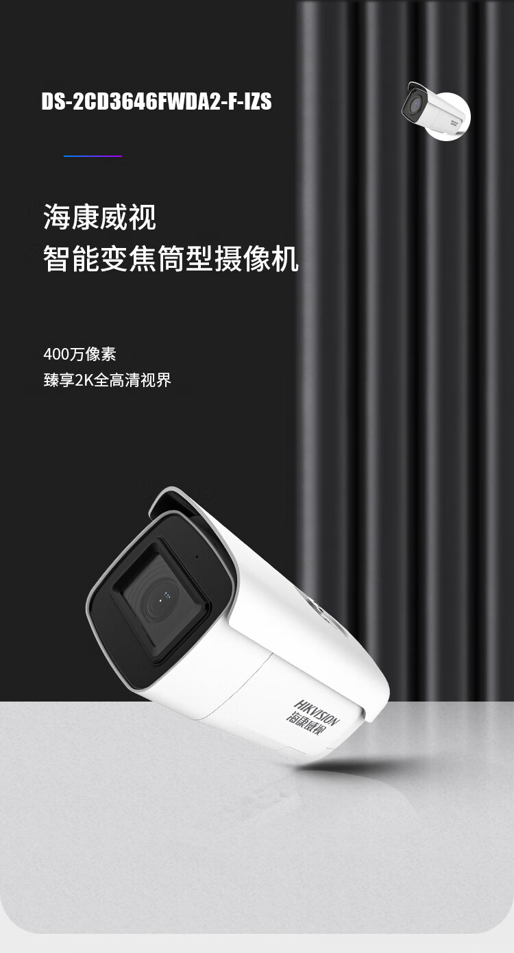 海康威视摄像头 400万智能警戒摄像机人脸抓拍室内室外支持变焦7-35mm DS-2CD3646FWDA2/F-IZS