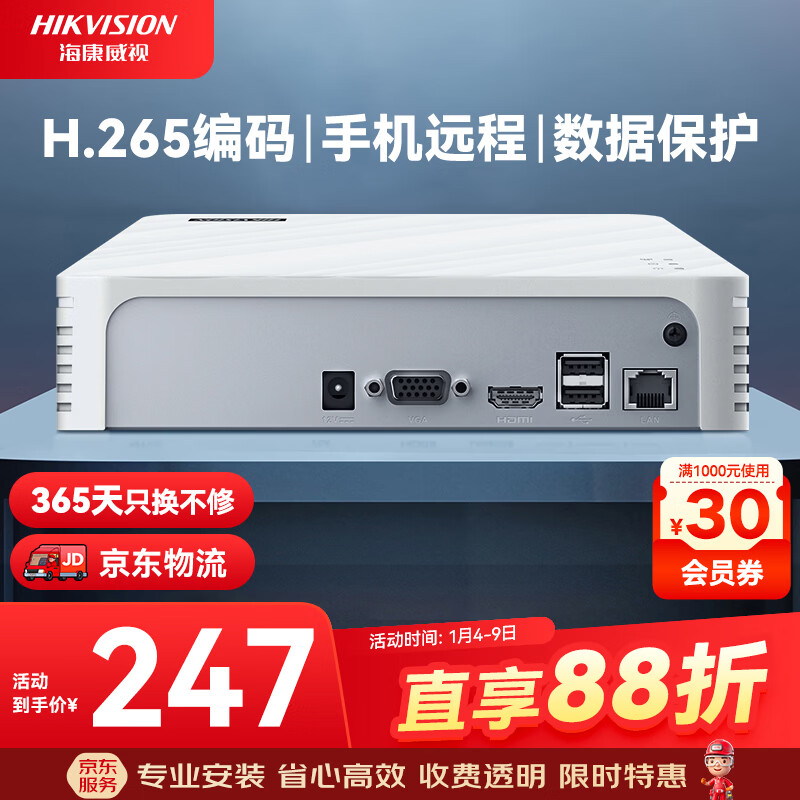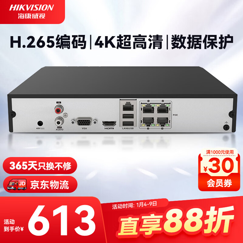 HIKVISION海康威视网络高清硬盘录像机监控主机4路NVR安防监控APP手机远程7104N-F1/4P
