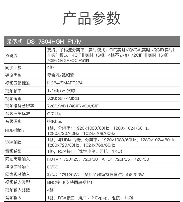 HIKVISION海康威视模拟录像机4路XVR同轴高清监控硬盘录像机四混合同轴高清智能回放DS-7804HGH-F1/M