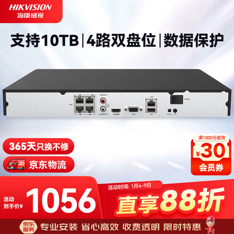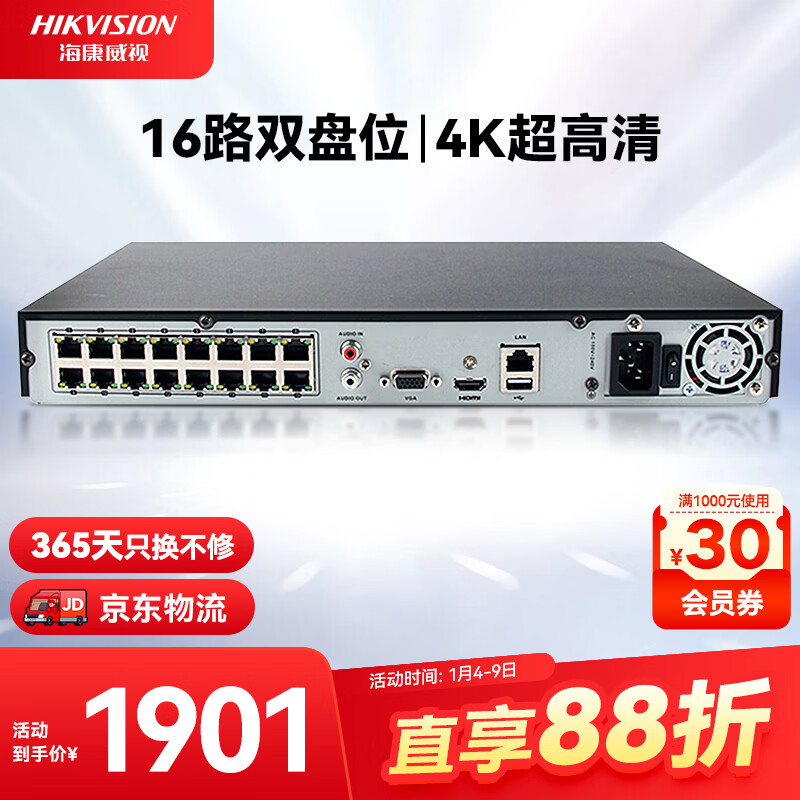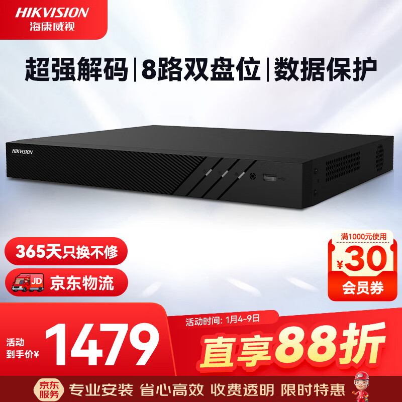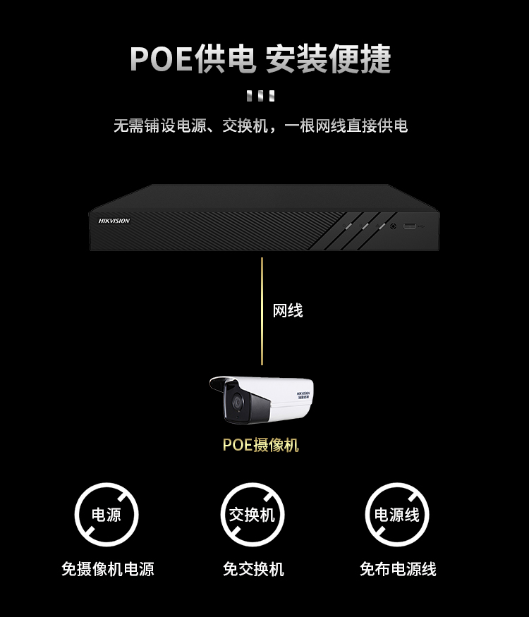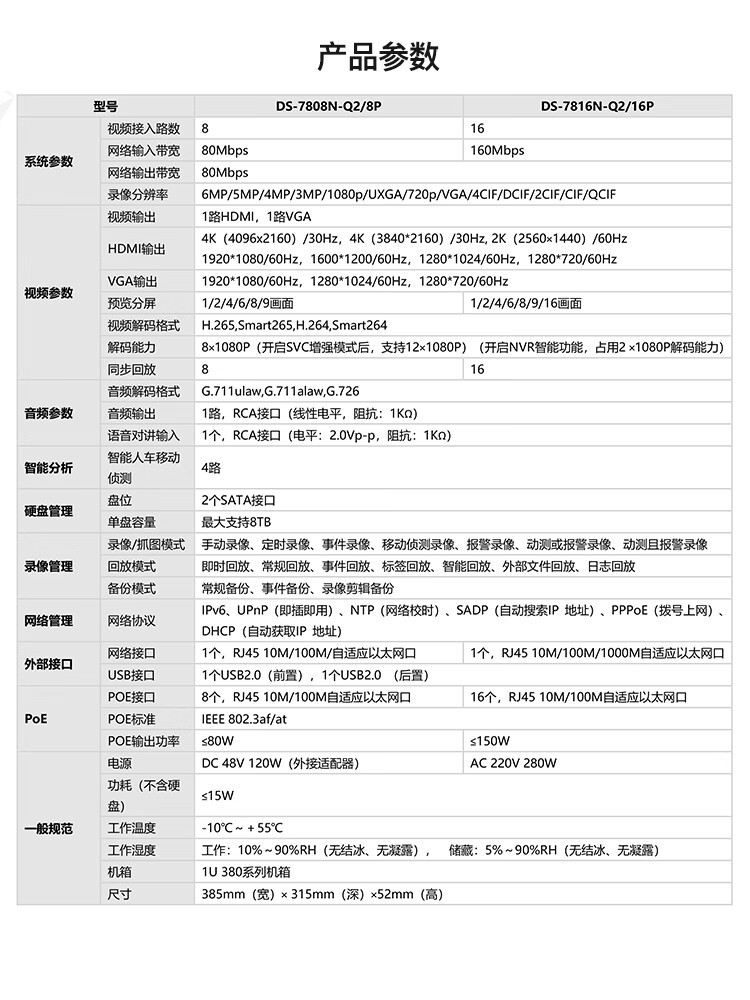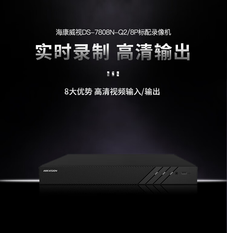HIKVISION海康威视网络监控硬盘录像机 8路2盘位poe网线供电NVR H.265编码DS-7808N-Q2/8P