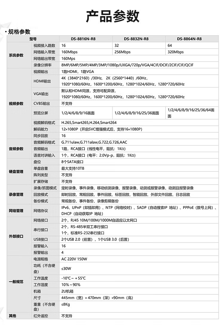 64路8盘位高性能监控录像机