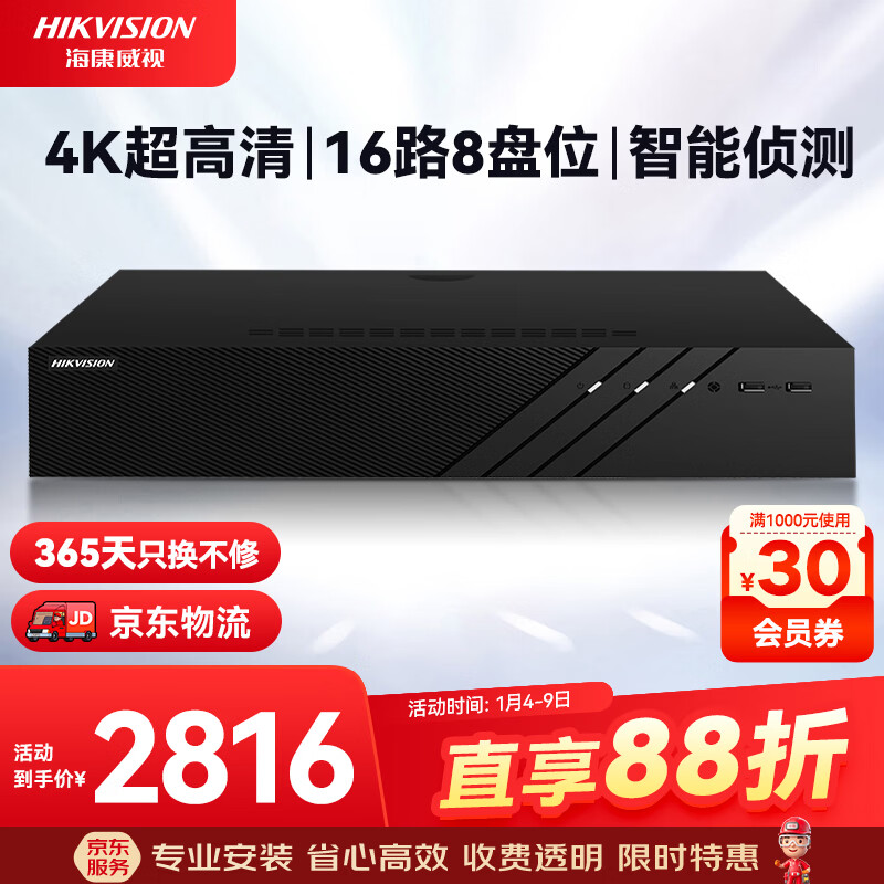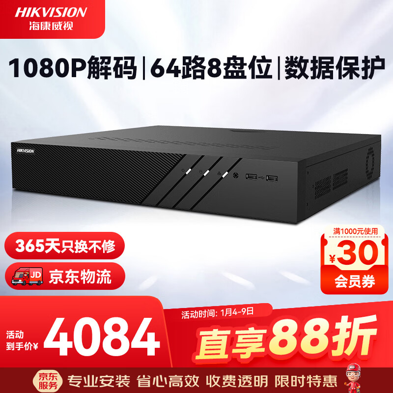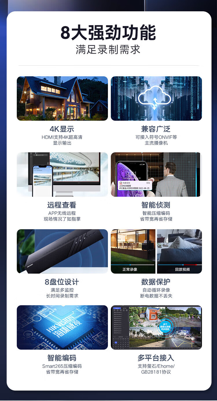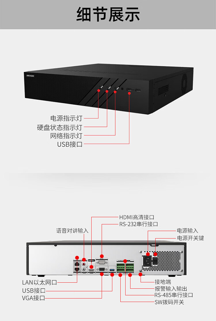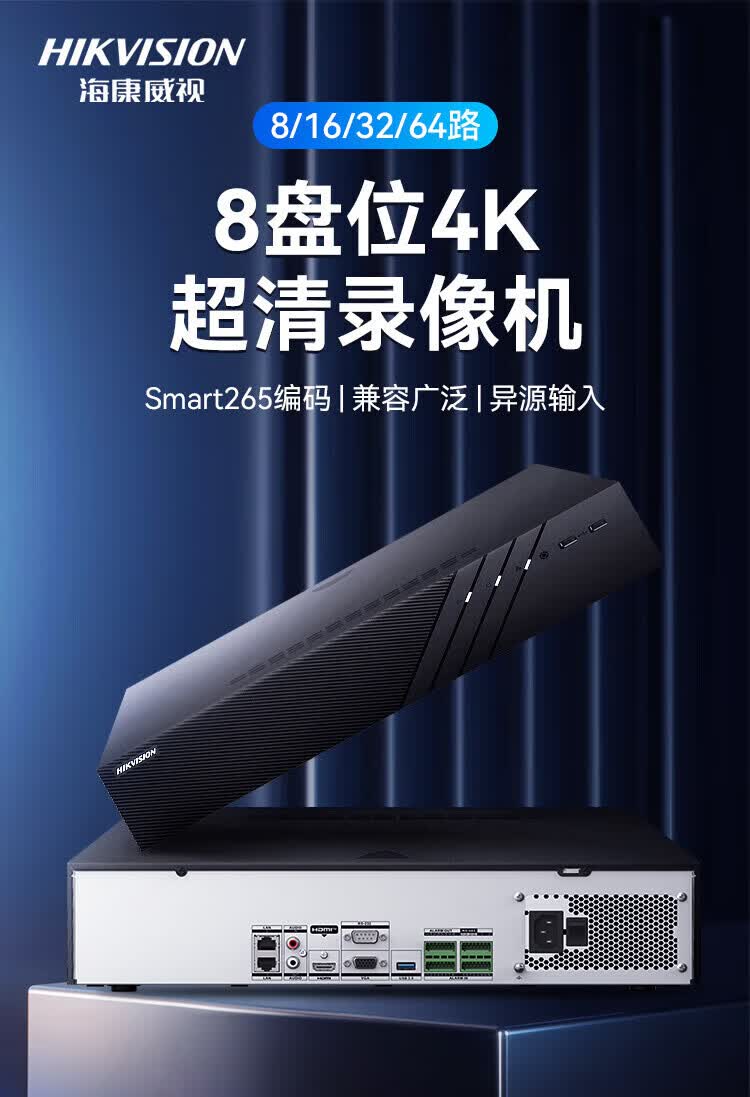 HIKVISION海康威视监控硬盘录像机32路8盘位兼容10T监控硬盘支持800万摄像网络监控主机 DS-8832N-R8