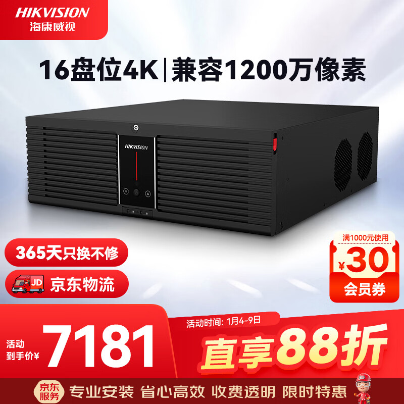 HIKVISION海康威视网络监控硬盘录像机32路16盘位4K高清NVR主机支持800万像素DS-8832N-R16/4K