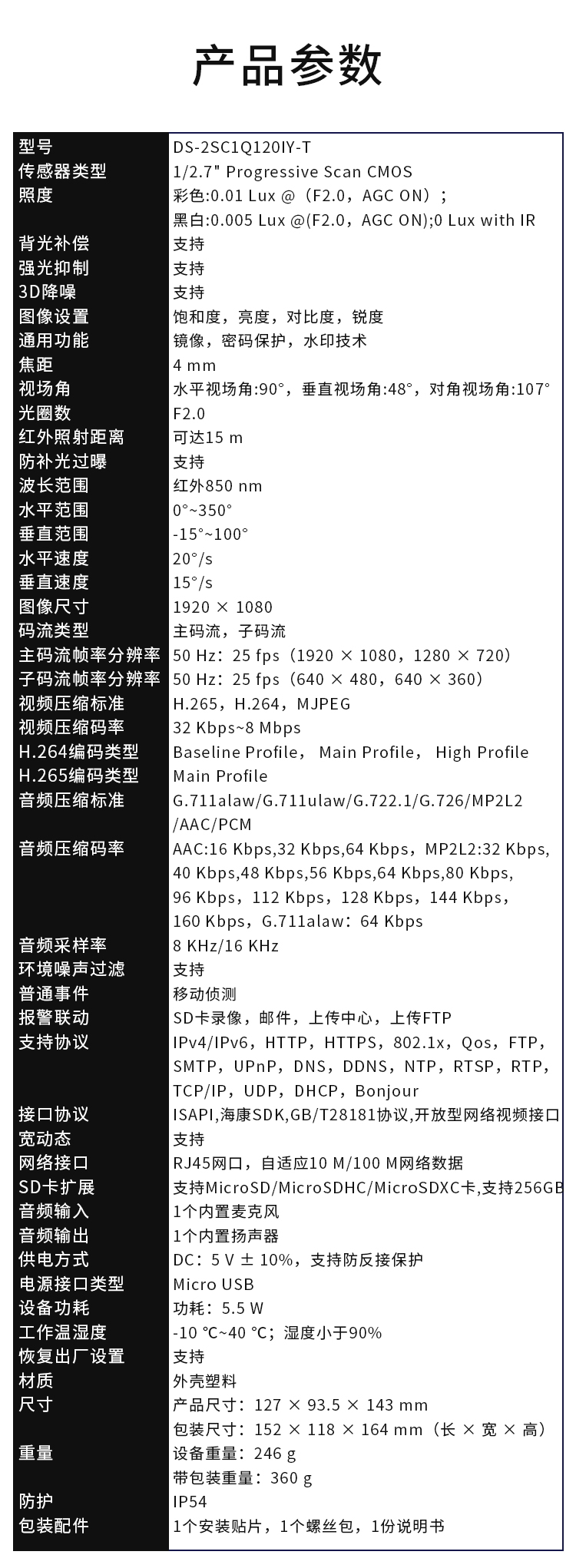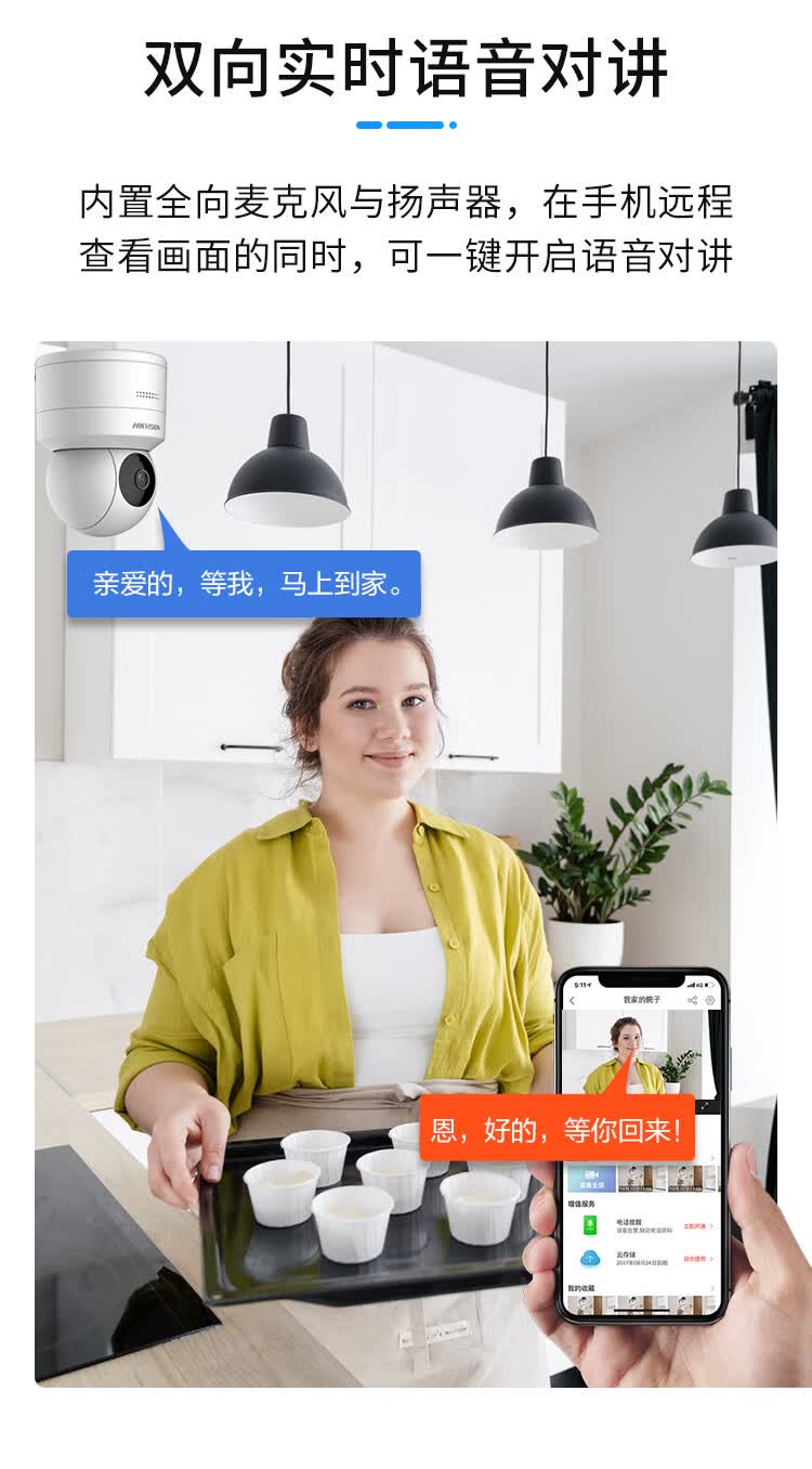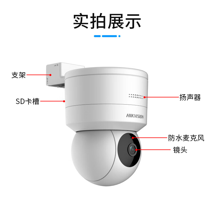 HIKVISION海康威视监控摄像头200万摄像机室内室外云台旋转球机语音对讲可插卡DS-2SC1Q120IY-TE