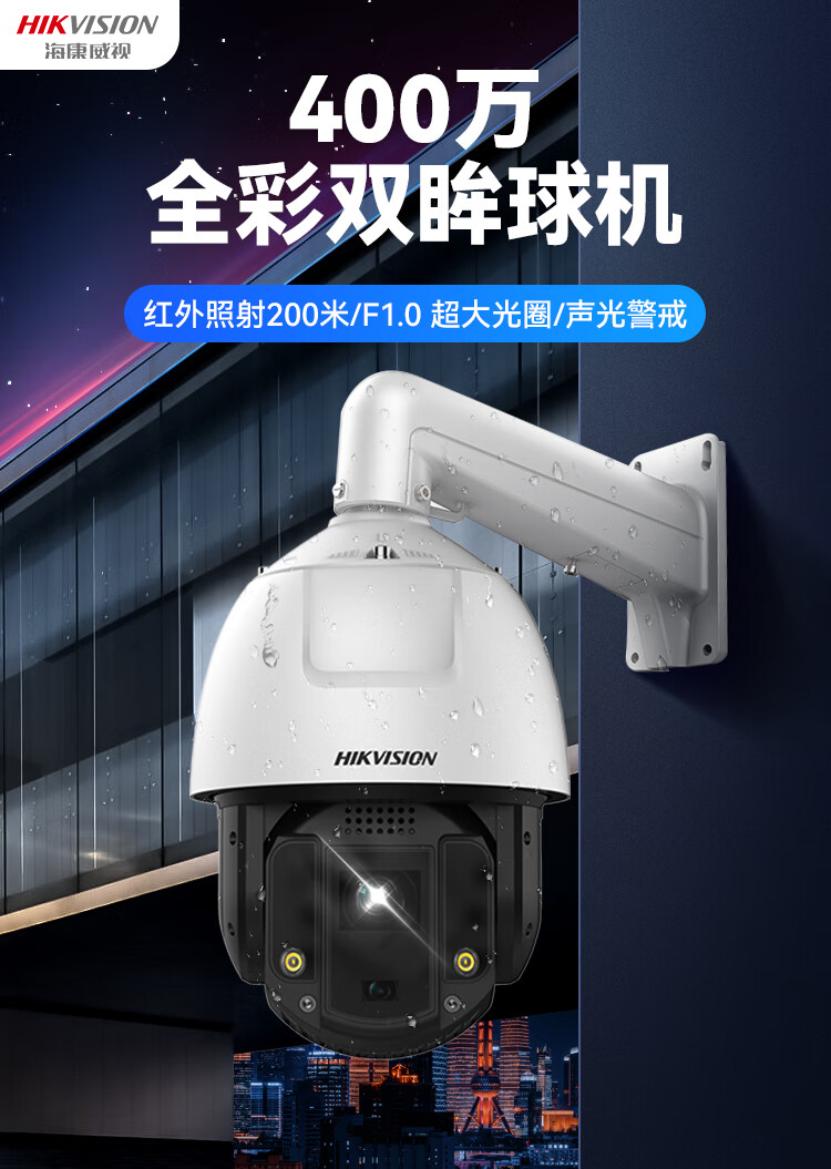 HIKVISION海康威视监控器摄像头400万2K高清臻全彩双眸旋转抓拍摄像机智能警戒变焦球机iDS-2DC7S420MW-AB