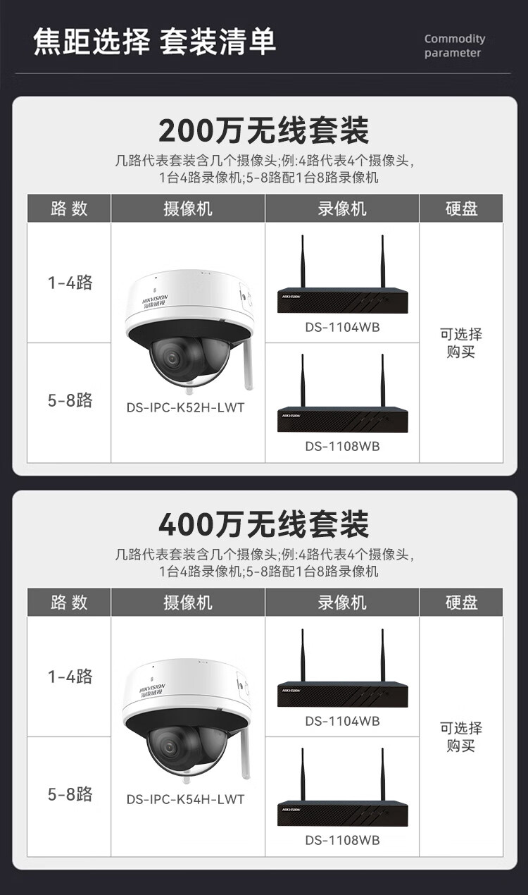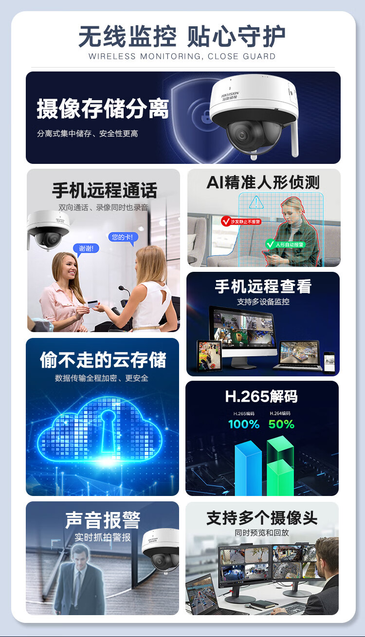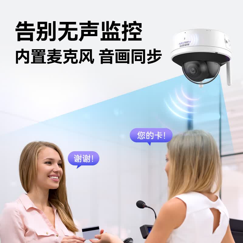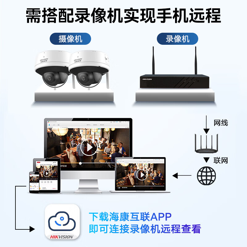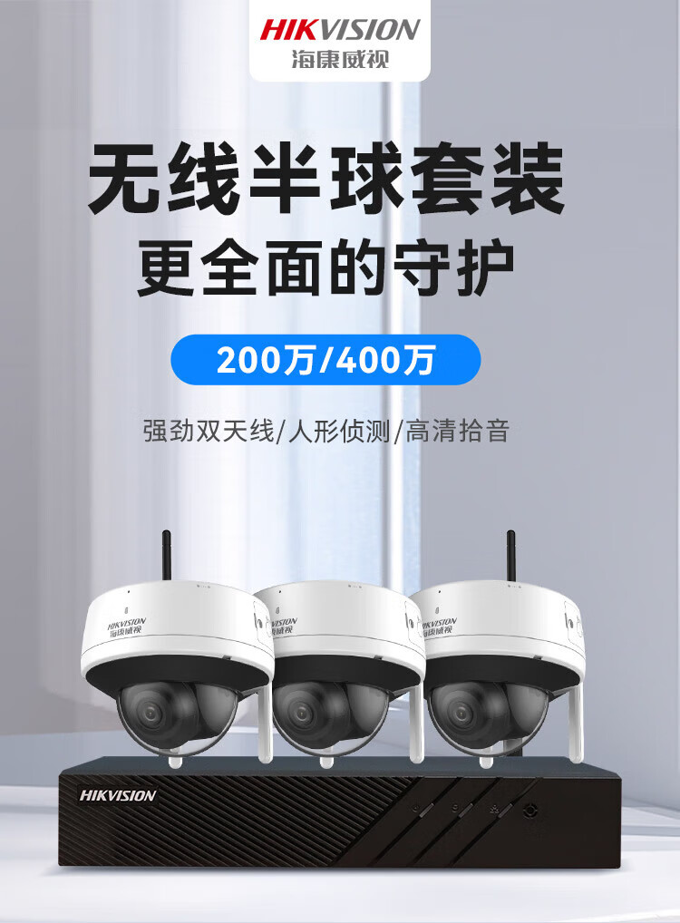 HIKVISION海康威视监控摄像头套装4路2T400万超高清监控器摄像机无线WIFI室内手机远程语音对讲安防探头