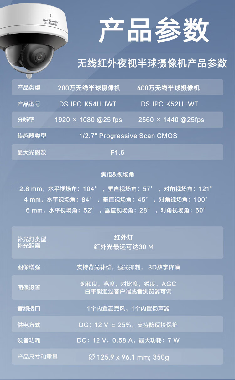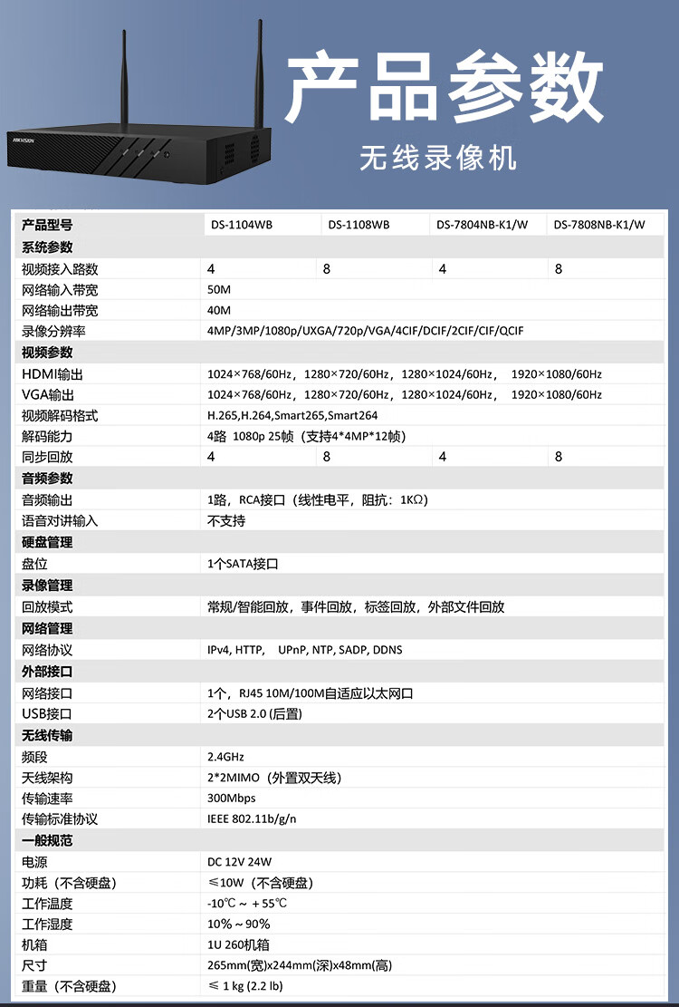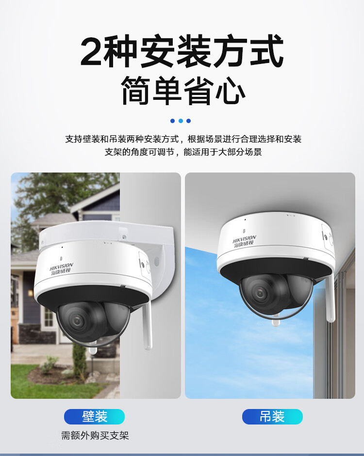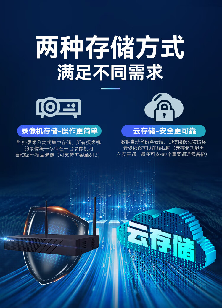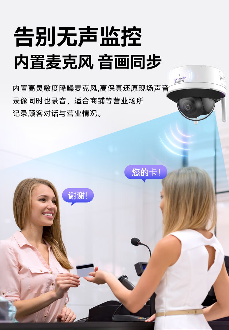 HIKVISION海康威视监控摄像头套装4路2T400万超高清监控器摄像机无线WIFI室内手机远程语音对讲安防探头