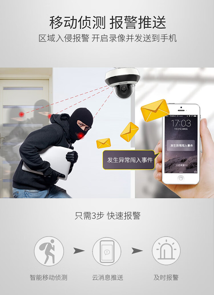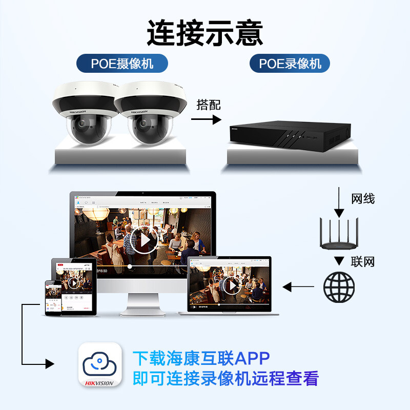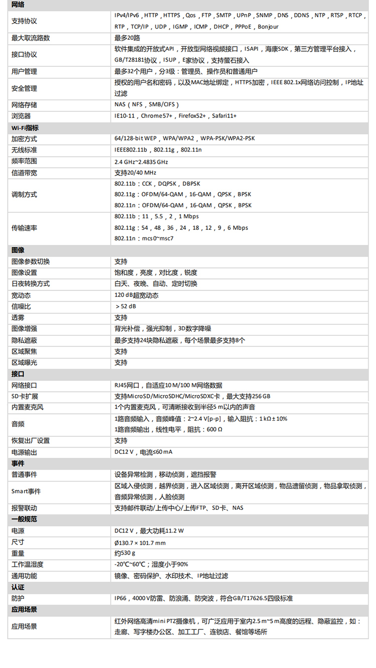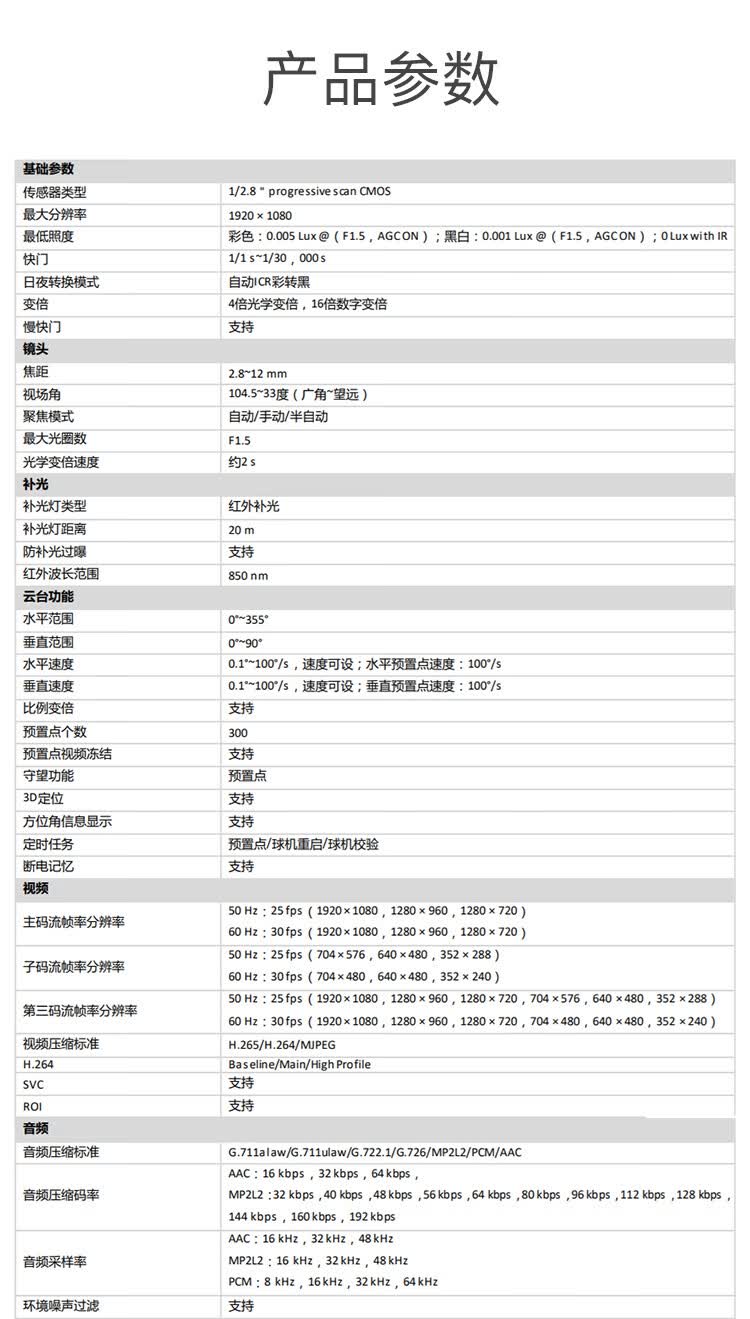 HIKVISION海康威视监控无线摄像头200万高清拾音wifi室内室外手机远程云台商场安防球机2DE2D20IW-DE3/W/XM