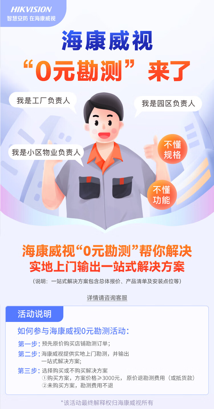 HIKVISION海康威视 安防监控摄像头安装 视频监控安装服务全国上门0元勘测服务