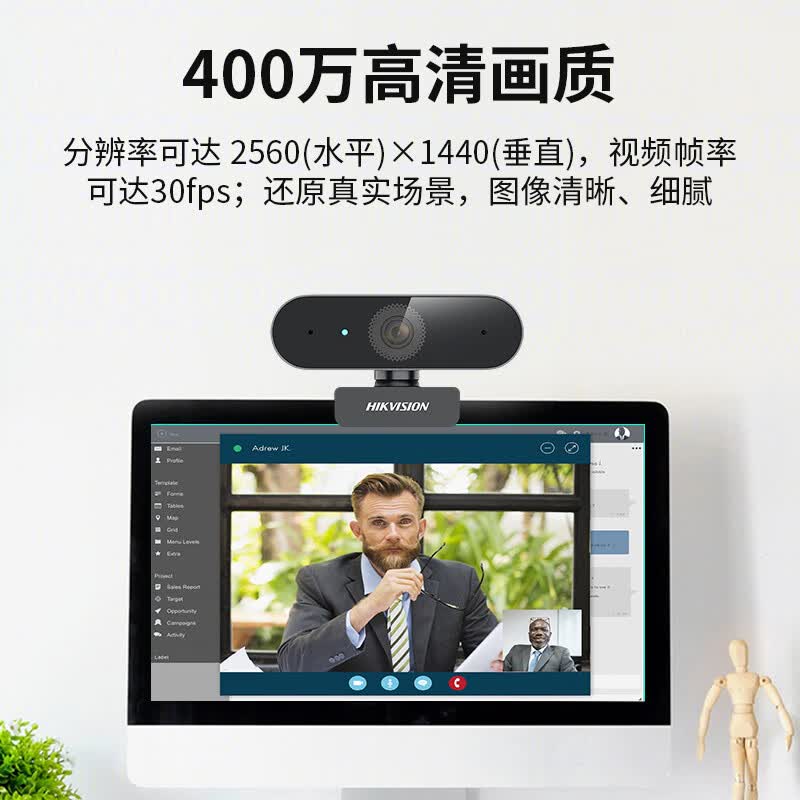 HIKVISION海康威视电脑摄像头2K高清直播带麦克风自动对焦台式机笔记本电脑外接家用视频会议办公带货E14a