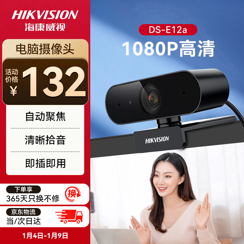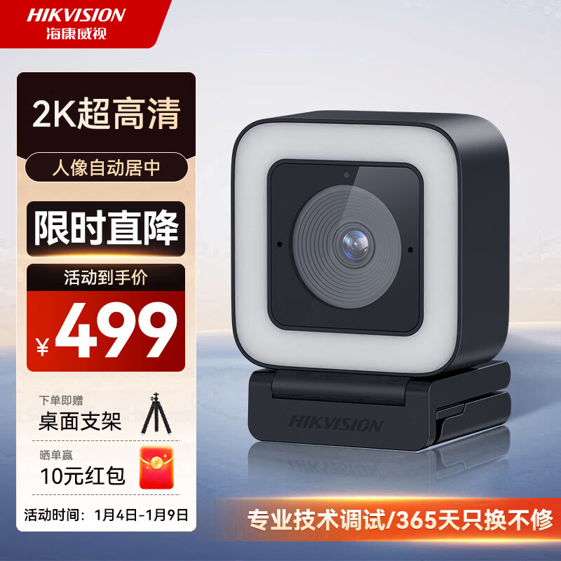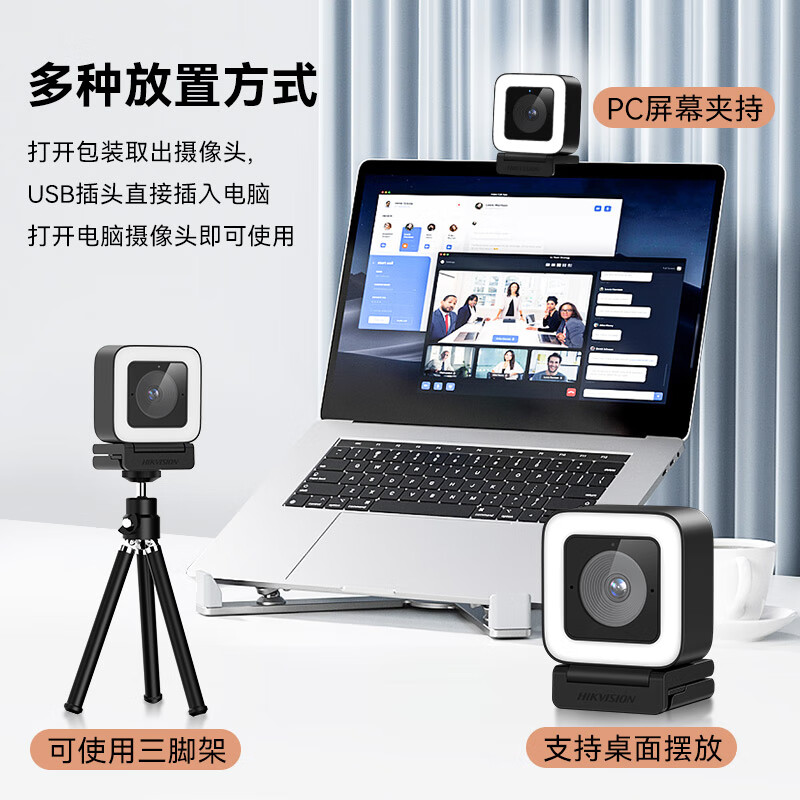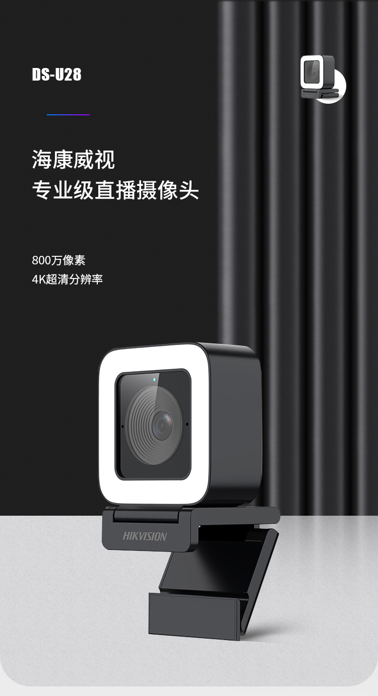 HIKVISION海康威视直播摄像头4K超清带麦克风自动对焦视频会议办公网课家用直播带货电脑摄像头U28