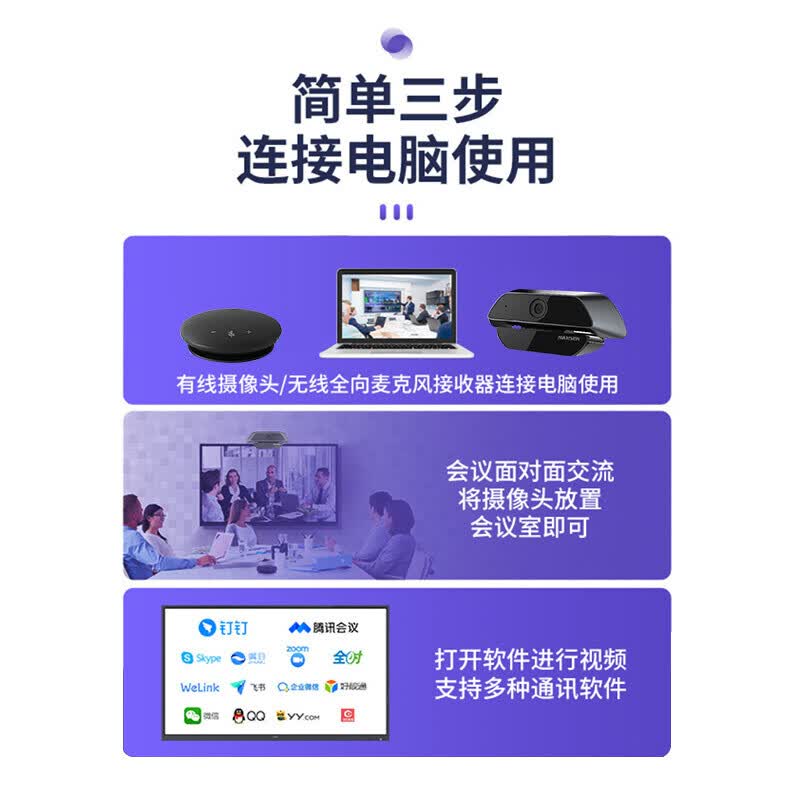 海康威视电脑摄像头小型会议双向通话套装200万高清USB免驱蓝牙USB充电全向拾音扬声麦克风65VA300B
