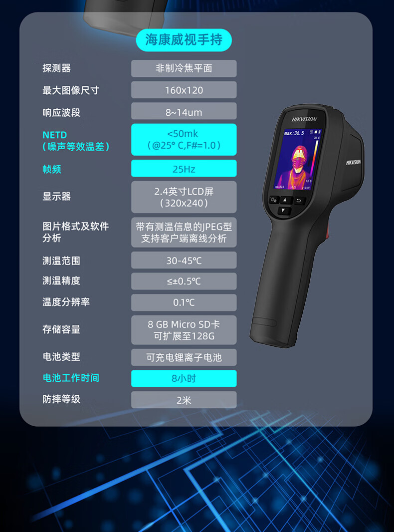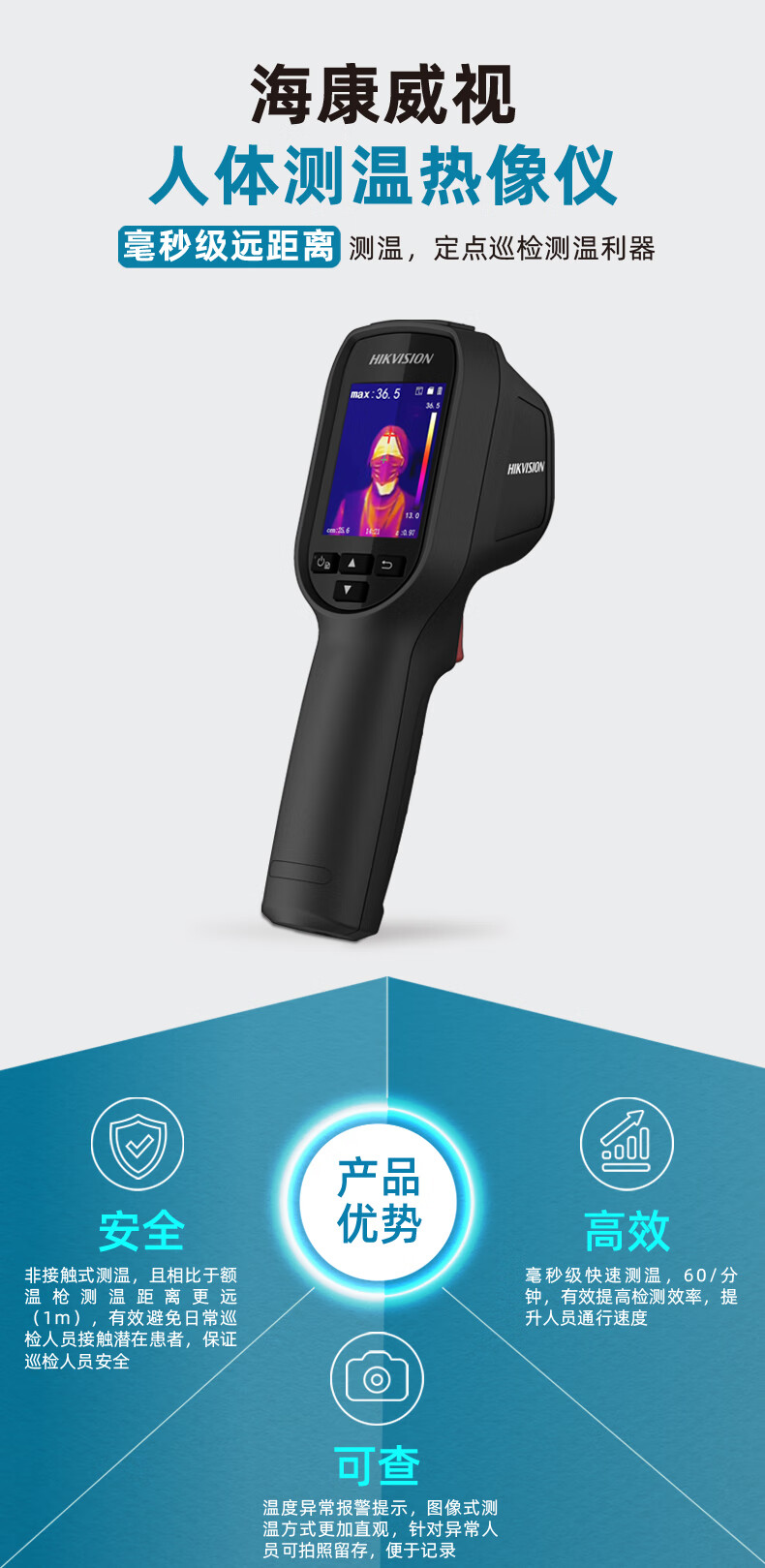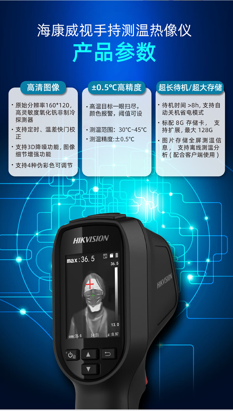 HIKVISION海康威视手持测温热成像仪额温枪红外测温枪人体体温测量高精度可视发热提醒 TBC-3117-3/U