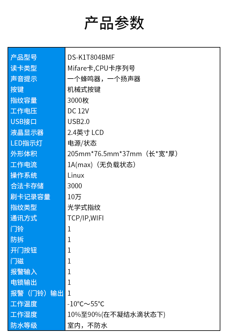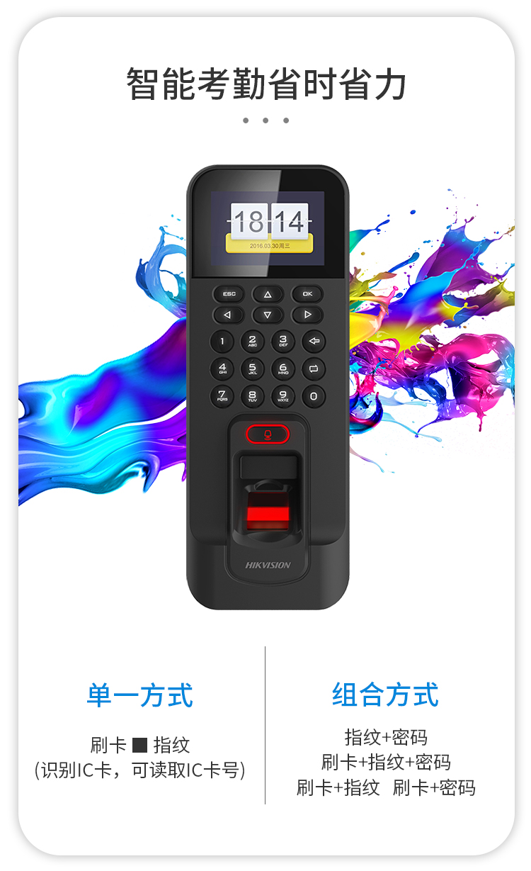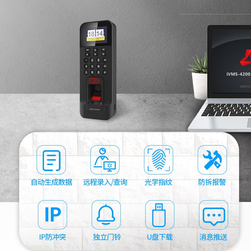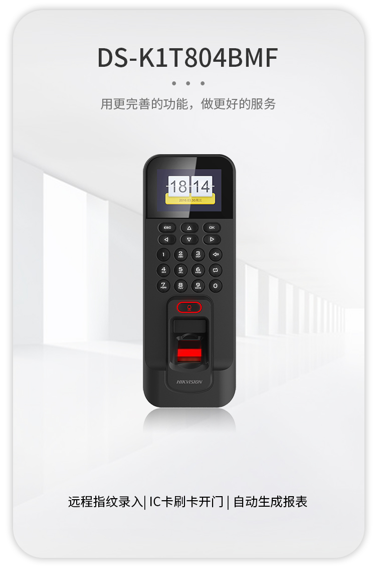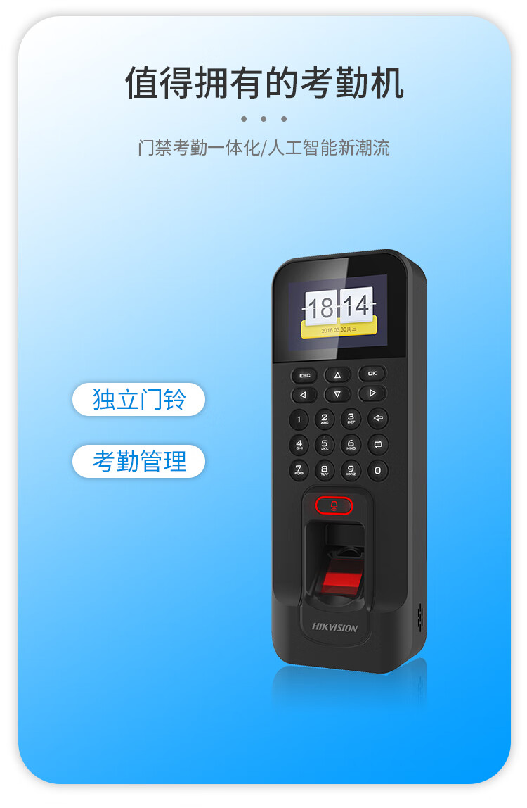 HIKVISION海康威视指纹门禁一体打卡考勤机K1T804BMF企业小区办公楼工厂公寓门禁系统开门中控机联网版
