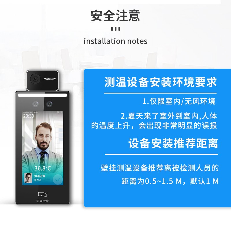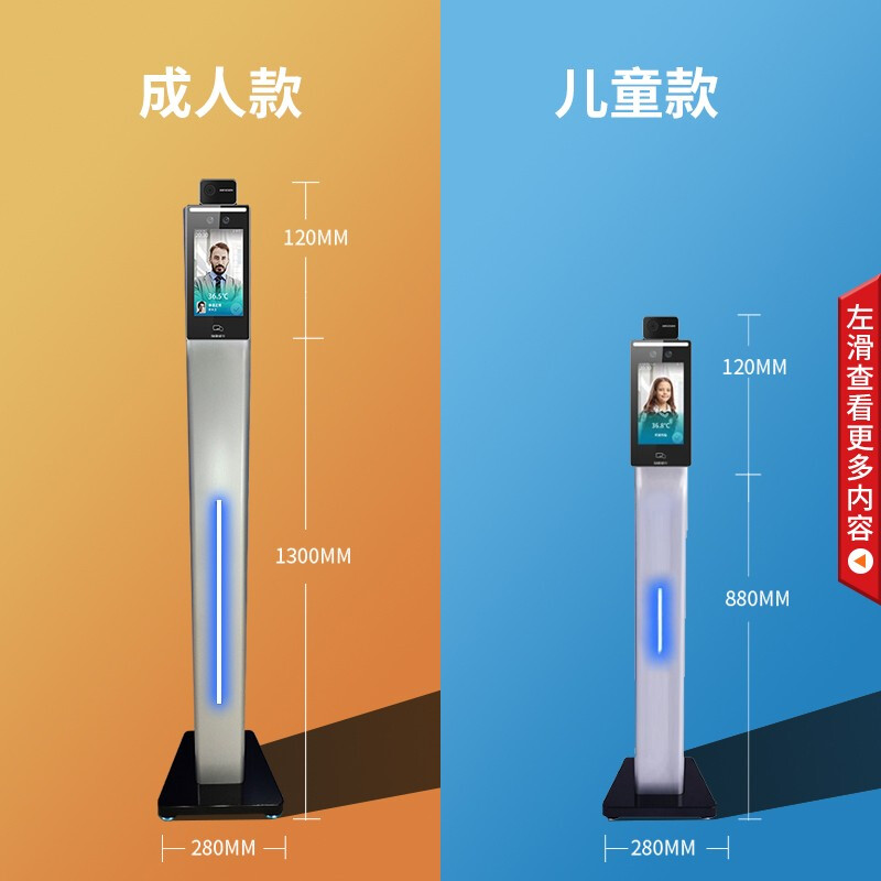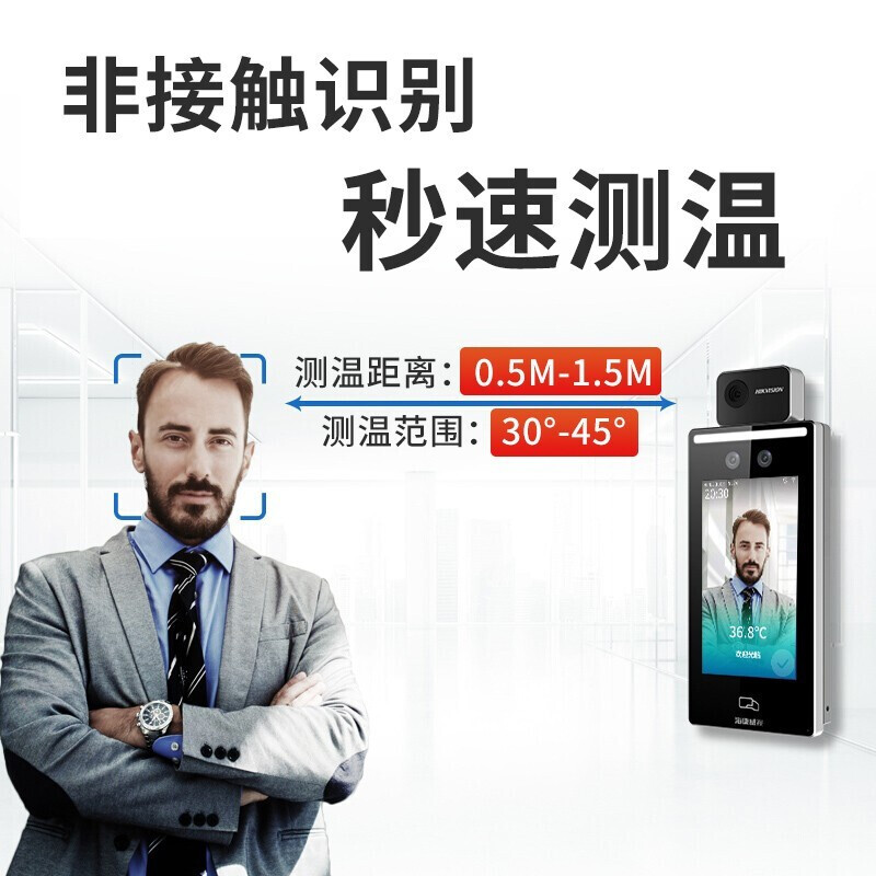 海康威视考勤机F70人脸口罩识别测温一体打卡机斜面款1.3米套装企业医院商场餐厅学校测温仪门禁