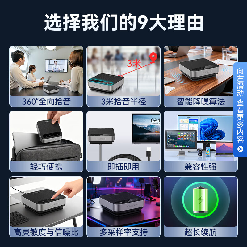 HIKVISION海康威视全向麦克风USB免驱无线蓝牙3米拾音360°收音桌面扬声器10~20㎡视频会议解决方案 升级款