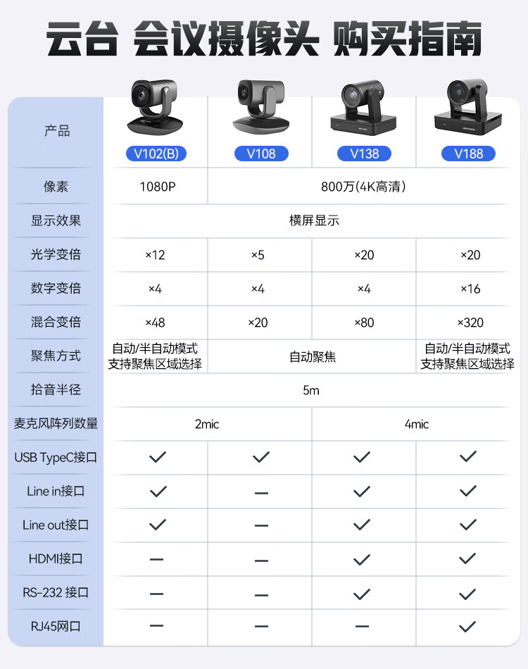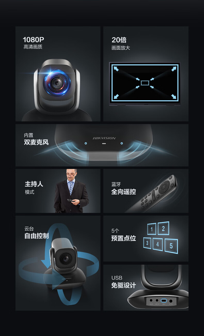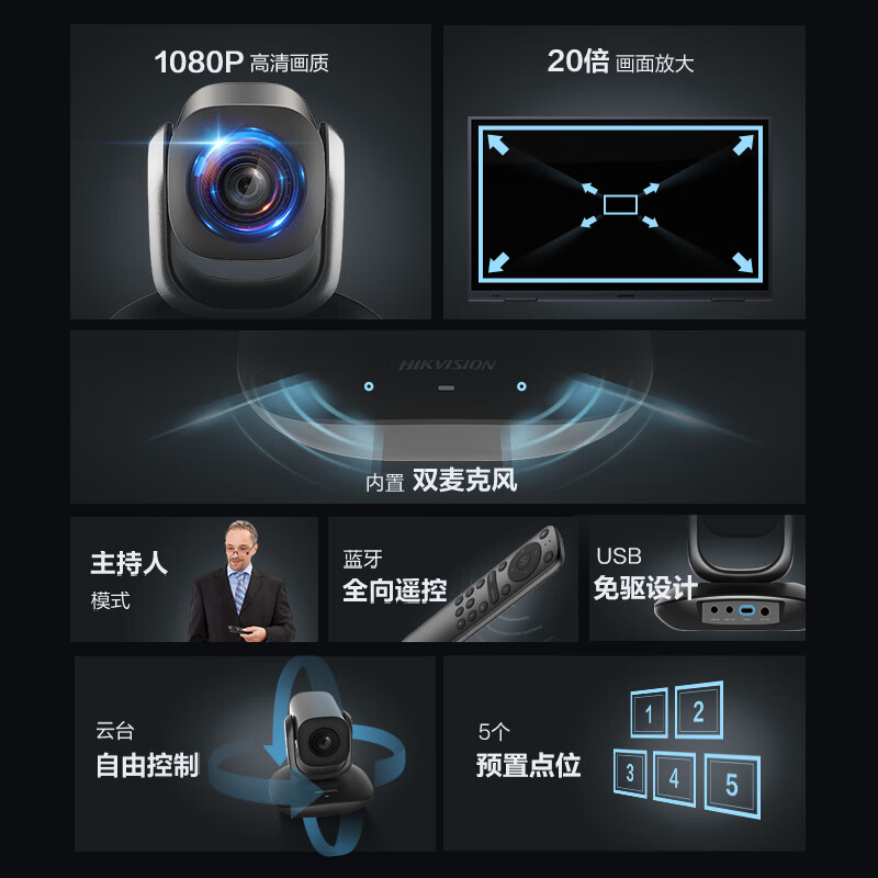 HIKVISION海康威视视频会议设备全套电脑摄像头套装自动变焦高清带麦克风扬声器直播无线会议系统解决方案