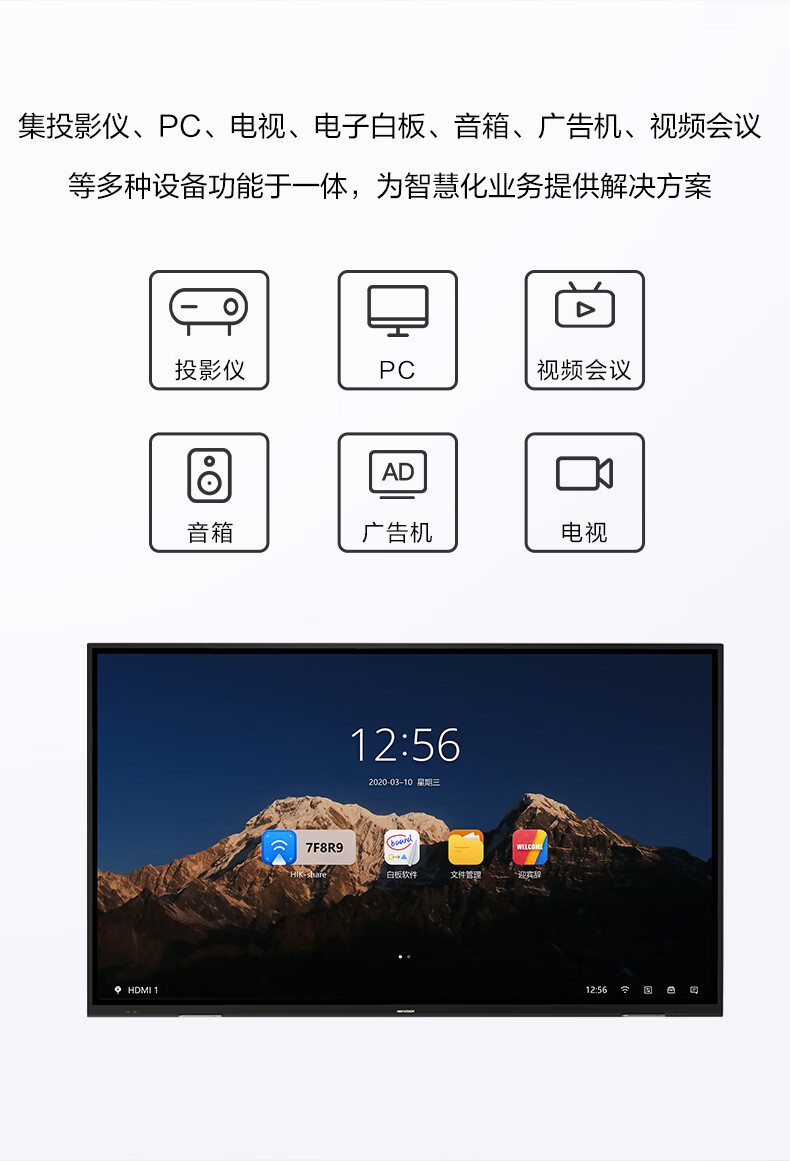 HIKVISION海康威视65英寸视频会议平板多媒体教学一体机经济套装触控电子黑板白板显示屏培训教育