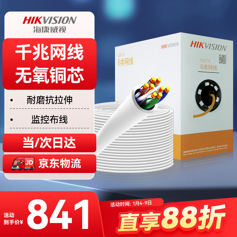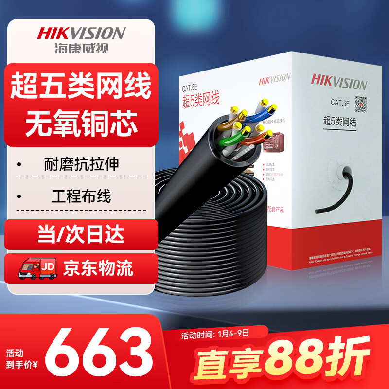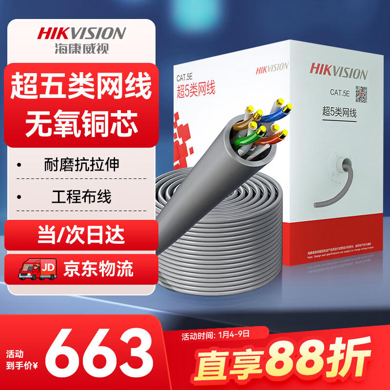 HIKVISION海康威视超五类网线工程级无氧铜箱线CAT5e类百兆网络过福禄克双绞线监控家装305米/箱 1LN5E-E/E