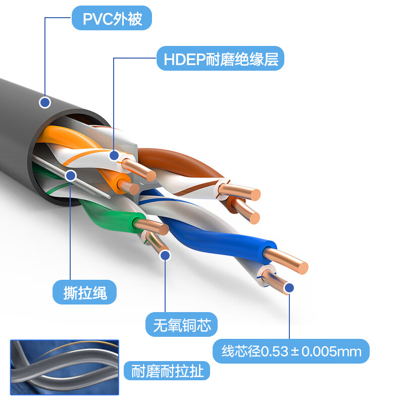 HIKVISION海康威视六类网线工程版CAT6类无氧铜线芯非屏蔽千兆家装网络布线监控箱线305米DS-1LN6UEC0