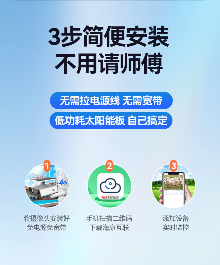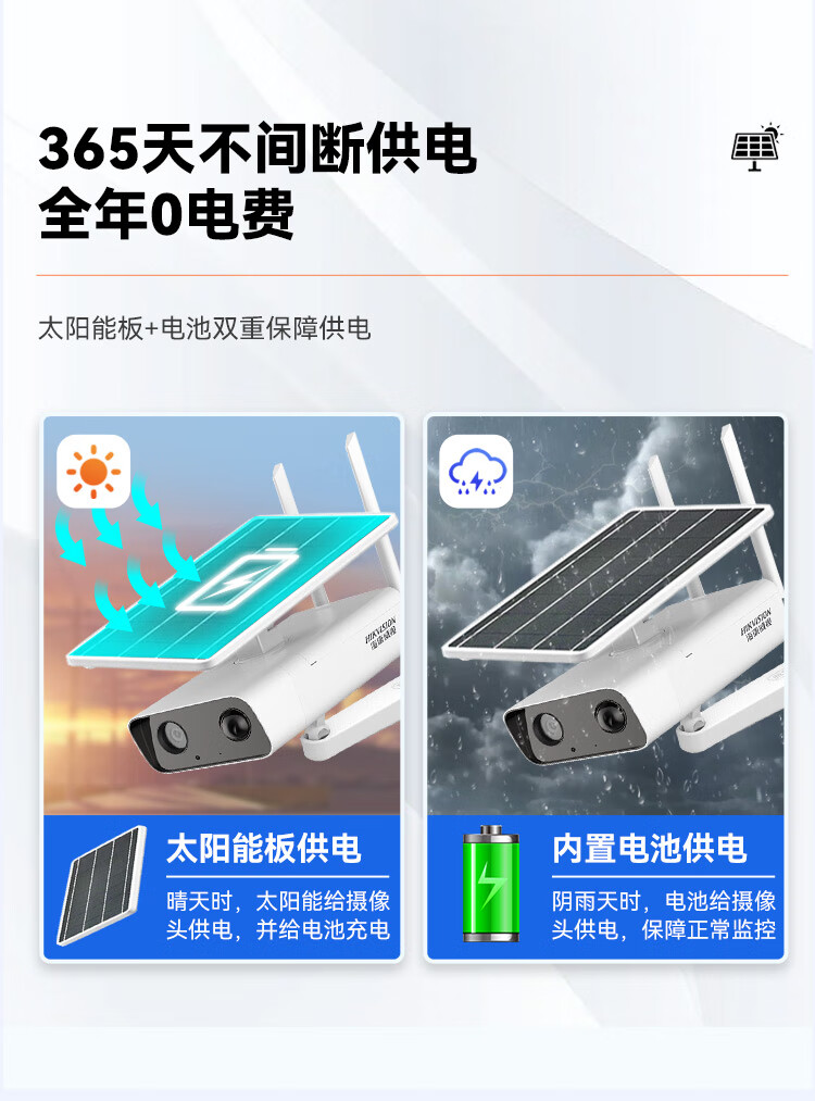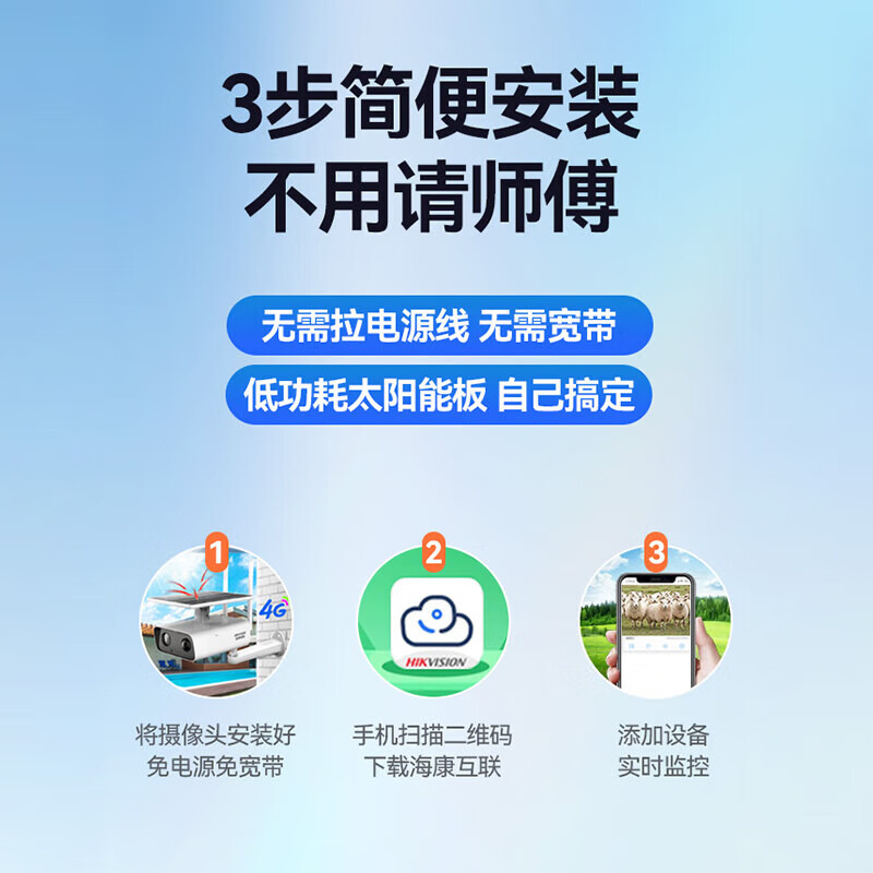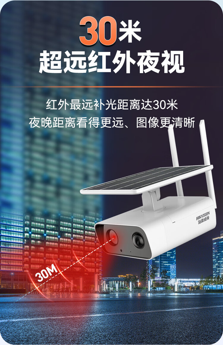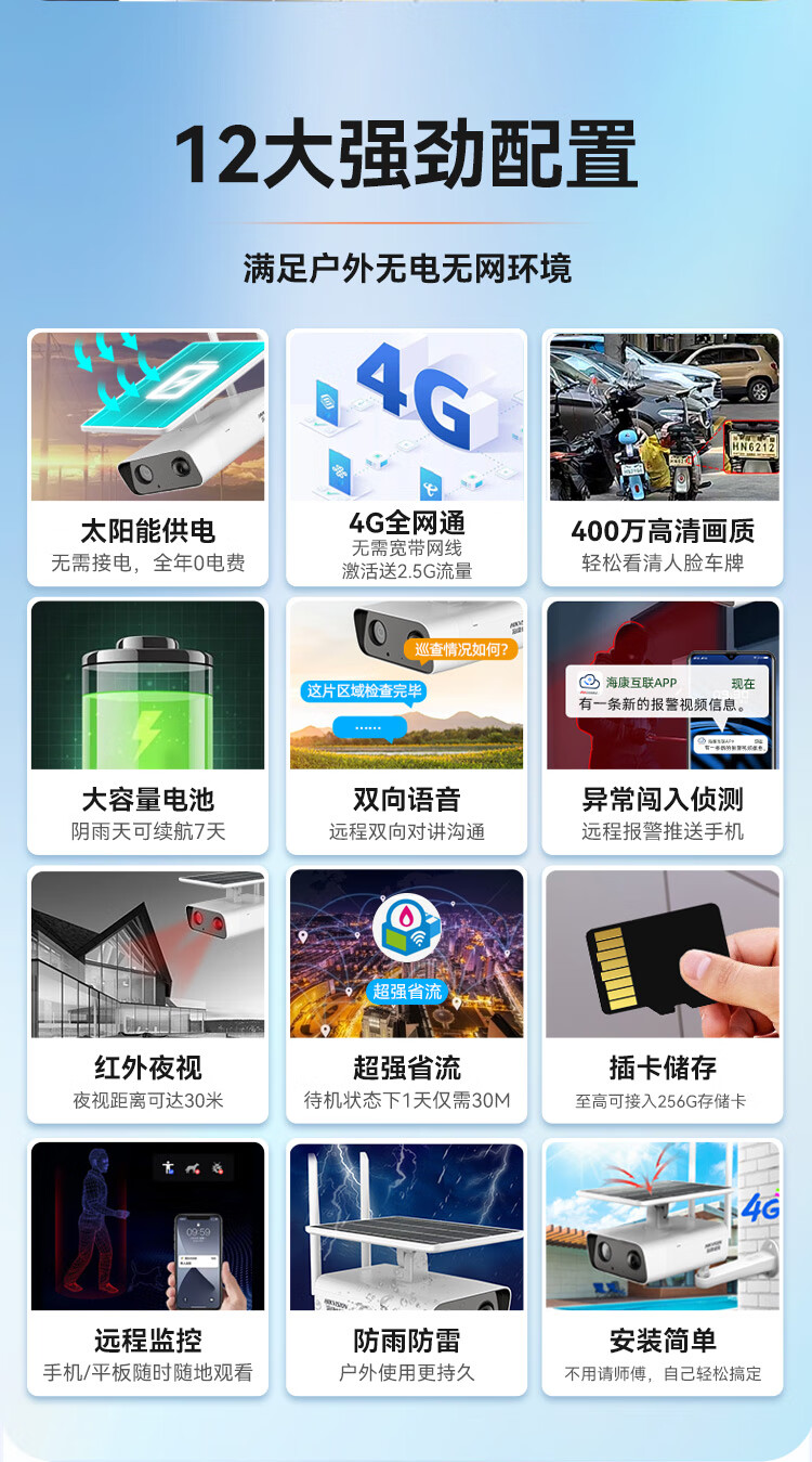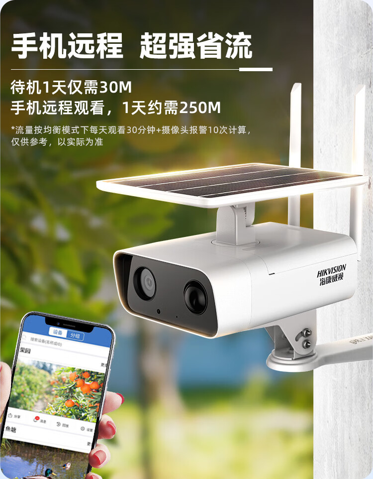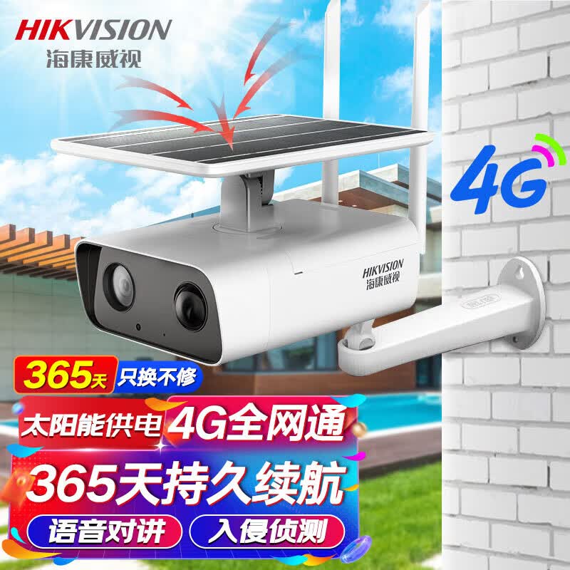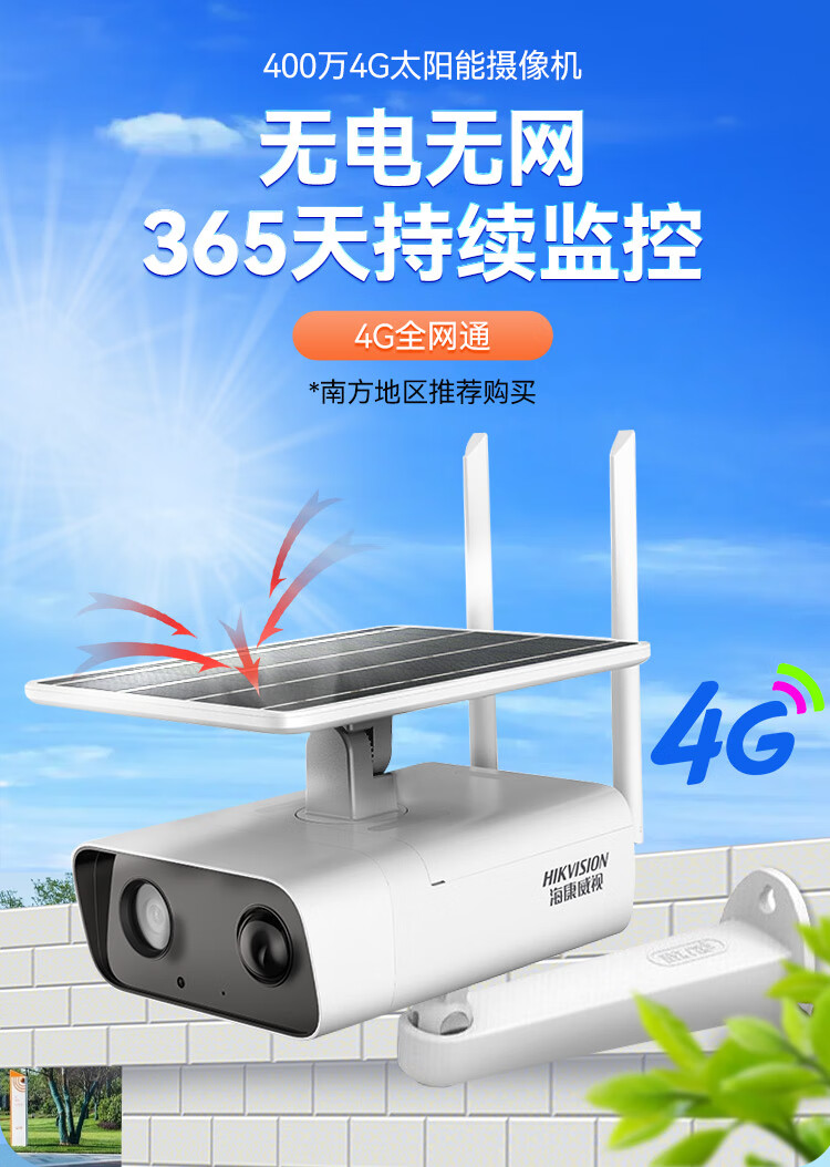 HIKVISION海康威视4G太阳能摄像头监控户外400万超高清无线家用室外无电无网手机远程2T46XM-IGLE/CL(4mm)