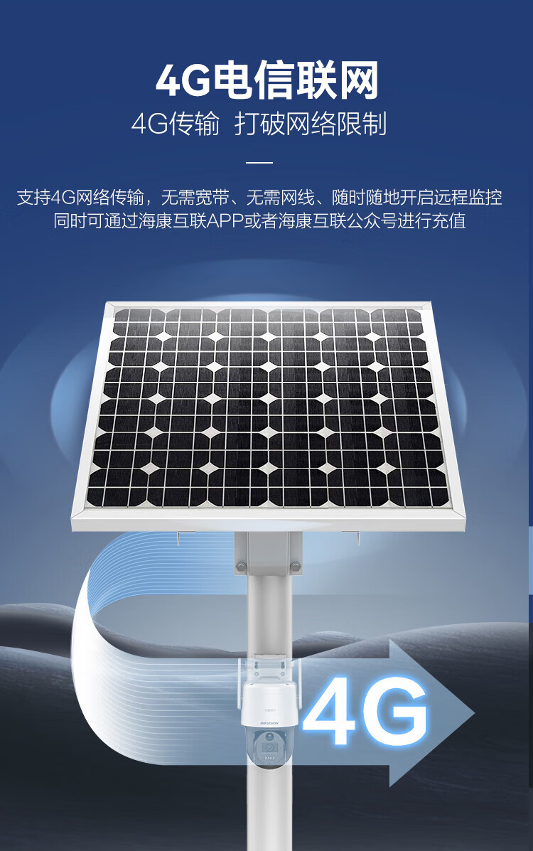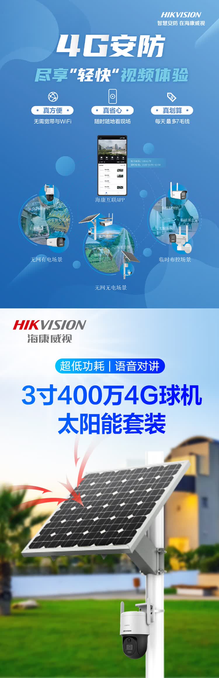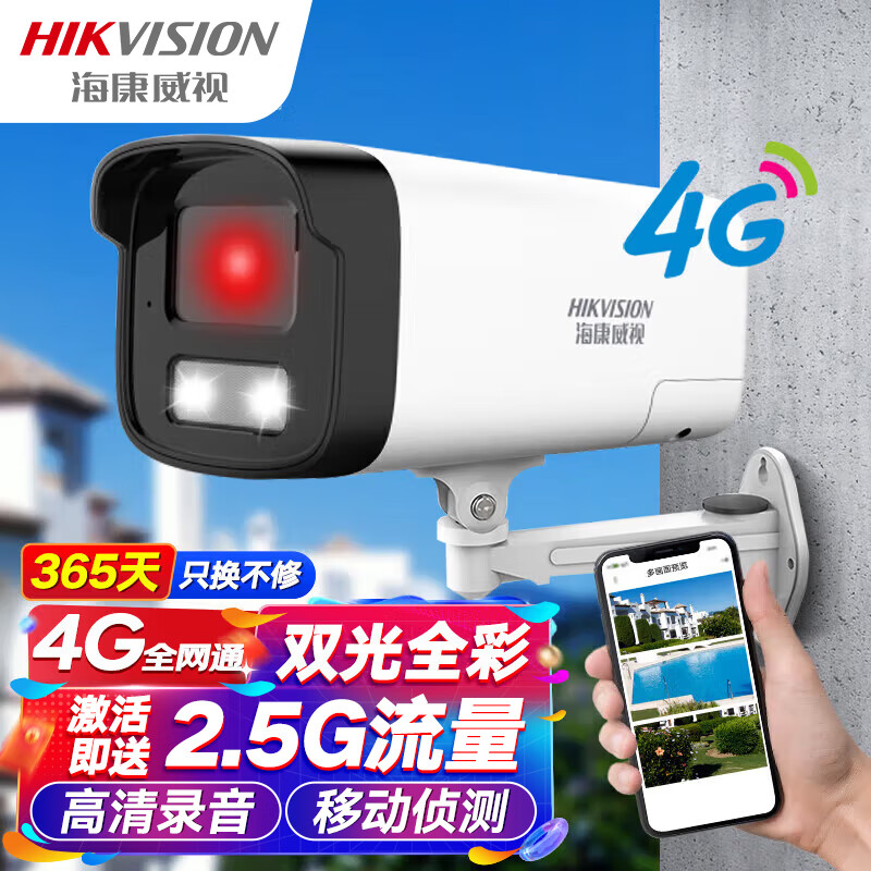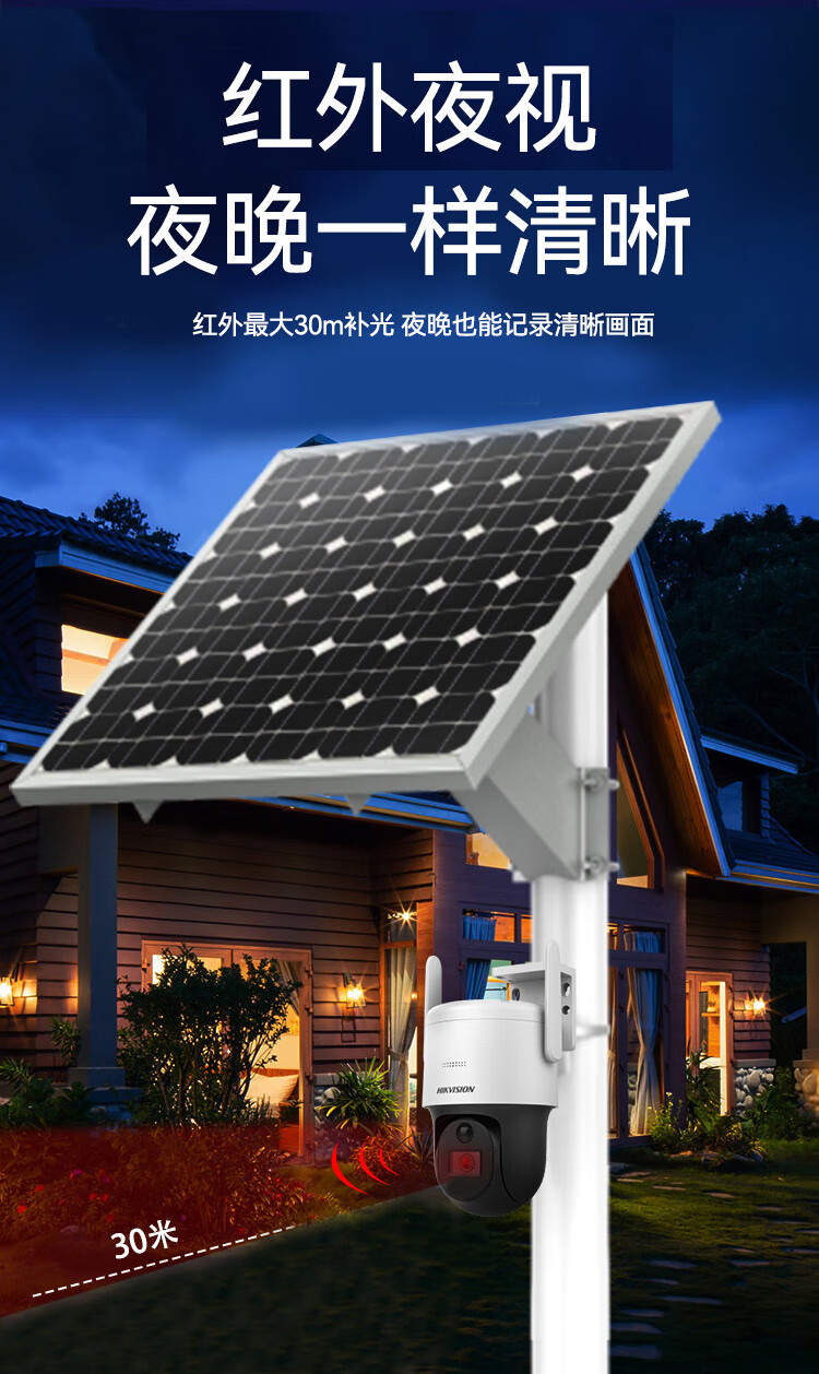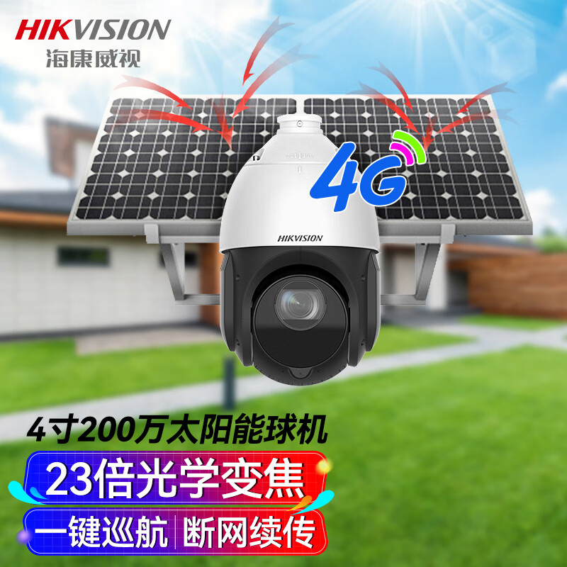 HIKVISION海康威视4G太阳能摄像头监控户外无线400万超高清球机360度旋转庭院室外手机远程可对话256G卡