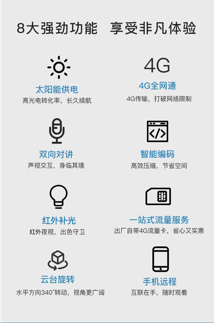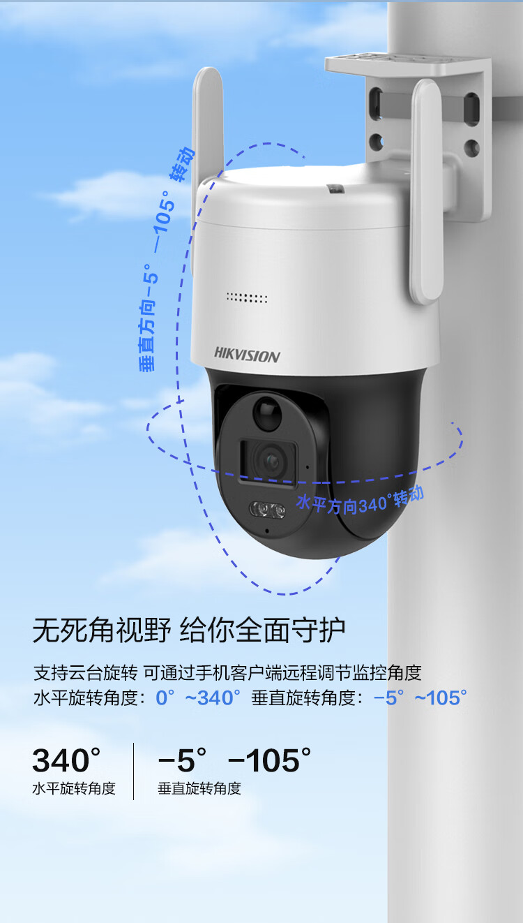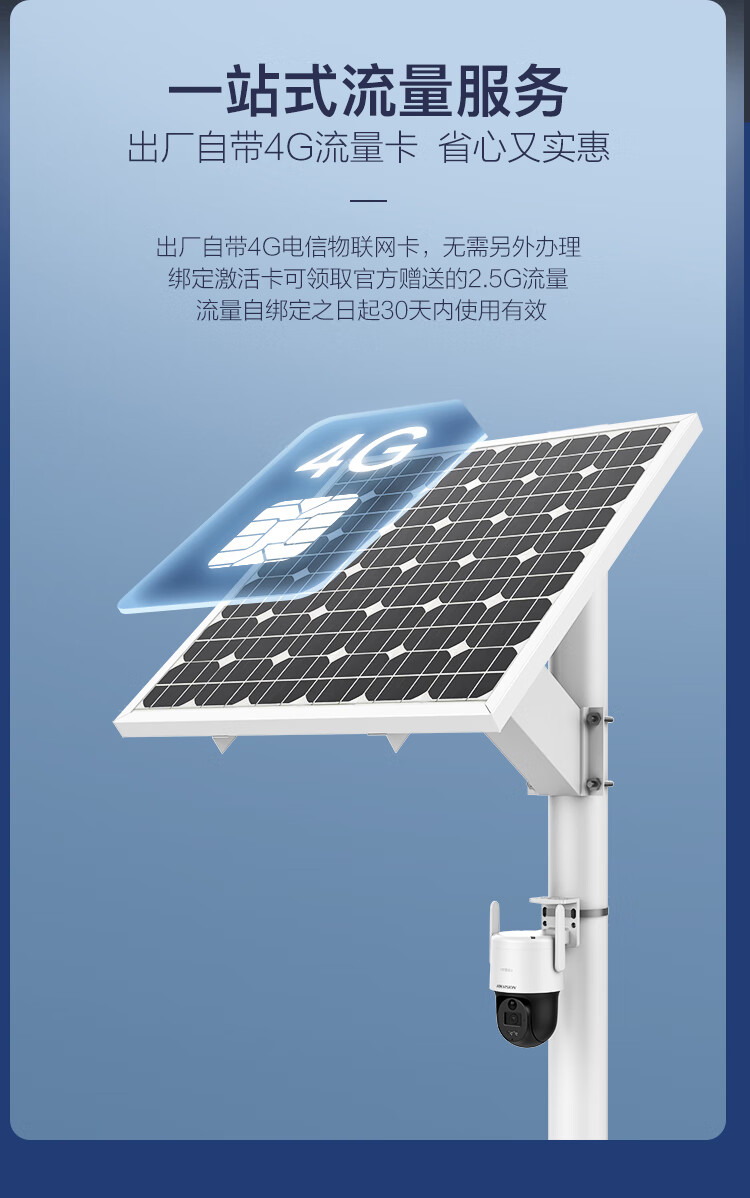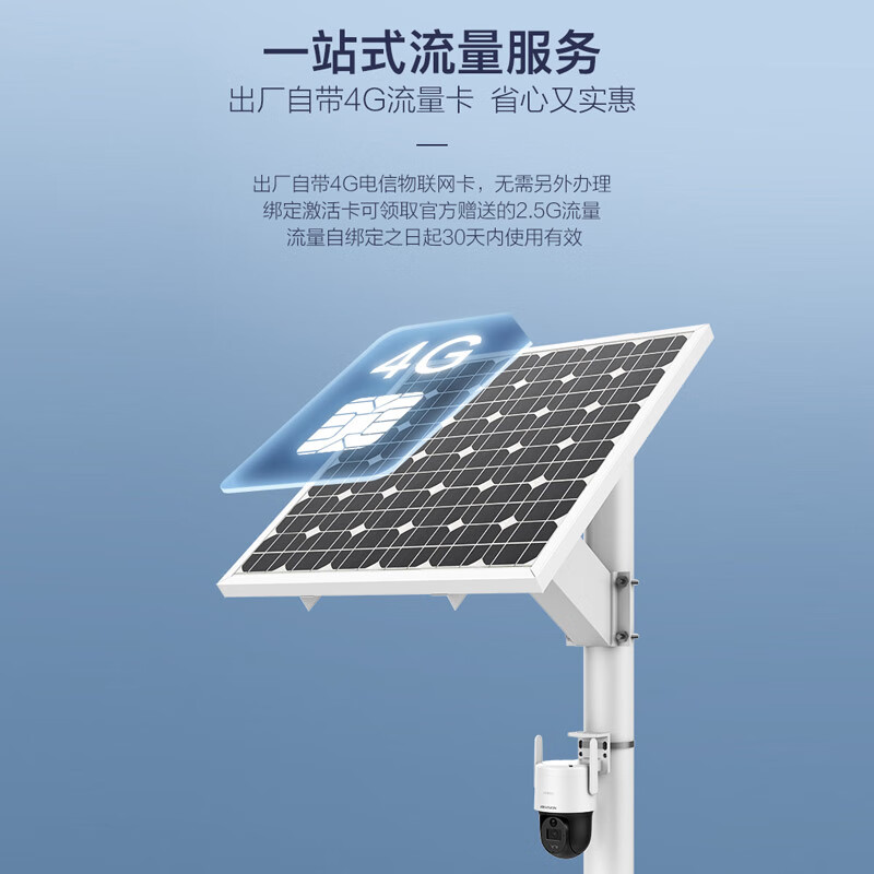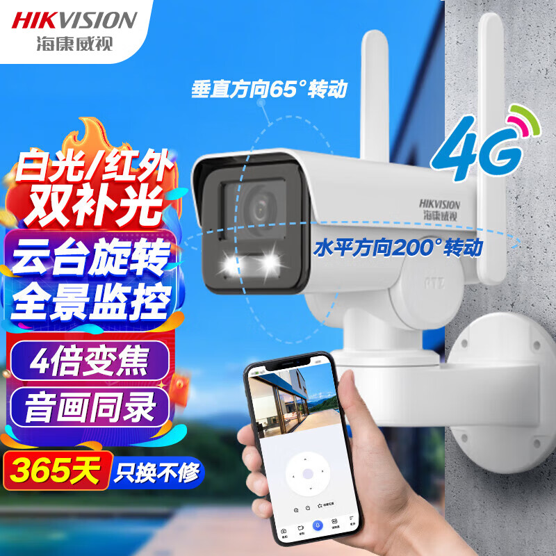 HIKVISION海康威视4G太阳能摄像头监控户外无线400万超高清球机360度旋转庭院室外手机远程可对话256G卡
