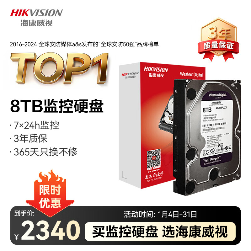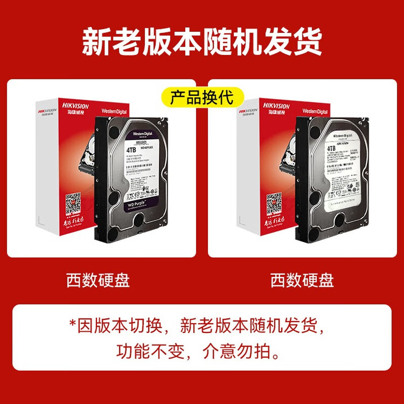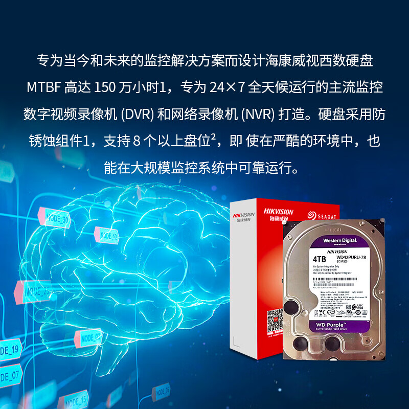 HIKVISION海康威视监控硬盘4TB 西部数据紫盘机械硬盘安防视频录像机监控专用5400转64MB SATA6Gb/秒