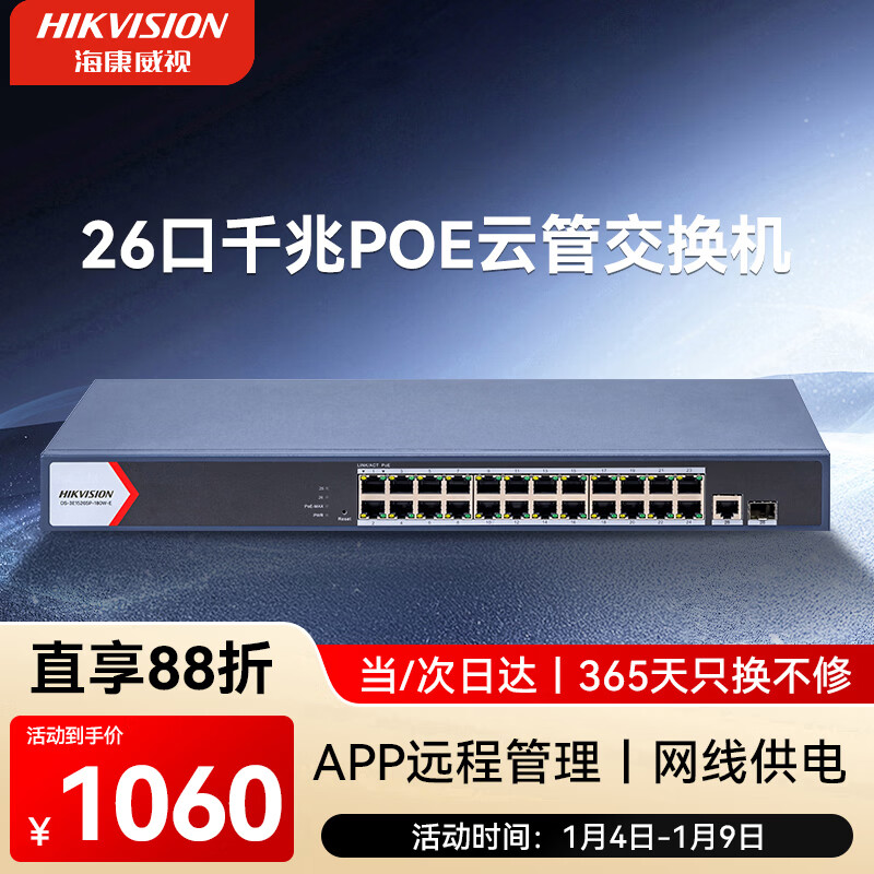 【千兆云管】光+电|24口POE静音